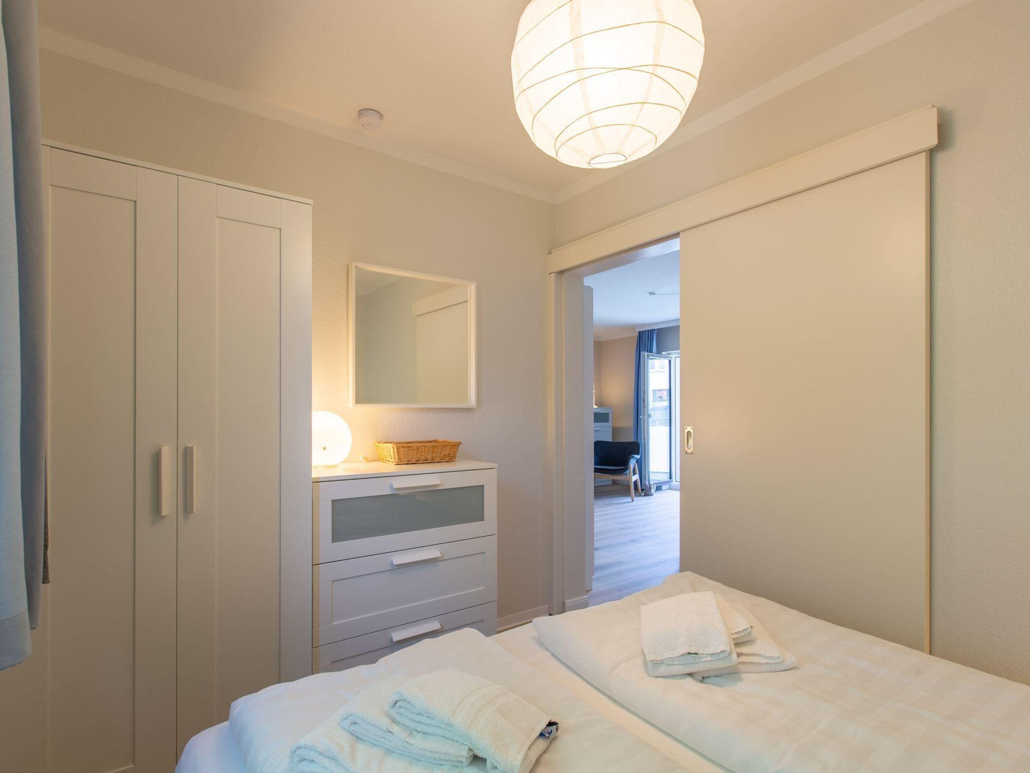 Beide Schlafzimmer sind durch Schiebetüren vom Wohnzimmer abgeteilt.