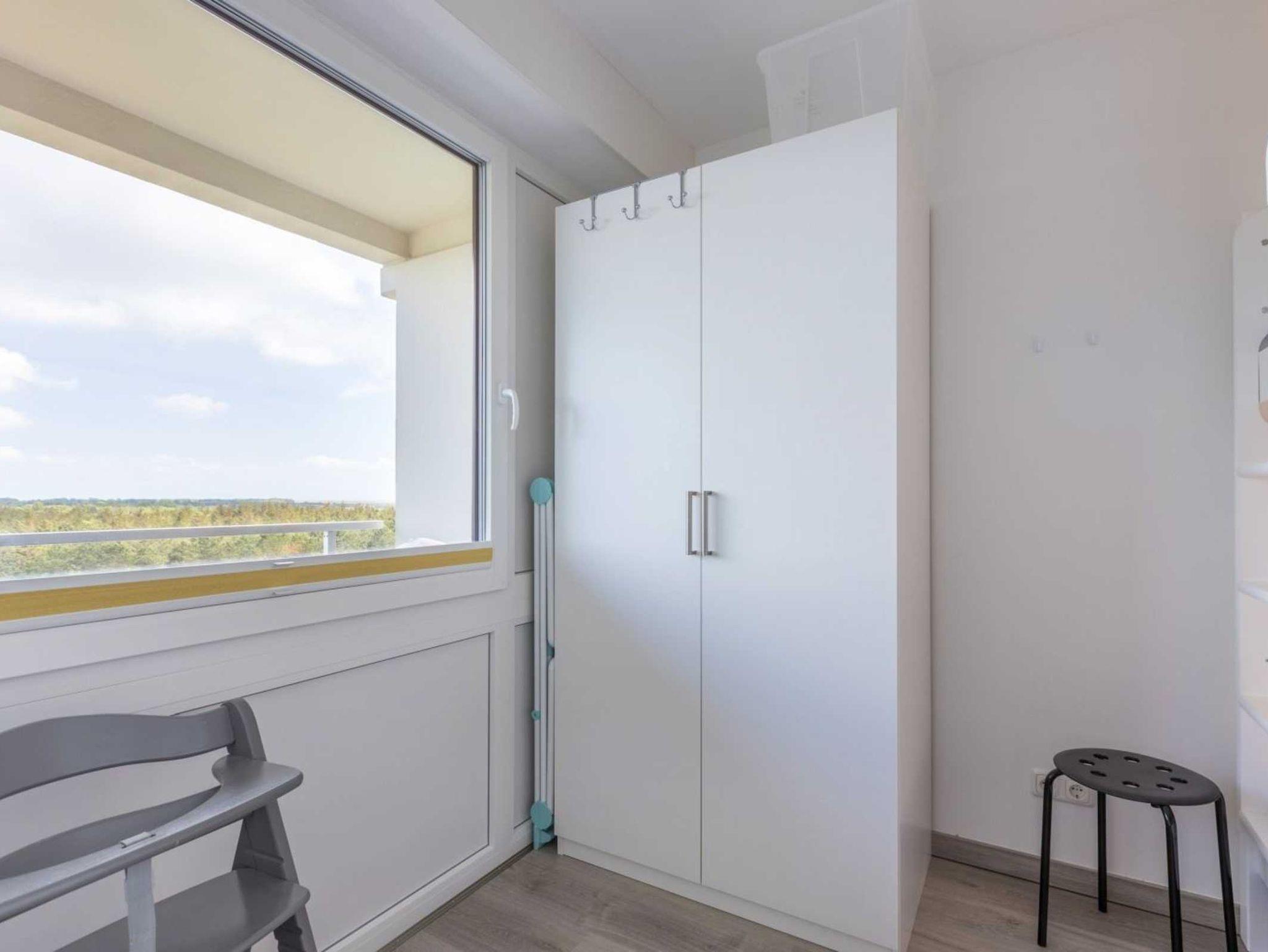 2. Schlafzimmer mit 2 Etagen-Einzelbetten (je 90x200cm), Kleiderschrank und weitem Ausblick über den Balkon.