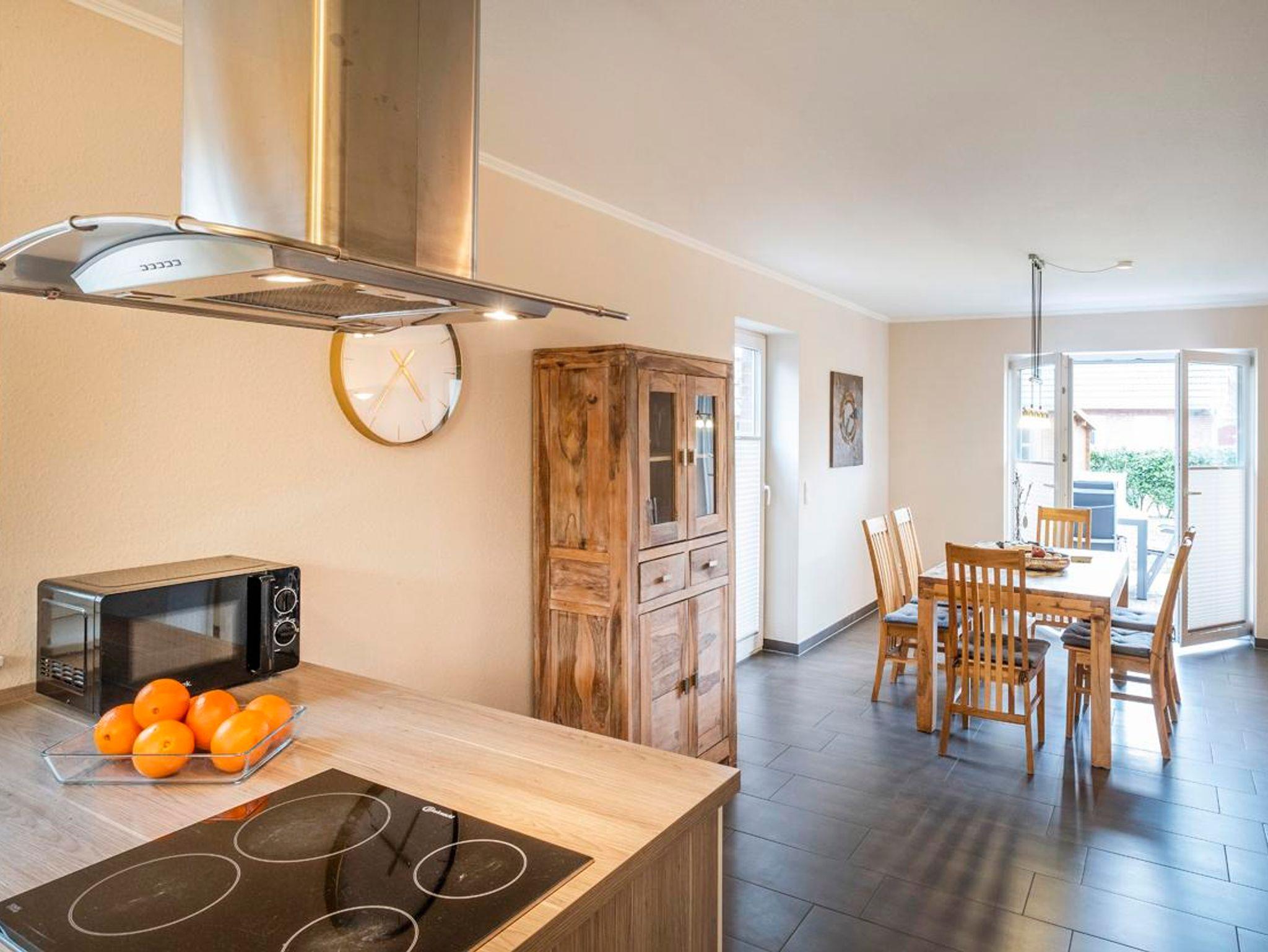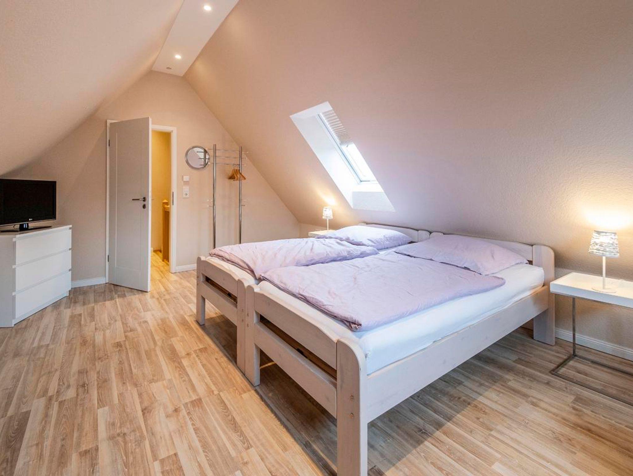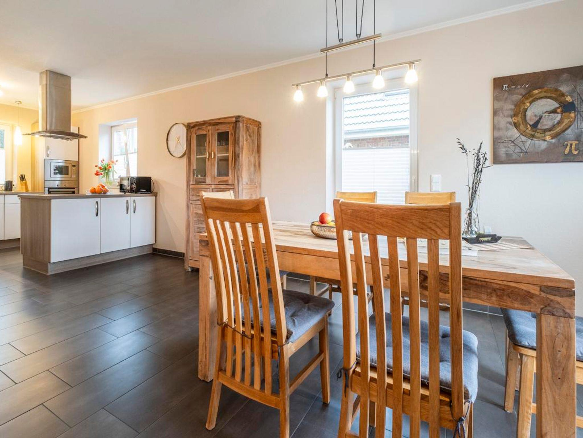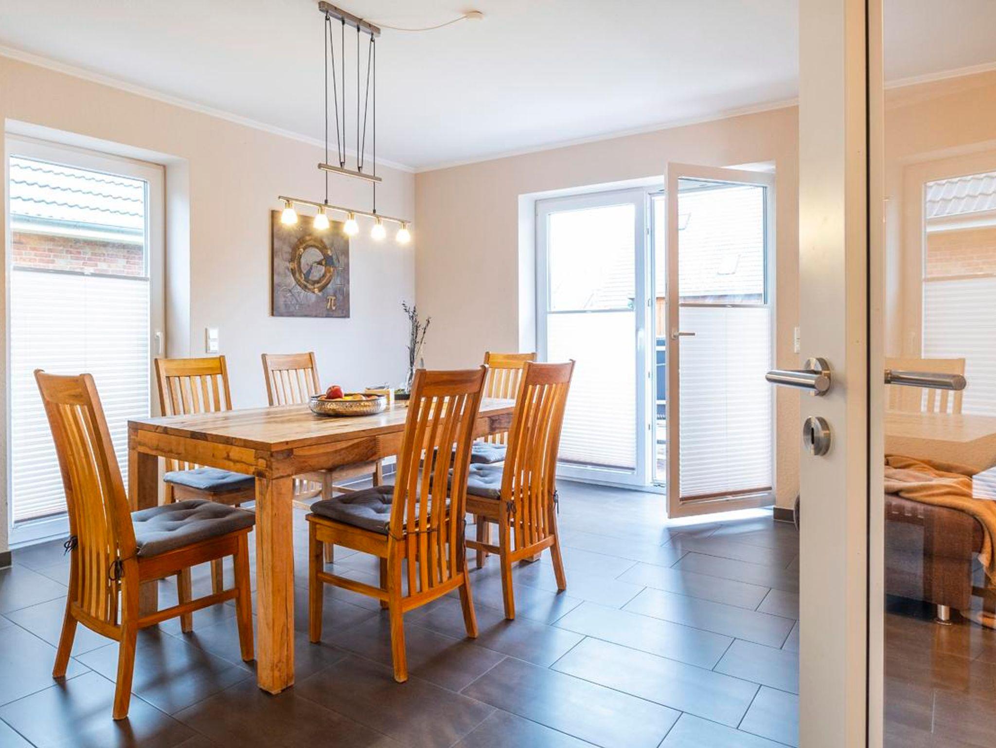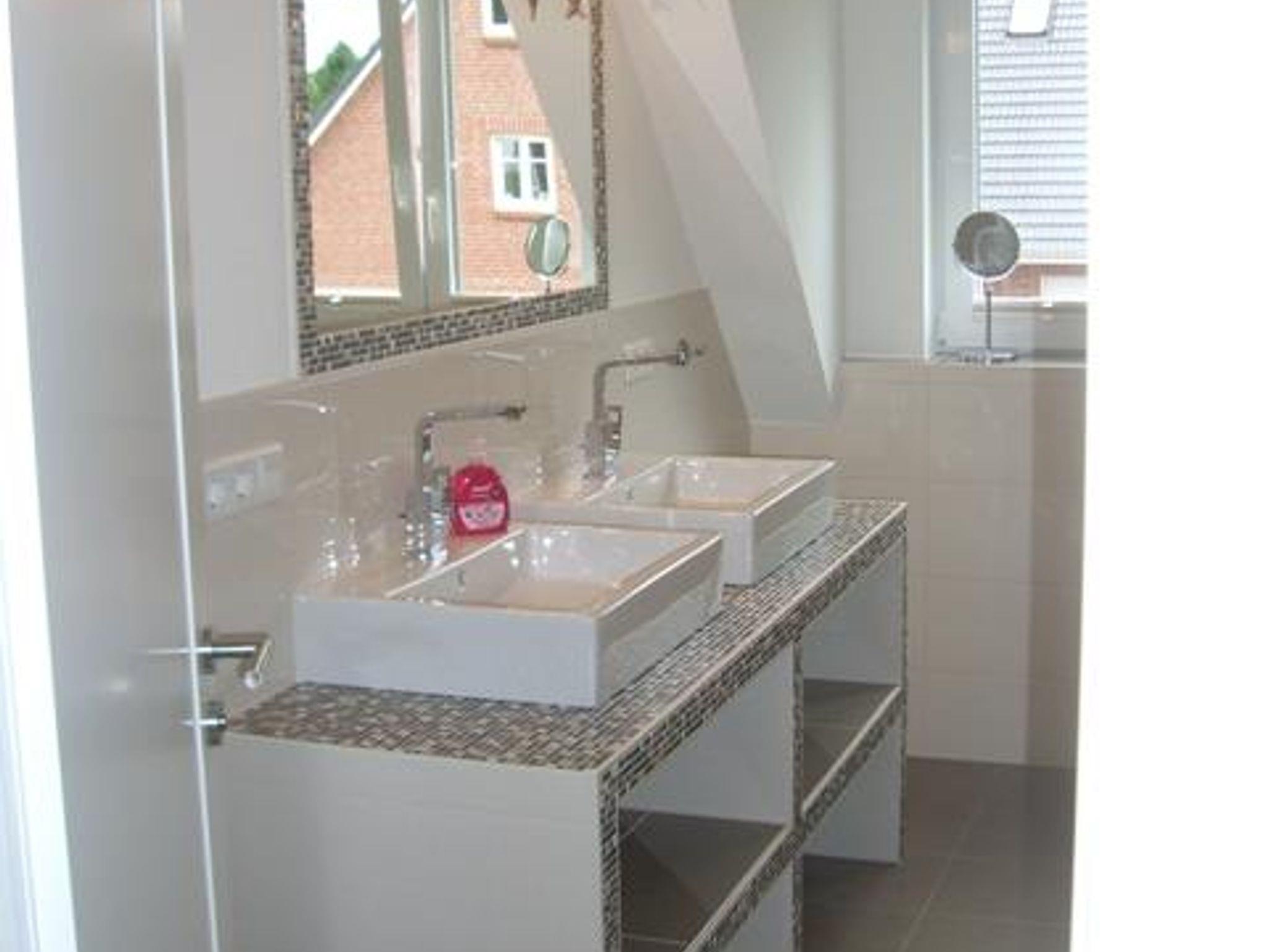Im Erdgeschoss empfängt Sie ein großer Flur, der auch für notwendige Mitbringsel, wie z.B. einem Kinderwagen, gut Platz bietet. Die Garderobe ist großzügig ausgestattet. Im Hauswirtschaftsraum können Sie Ihre Utensilien, wie z. B. Wasser- oder Bierkasten unterstellen. Vom Flur aus erreichen Sie auch das Gäste-WC. Das Wohn-/Esszimmer ist großzügig ausgelegt. Sie können es sich auf der Wohnlandschaft gemütlich machen und der Musik aus der Stereoanlage lauschen. Für den besonderen Genuss gehört ein Full-HD-Flachbildfernseher zur Ausstattung. Zum Esszimmerbereich gehört ein Massivholztisch mit Stühlen. Wie überall im Ferienhaus finden Sie auch hier ausreichend Platz für Ihre Utensilien. Weiterhin wartet ein Kaminofen für gemütliche Stunden auf Sie. Die moderne Einbauküche ist mit allem was man benötigt ausgestattet. Sie finden eine große Geschirrspülmaschine, ein Cerankochfeld, einen Backofen, einen Mikrowellenherd, Kühlschrank, Gefrierschrank, viel Geschirr und auch viel Raum für Ihre Vorräte. Im 1. Stock finden Sie 2 Bäder. Das größere Badezimmer ist zusätzlich mit einem 2. Waschtisch und Eckbadewanne ausgestattet. Dieses Bad verfügt über ein Außenfenster in der Dachgaube. Im 2. Bad ( Veluxfenster ) finden Sie neben der Dusche Waschmaschine und Trockner. Die 2 Schlafzimmer sind geräumig. Die Betten sind 2 x 2 m . Zur Einrichtung gehört ist ein großer Schrank, eine Kommode und jeweils 1 Flachbildfernseher.Im Obergeschoss befindet sich ein großzügiges lichtdurchflutetes Studio in dem man sich wunderbar zurückziehen kann, mit 2 Einzelbetten und gemütlicher Sitzecke.