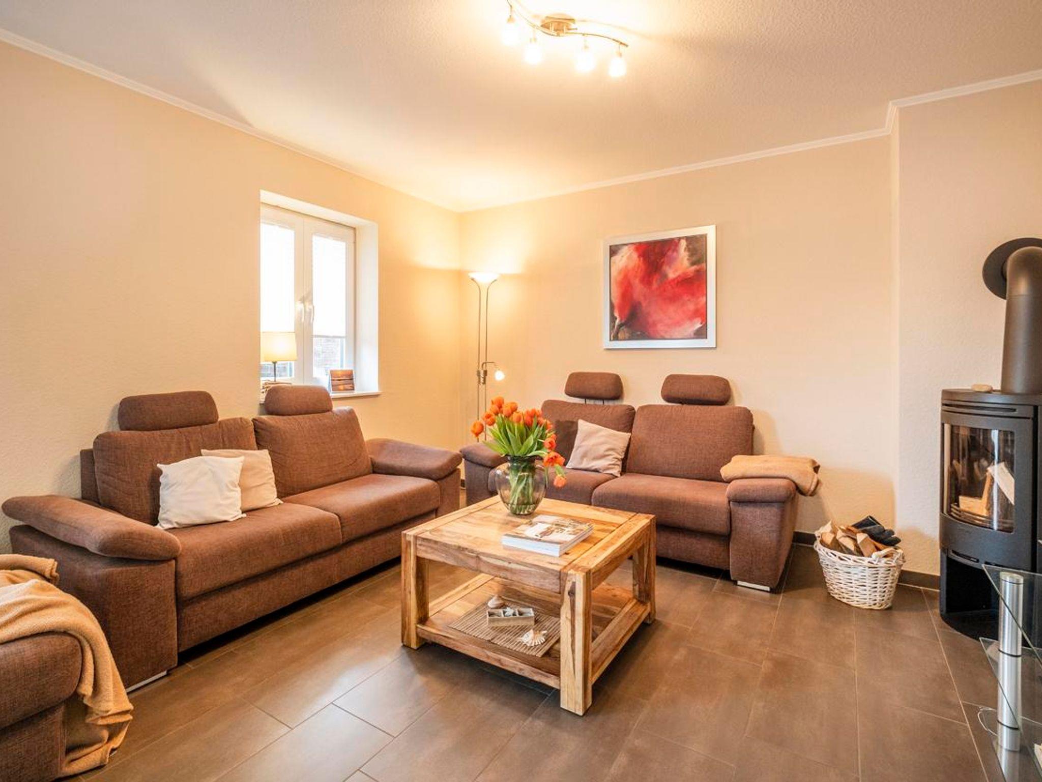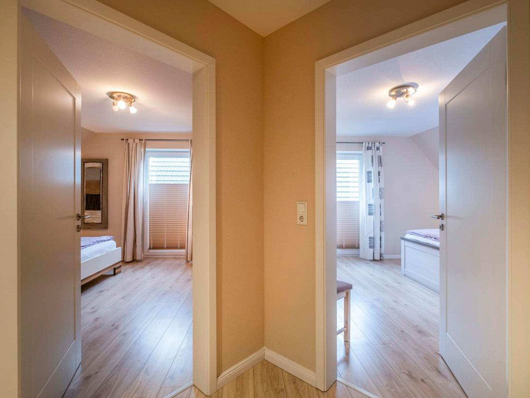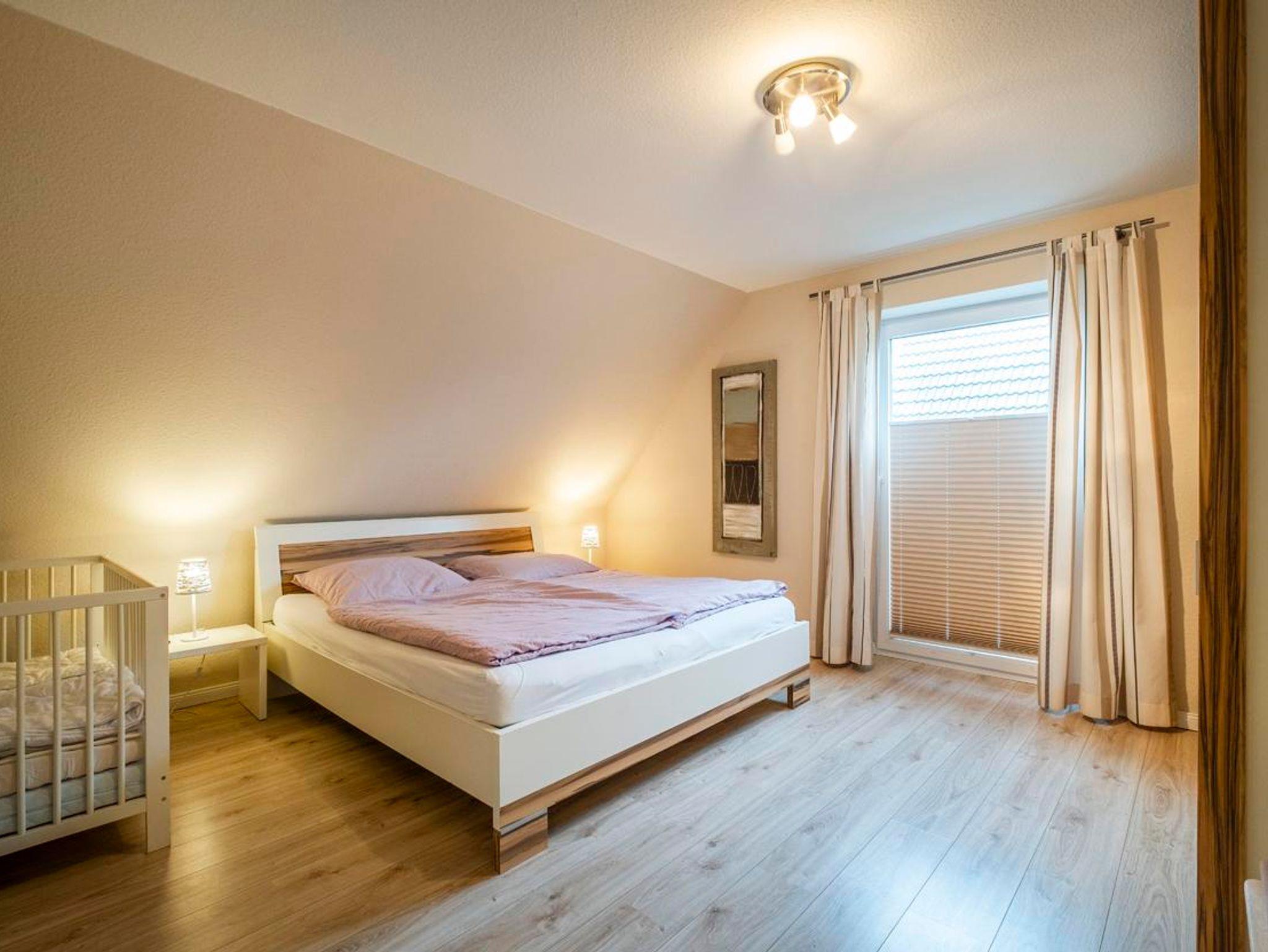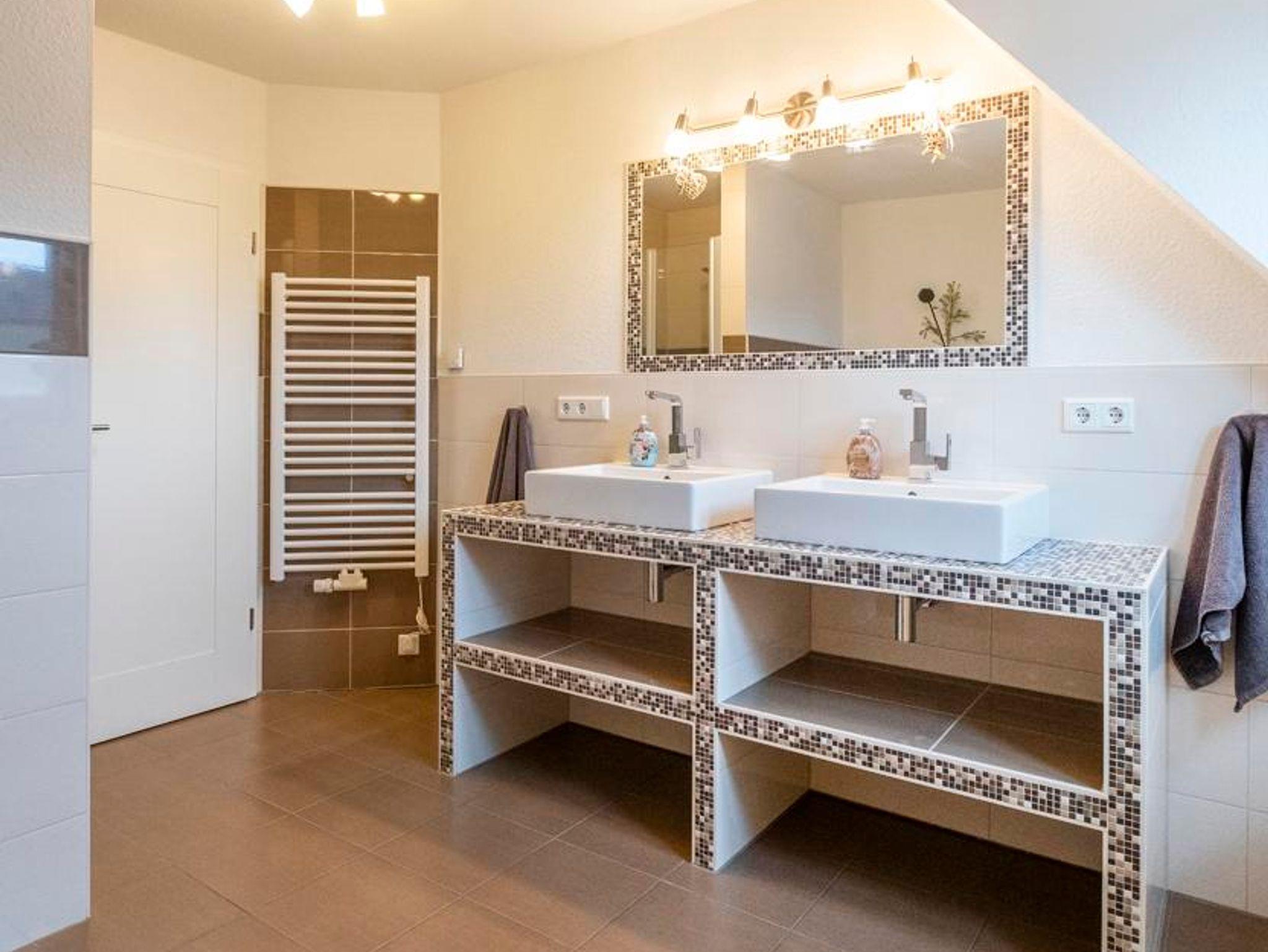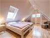 Im Erdgeschoss empfängt Sie ein großer Flur, der auch für notwendige Mitbringsel, wie z.B. einem Kinderwagen, gut Platz bietet. Die Garderobe ist großzügig ausgestattet. Im Hauswirtschaftsraum können Sie Ihre Utensilien, wie z. B. Wasser- oder Bierkasten unterstellen. Vom Flur aus erreichen Sie auch das Gäste-WC. Das Wohn-/Esszimmer ist großzügig ausgelegt. Sie können es sich auf der Wohnlandschaft gemütlich machen und der Musik aus der Stereoanlage lauschen. Für den besonderen Genuss gehört ein Full-HD-Flachbildfernseher zur Ausstattung. Zum Esszimmerbereich gehört ein Massivholztisch mit Stühlen. Wie überall im Ferienhaus finden Sie auch hier ausreichend Platz für Ihre Utensilien. Weiterhin wartet ein Kaminofen für gemütliche Stunden auf Sie. Die moderne Einbauküche ist mit allem was man benötigt ausgestattet. Sie finden eine große Geschirrspülmaschine, ein Cerankochfeld, einen Backofen, einen Mikrowellenherd, Kühlschrank, Gefrierschrank, viel Geschirr und auch viel Raum für Ihre Vorräte. Im 1. Stock finden Sie 2 Bäder. Das größere Badezimmer ist zusätzlich mit einem 2. Waschtisch und Eckbadewanne ausgestattet. Dieses Bad verfügt über ein Außenfenster in der Dachgaube. Im 2. Bad ( Veluxfenster ) finden Sie neben der Dusche Waschmaschine und Trockner. Die 2 Schlafzimmer sind geräumig. Die Betten sind 2 x 2 m . Zur Einrichtung gehört ist ein großer Schrank, eine Kommode und jeweils 1 Flachbildfernseher.Im Obergeschoss befindet sich ein großzügiges lichtdurchflutetes Studio in dem man sich wunderbar zurückziehen kann, mit 2 Einzelbetten und gemütlicher Sitzecke.