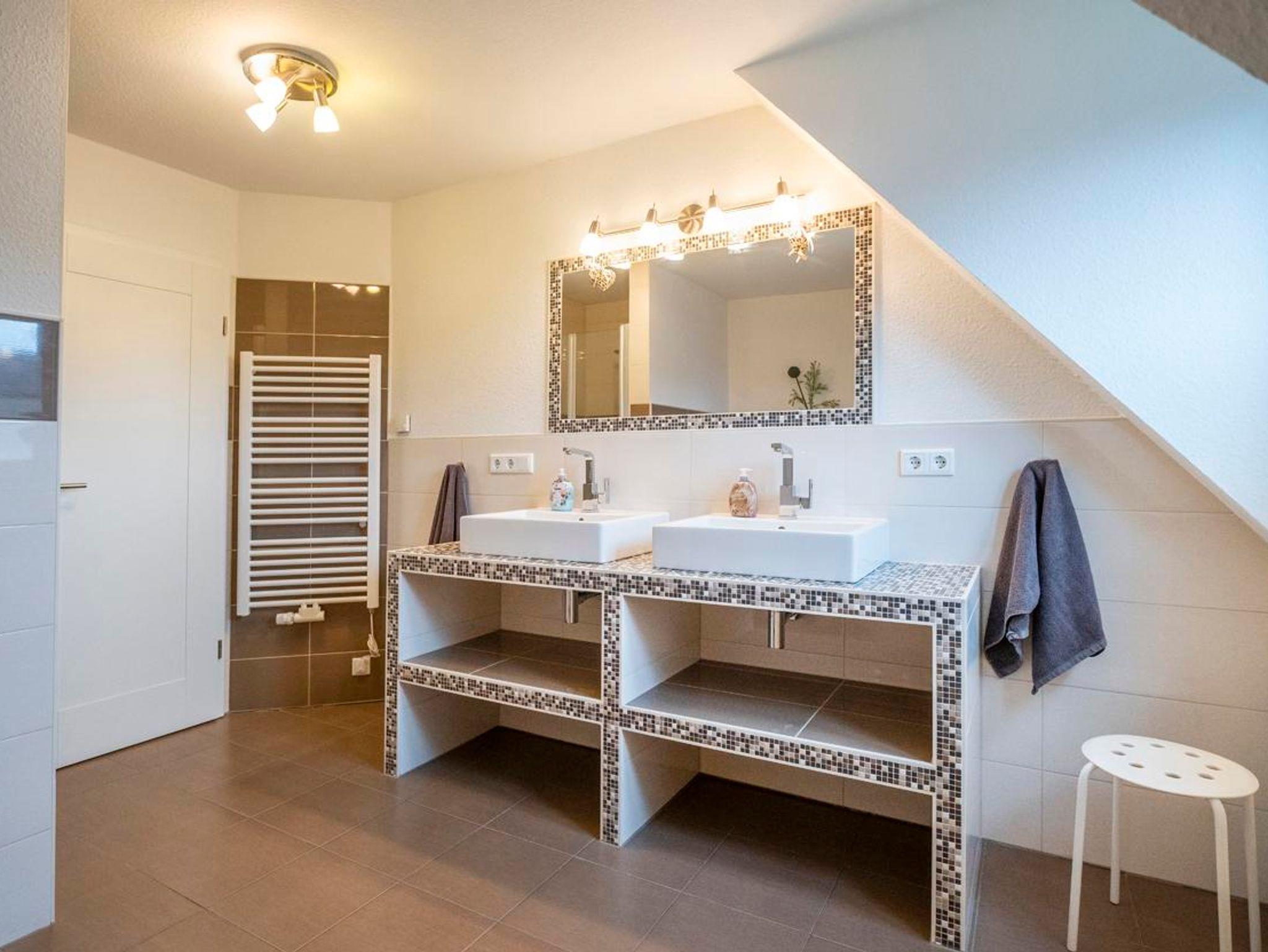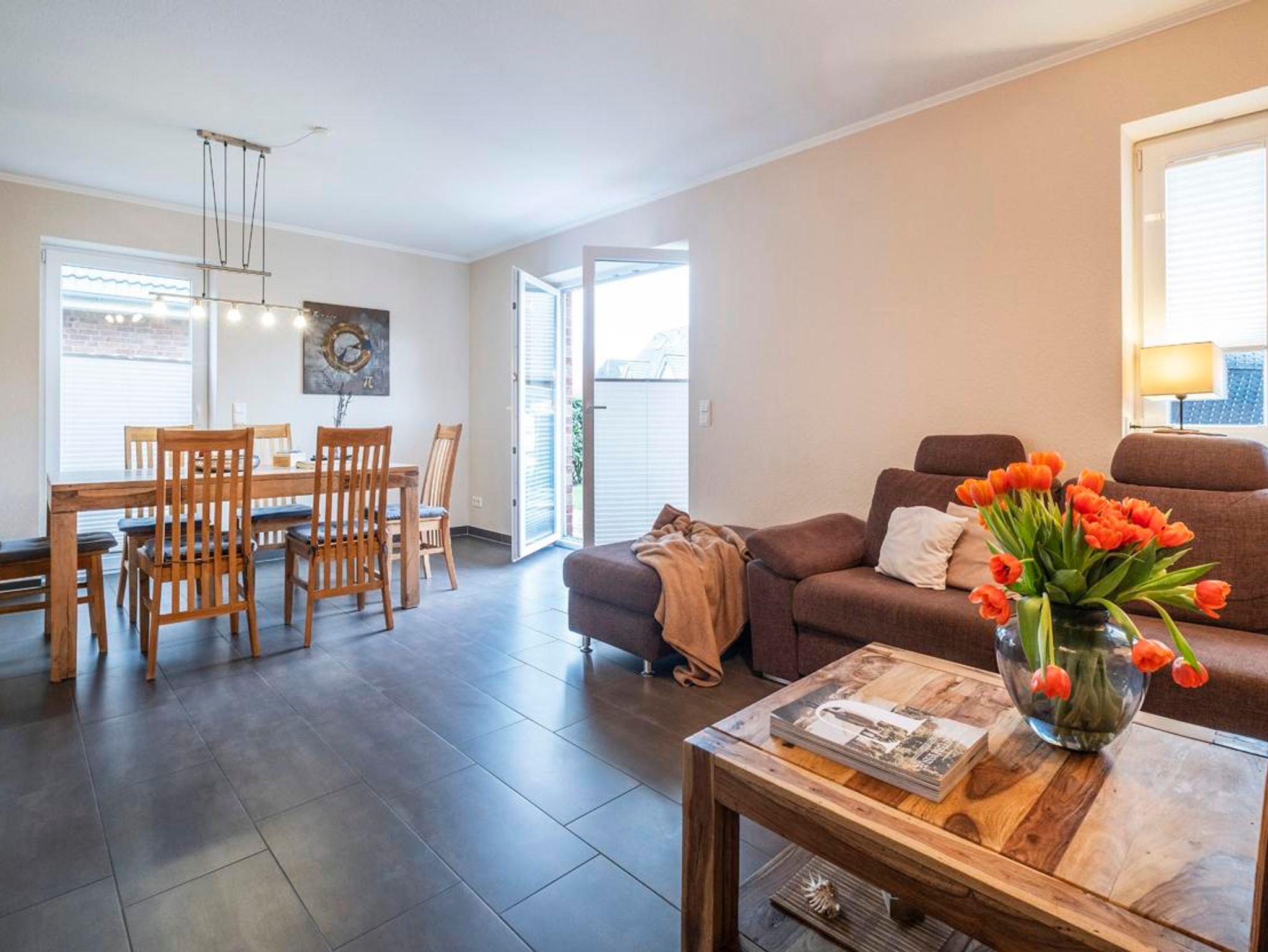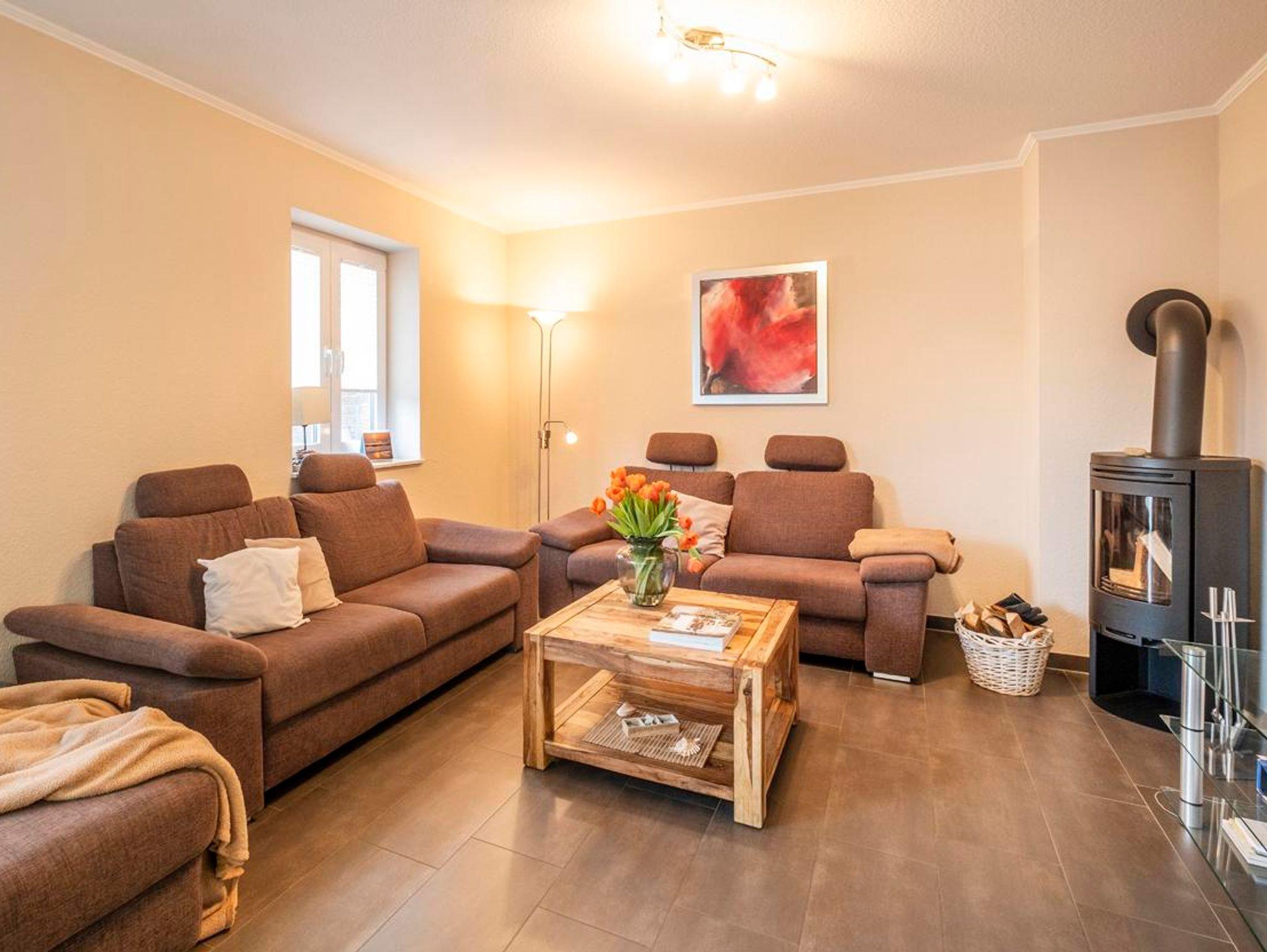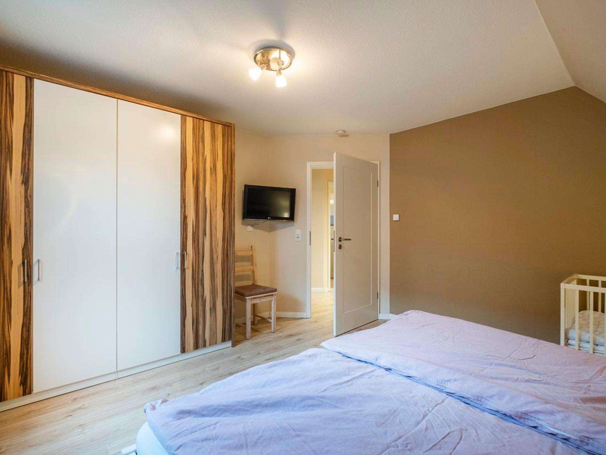 Im Erdgeschoss empfängt Sie ein großer Flur, der auch für notwendige Mitbringsel, wie z.B. einem Kinderwagen, gut Platz bietet. Die Garderobe ist großzügig ausgestattet. Im Hauswirtschaftsraum können Sie Ihre Utensilien, wie z. B. Wasser- oder Bierkasten unterstellen. Vom Flur aus erreichen Sie auch das Gäste-WC. Das Wohn-/Esszimmer ist großzügig ausgelegt. Sie können es sich auf der Wohnlandschaft gemütlich machen und der Musik aus der Stereoanlage lauschen. Für den besonderen Genuss gehört ein Full-HD-Flachbildfernseher zur Ausstattung. Zum Esszimmerbereich gehört ein Massivholztisch mit Stühlen. Wie überall im Ferienhaus finden Sie auch hier ausreichend Platz für Ihre Utensilien. Weiterhin wartet ein Kaminofen für gemütliche Stunden auf Sie. Die moderne Einbauküche ist mit allem was man benötigt ausgestattet. Sie finden eine große Geschirrspülmaschine, ein Cerankochfeld, einen Backofen, einen Mikrowellenherd, Kühlschrank, Gefrierschrank, viel Geschirr und auch viel Raum für Ihre Vorräte. Im 1. Stock finden Sie 2 Bäder. Das größere Badezimmer ist zusätzlich mit einem 2. Waschtisch und Eckbadewanne ausgestattet. Dieses Bad verfügt über ein Außenfenster in der Dachgaube. Im 2. Bad ( Veluxfenster ) finden Sie neben der Dusche Waschmaschine und Trockner. Die 2 Schlafzimmer sind geräumig. Die Betten sind 2 x 2 m . Zur Einrichtung gehört ist ein großer Schrank, eine Kommode und jeweils 1 Flachbildfernseher.Im Obergeschoss befindet sich ein großzügiges lichtdurchflutetes Studio in dem man sich wunderbar zurückziehen kann, mit 2 Einzelbetten und gemütlicher Sitzecke.