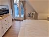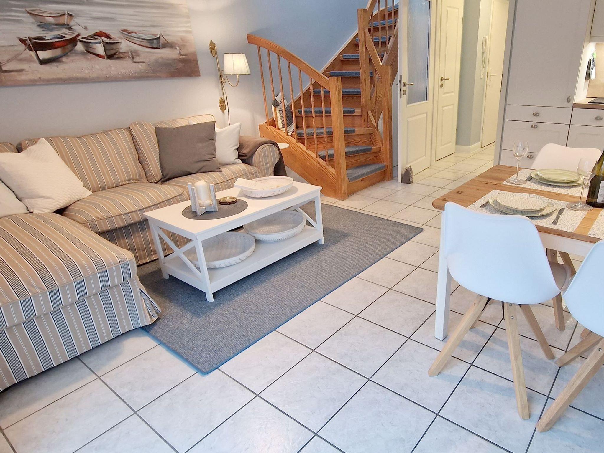 Gemütliches Wohnen über 2 Ebenen Diese moderne, neu eingerichtete 3-Zimmer Ferienwohnung ist für 4 Personen über 2 Etagen. Die Ferienwohnung in St. Peter-Bad ist liebevoll und gemütlich eingerichtet. Die maritim eingerichtete Ferienwohnung verfügt über einen modernen Wohn-/Essbereich mit zwei nach Süd-West ausgerichteten Balkonen. Der Ausblick auf das gegenüberliegende Waldgrundstück bietet trotz der zentralen Lage im Herzen des Ortsteils ?Bad? absolute Ruhe und Privatsphäre. Die neue, voll ausgestattete Küchenzeile verfügt über ein Induktionskochfeld, eine Spülmaschine, Kühl-Gefrier-Kombination, Mikrowelle und einen Backofen. Im 1. OG ist ein Schlafzimmer mit Doppelbett, das Duschbad und der Wohn-Essbereich. Im DG steht ein Doppelbett, einschiebbar zu einem Bett, und ein Fernseher. Der Clou: Oben gibt es noch ein weiteres kleines Bad mit WC und einen zweiten großen Balkon. Genießen sie die Zeit auf den beiden sonnigen möblierten Balkonen in südwestlicher Ausrichtung. Auch technisch ist die Wohnung modern ausgestattet. WLAN ist selbstverständlich inklusive, beide Flachbildfernseher verfügen über HDMI- und USB- Schnittstellen, ein TV ist ein Smart-TV. Kinderreisebett und Hochstuhl sind kostenlos vorhanden. Rauchen und Haustiere sind nicht erlaubt. Ein Pkw-Stellplatz auf dem Grundstück Nr. 7 und ein überdachter Fahrradständer hinter dem Haus stehen zur Verfügung.
