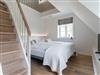 Über eine Holztreppe gelangt man in das Obergeschoss. Die zwei Schlafzimmer, eines mit einem Doppelbett und eines mit einem Einzelbett sind mit einem TV ausgestattet. Kleiderschränke gewähren Ihnen viel Stauraum.
