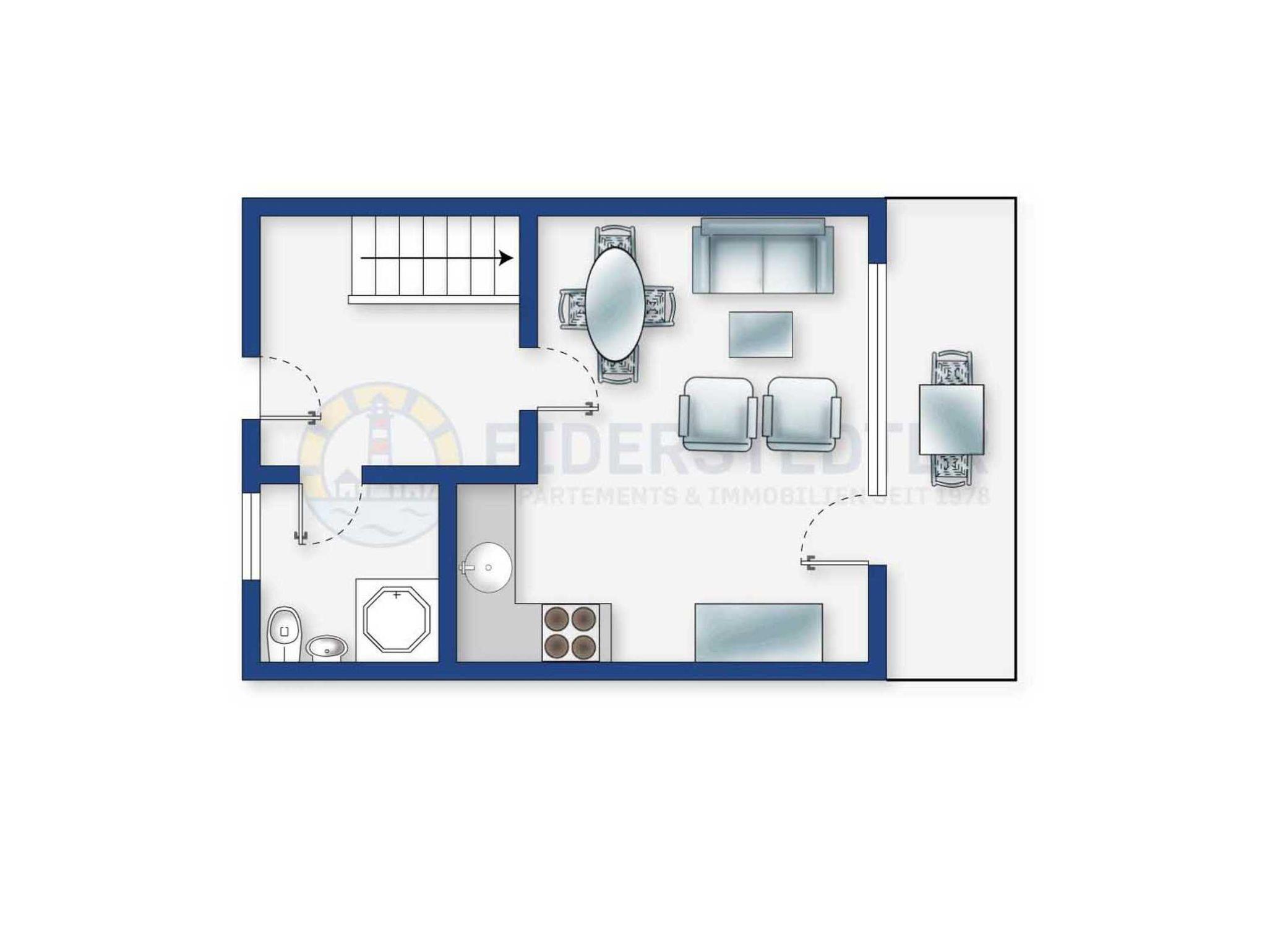 Geschmackvoll eingerichteter Endhausteil Utblick im Haus Böhler Eck mit 3 Zimmern und ca. 48 qm auf 2 Ebenen (EG, OG) für bis zu 4 Personen. Ruhige Lage im Ortsteil Böhl in St. Peter-Ording. Mit schöner Gartenterrasse nach Südwesten. Bei der Einrichtung dieses Domizils wurden einladende Akzente gesetzt und Raum geschaffen, damit der Gast genügend Platz hat sich persönlich entfalten zu können. Machen Sie sich die Räume in ihrem Urlaub zum zweiten Zuhause. Allergikerfreundliches Domizil ohne Teppichböden.