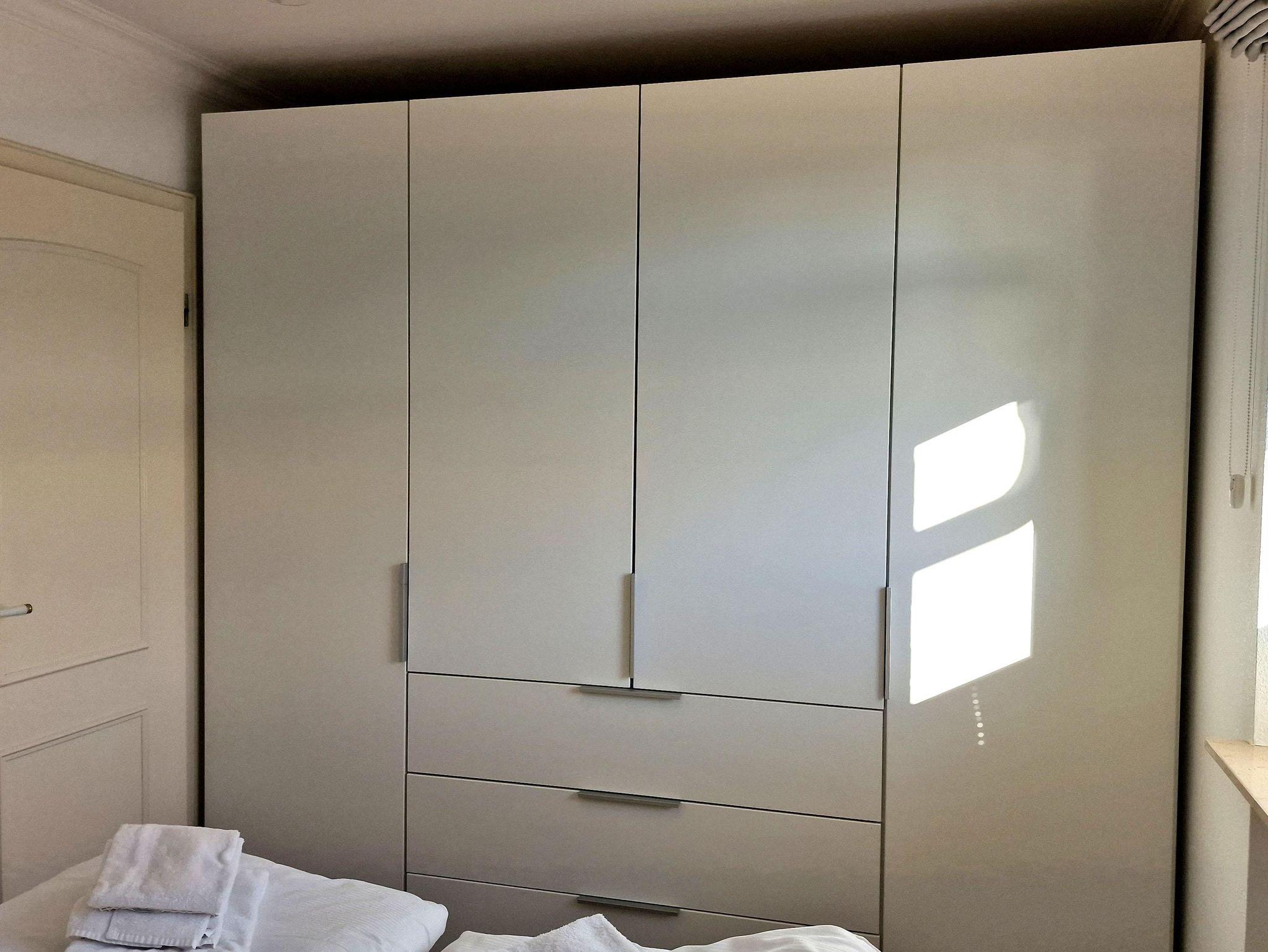 Schlafzimmer: Doppelbett 2,00 x 1,80 m, 2 Nachttische, Radiowecker, Kleiderschrank, Spiegel, Wäscheständer, Herrendiener, Bügelbrett, Bügeleisen