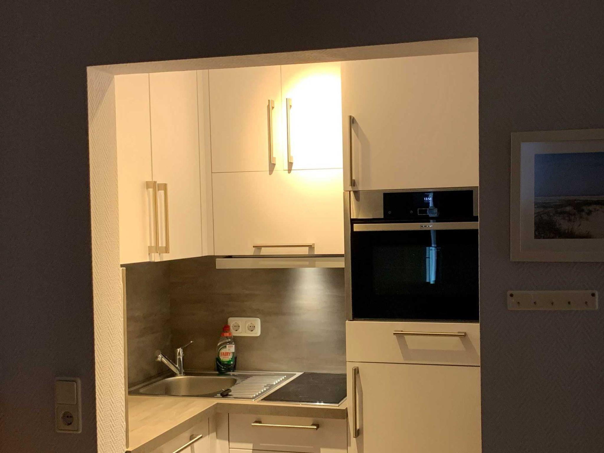 Moderne Küche: Der neu gestaltete Küchenbereich lädt dazu ein, kulinarische Köstlichkeiten zuzubereiten. Mit einer Spülmaschine und einem Multifunktionsbackofen, der auch eine Mikrowelle beinhaltet, sind Sie bestens ausgestattet.