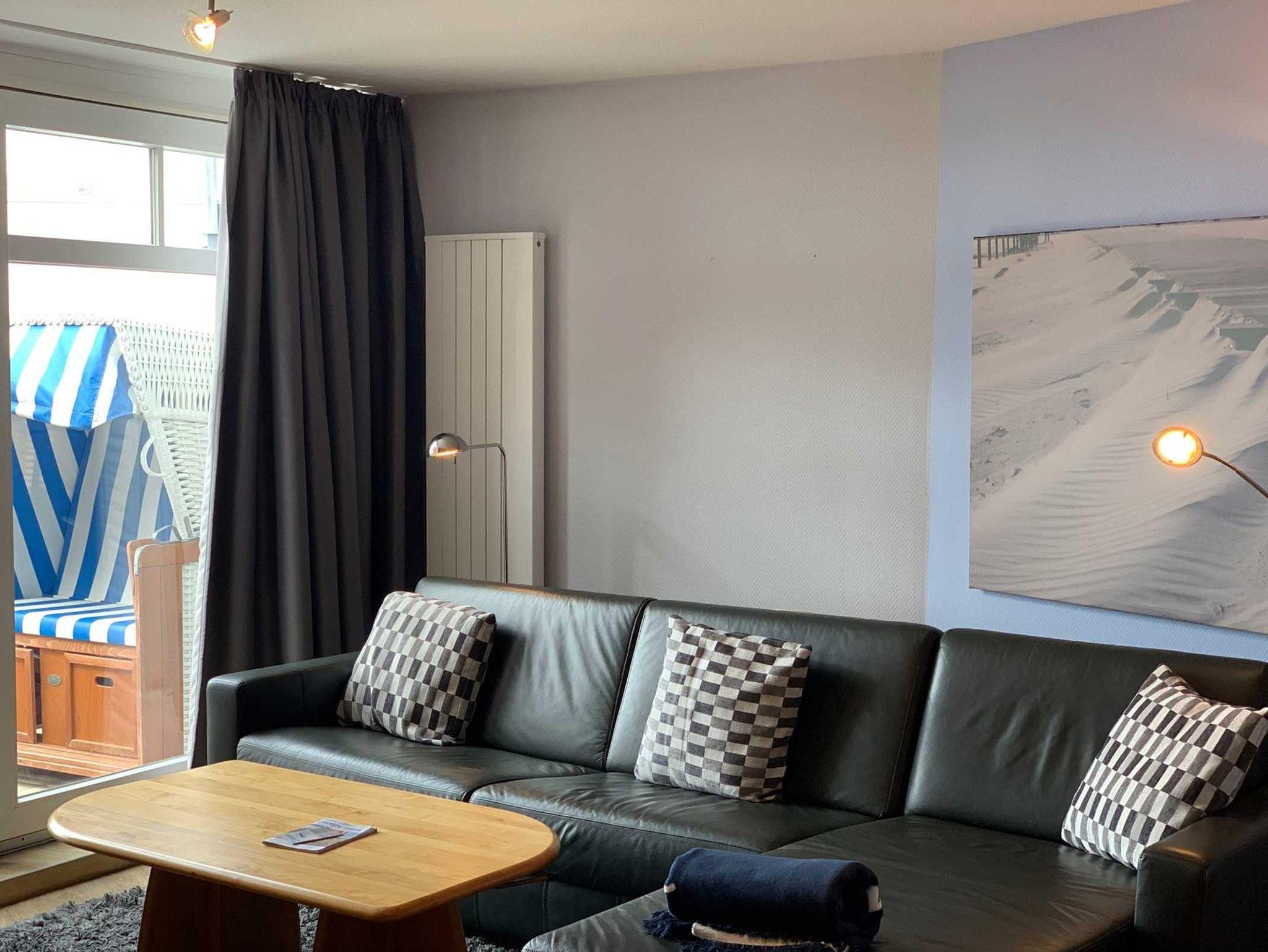 Wunderschöner Balkon: Ihr westlich ausgerichteter Balkon ist mit einem gemütlichen Strandkorb und stilvollen Balkonmöbeln ausgestattet ? der ideale Platz, um den Sonnenuntergang zu beobachten und die frische Seeluft zu genießen.