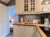 Wohnzimmer mit Ecksofa (3-4 Personen), TV (Kabel), Stereoanlage (mit Bluetooth-Funktion und DVD-Player) und Esstisch mit 3 Stühlen. Halboffene Küche mit Kühlschrank mit Gefrierfach, Geschirrspüler und Philips Senseo Kapsel-Kaffeemaschine. Keine Mikrowelle, kein Backofen.