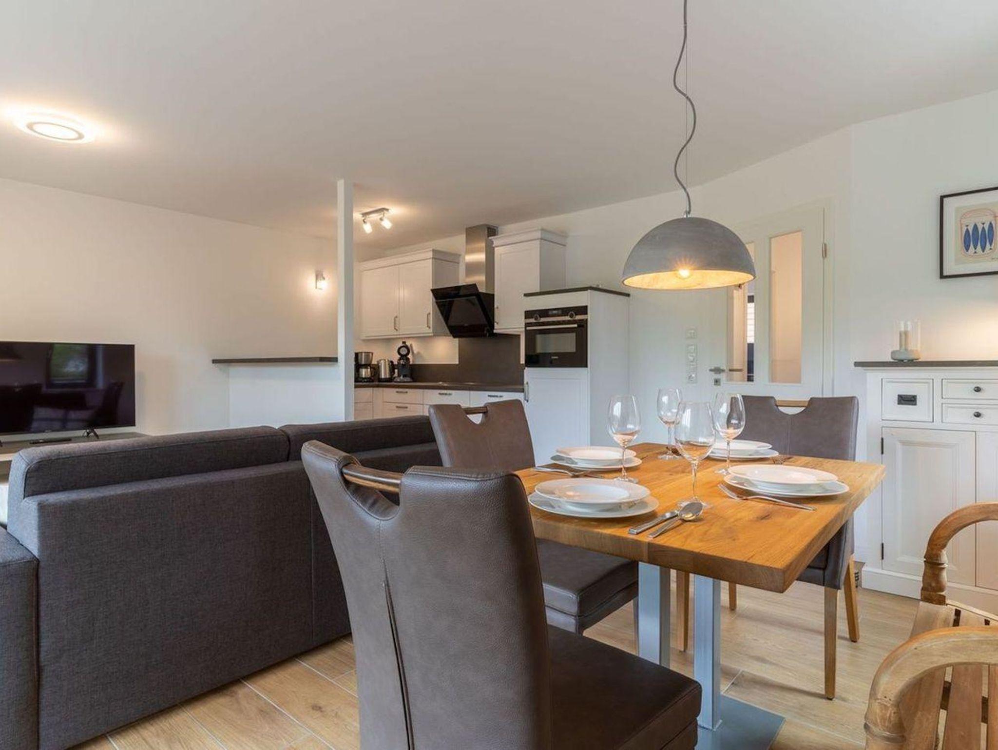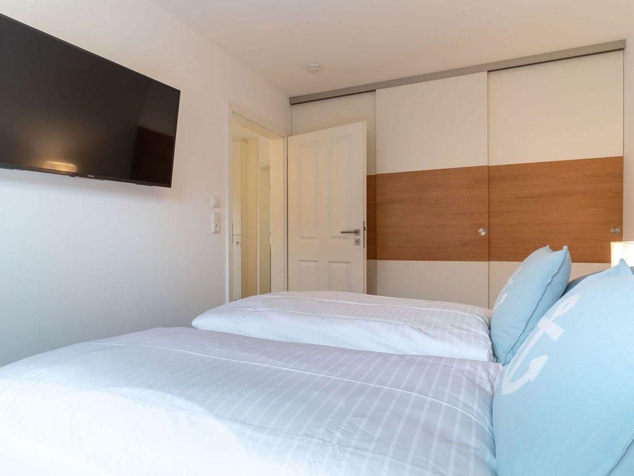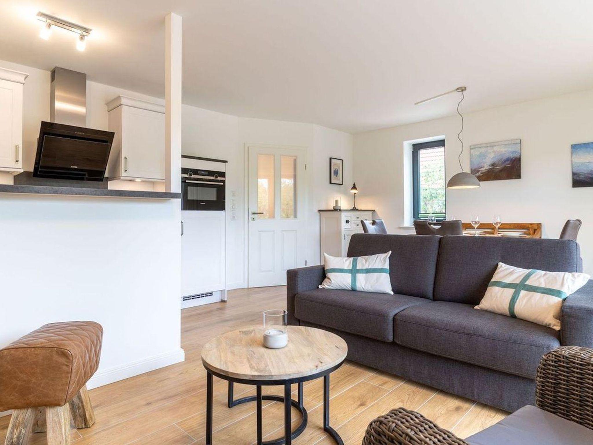 Die Wohnung befindet sich im Erdgeschoss mit einem lichtdurchfluteten Wohnraum mit TV und einer modernen Wohnküche. Die Wohnräume sind mit neuen und modernen Möbeln ausgestattet. Vom Flur gelangen Sie ins Doppelschlafzimmer mit TV. Zusätzlich gibt es im Wohnzimmer ein gemütliches Schlafsofa für eine Personen. Das Duschbad bietet genügend Platz für Ihre Utensilien. Vom Wohnzimmer gelangen Sie auf eine großzügige Terrasse. Hier können Sie wunderbar entspannen und die Seele baumeln lassen. Im Gemeinschaftskeller steht Ihnen der erste Abstellraum für Ihre Fahrräder zu Verfügung.