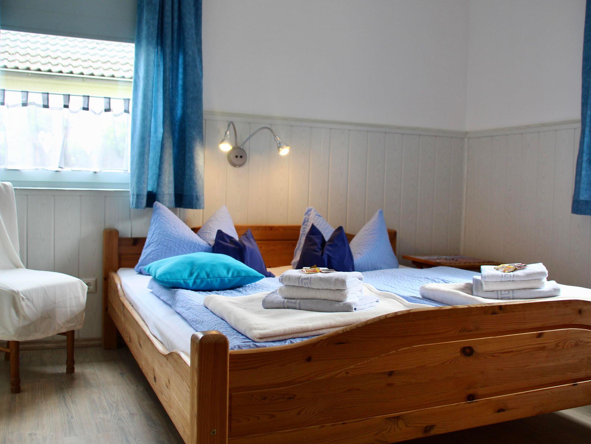 Appartement im Erdgeschoss mit Terrasse für 2 - 5 Personen. 1 Wohnzimmer mit Essecke und Ausgang zur Terrasse. 2 Schlafräume mit je 1 Doppelbett. Küche u.a. mit E-Herd mit Backofen, Kühlschrank, Geschirrspüler, Kaffeemaschine, Toaster, Wasserkocher, div. Koch- und Essgeschirr. Dusche/WC. Haustier auf Anfrage möglich. Leinenzwang im Ort und auf dem Grundstück.