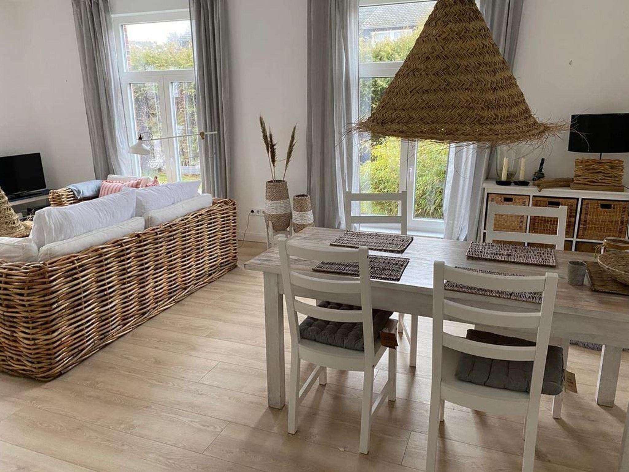 Die Ferienwohnung für 4 Personen liegt im Erdgeschoss eines Zweifamilienhauses und verfügt über zwei Schlafzimmer, Duschbad, einen lichtdurchfluteten Wohn-Essbereich mit angrenzender offener Küche und einer eigenen großzügigen Sonnen-Terrasse. Die Wohnung hat eine Wohnfläche von 75 qm.