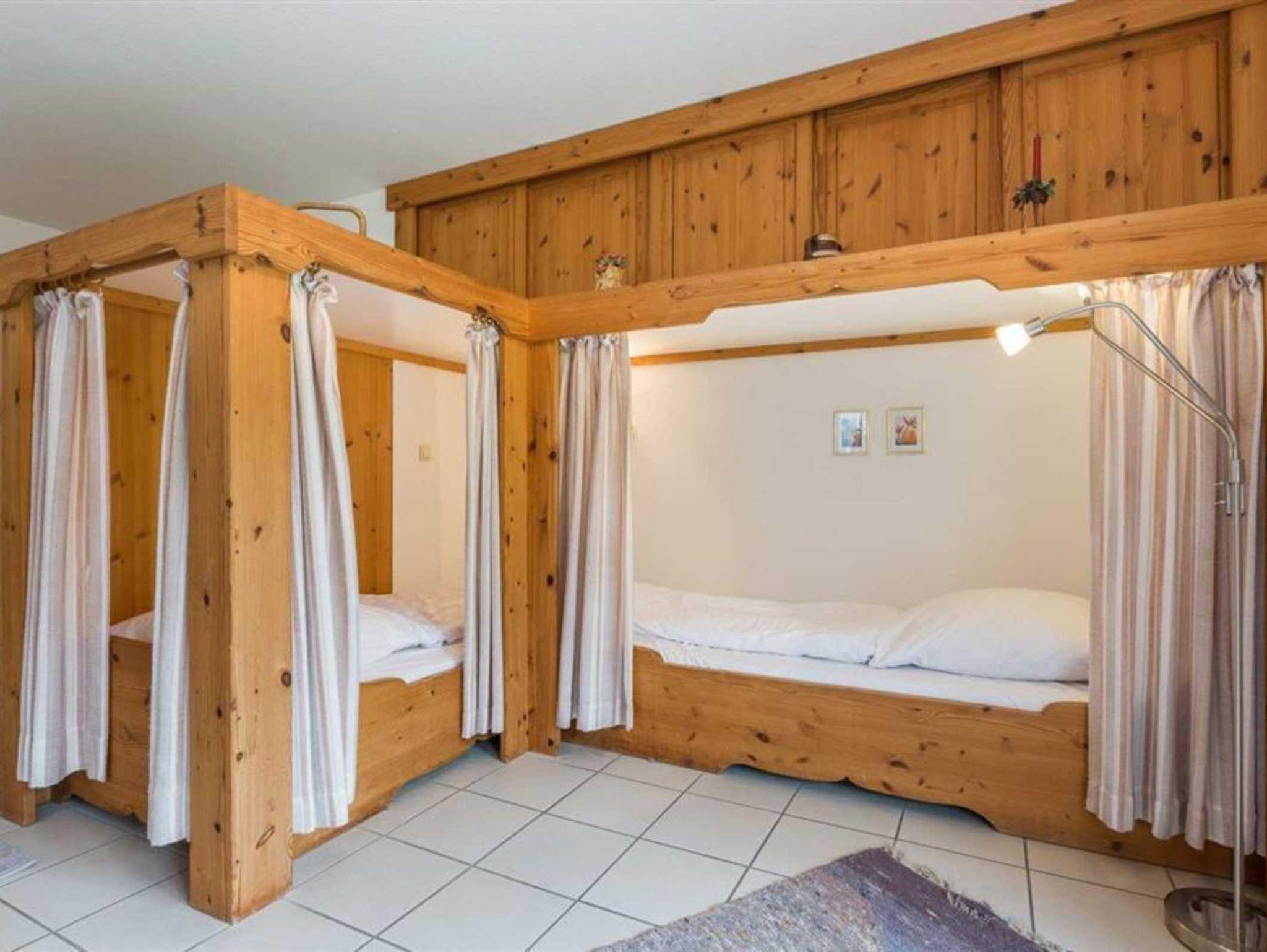 Schlafzimmer mit 2 Etagen-Einzelbetten (je 90x200cm) und Einbauschrank.