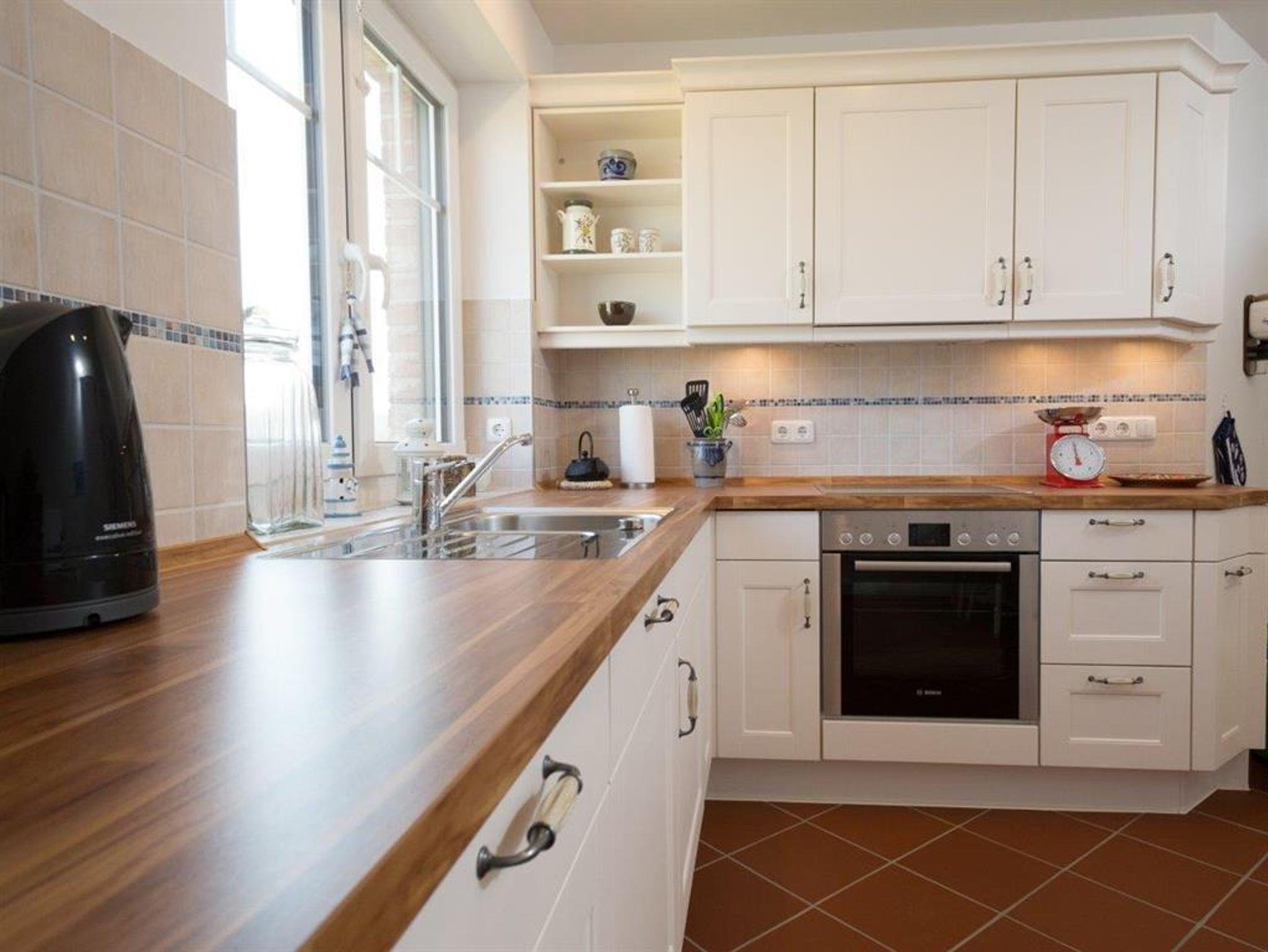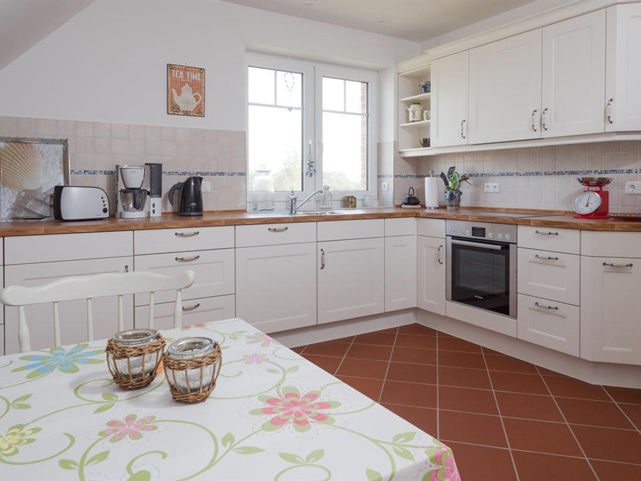 Die Markenküche hat eine großzügige Ausstattung in besonderer Qualität. Mikrowelle, Geschirrspüler, Umluftherd, Ceranfeld, Gefrierkombination, eine komplette Küchenausstattung und hochwertiges Geschirr sind Standard.