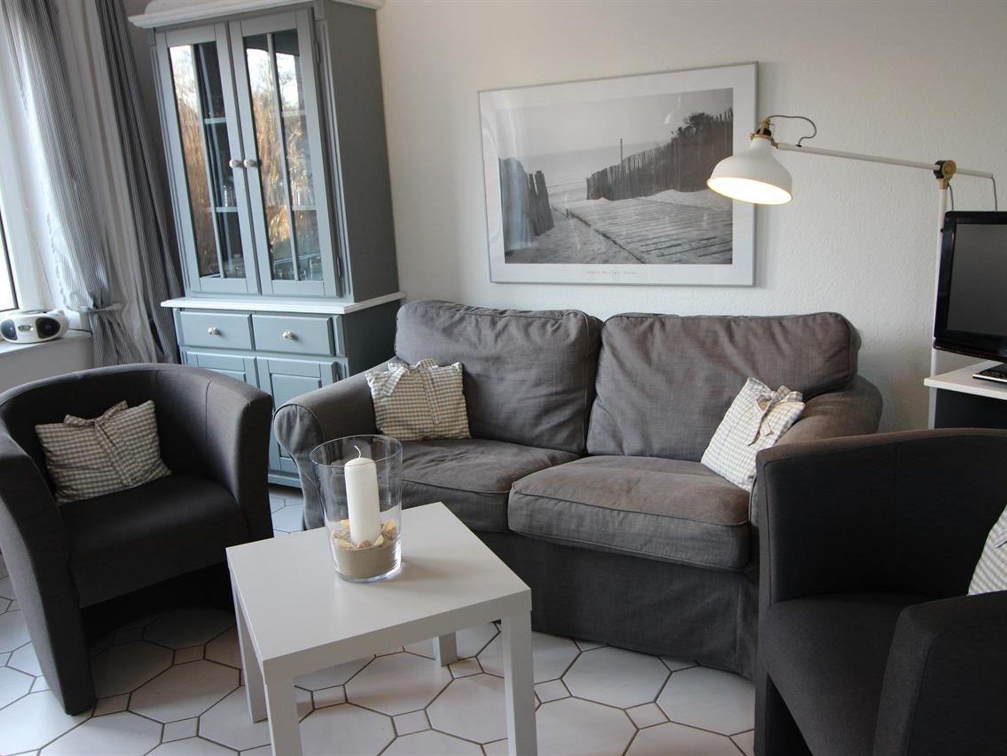 Im Erdgeschoss befinden sich der liebevoll und gemütliche ausgestattete Wohn- und Essbereich im Beach-Stil.