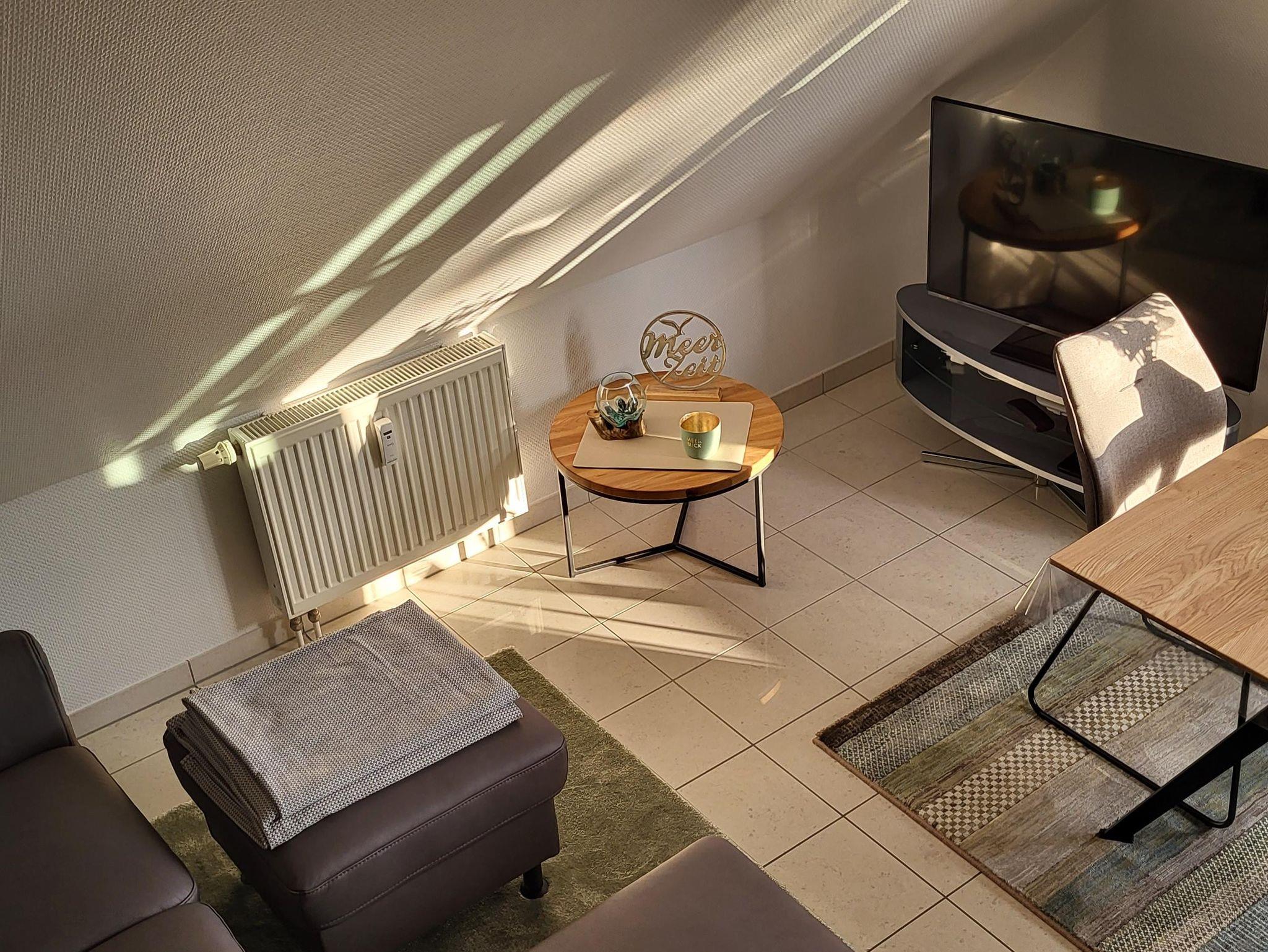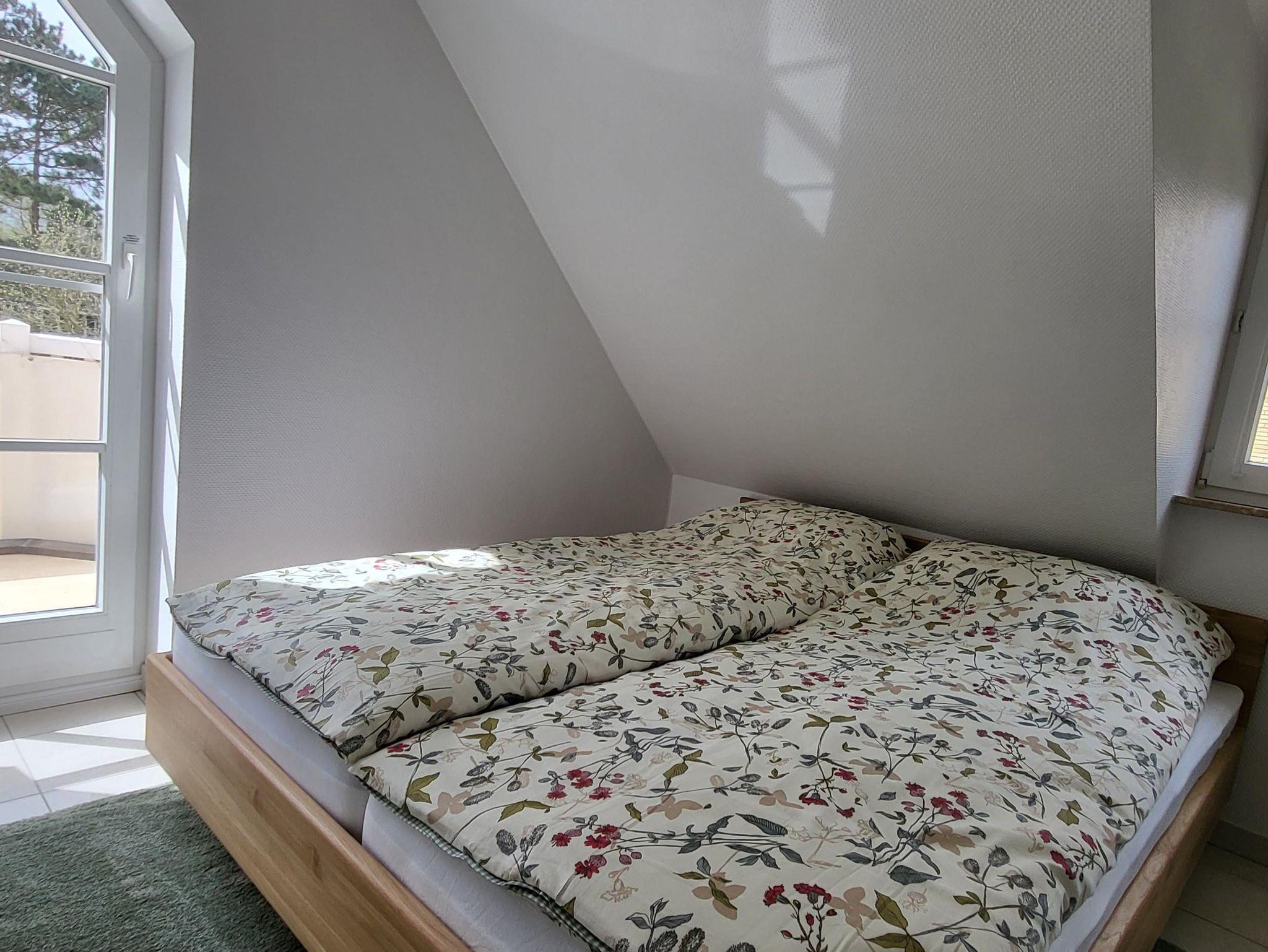 Die Wohnung 7 befindet sich im Ober- und Dachgeschoss und verfügt über 3 Zimmer für 2 Personen und ist 47 m² groß. Es ist ein Süd-West Balkon vorhanden, 2024 modernisiert und neu eingerichtet.