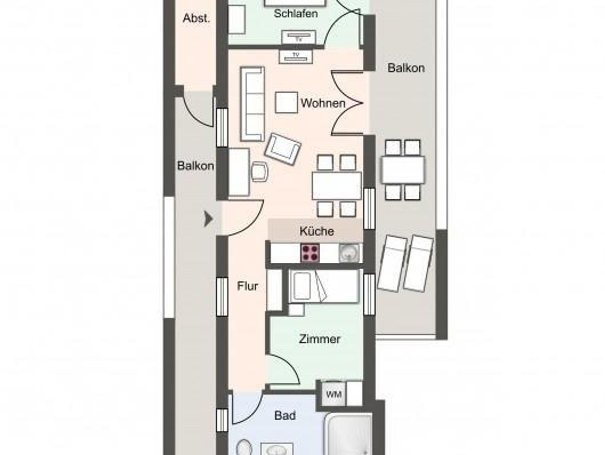 Das großzügige 66m² Penthouse ist mit sehr exclusiven Möbeln eingerichtet. Ein gemütliches Wohnzimmer mit offener Wohnküche laden zum Relaxen ein. Die Küche ist mit hochwertigen Geräten voll ausgestattet. Das Duschbad ist großzügig gestaltet und bieten genügend Platz für Ihre Utensilien. Das Doppelschlafzimmer und Flatscreen TV, sowie das Einzelschlafzimmer sorgen für ruhevolle Erholung. Die Wohnung ist mit sehr viel Liebe zum Detail ausgestattet und traumhaft lichtdurchflutet. Sie erreichen das Penthouse über das Treppenhaus oder einen Fahrstuhl.