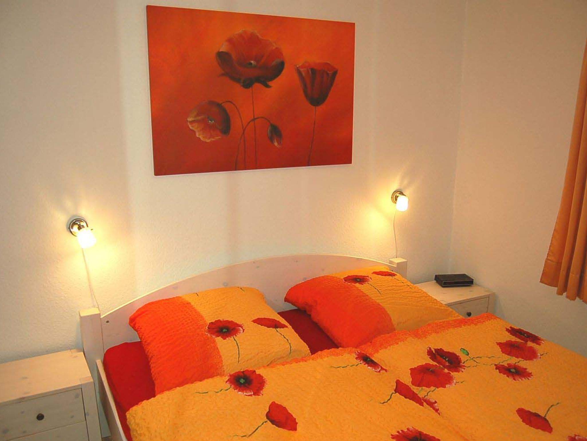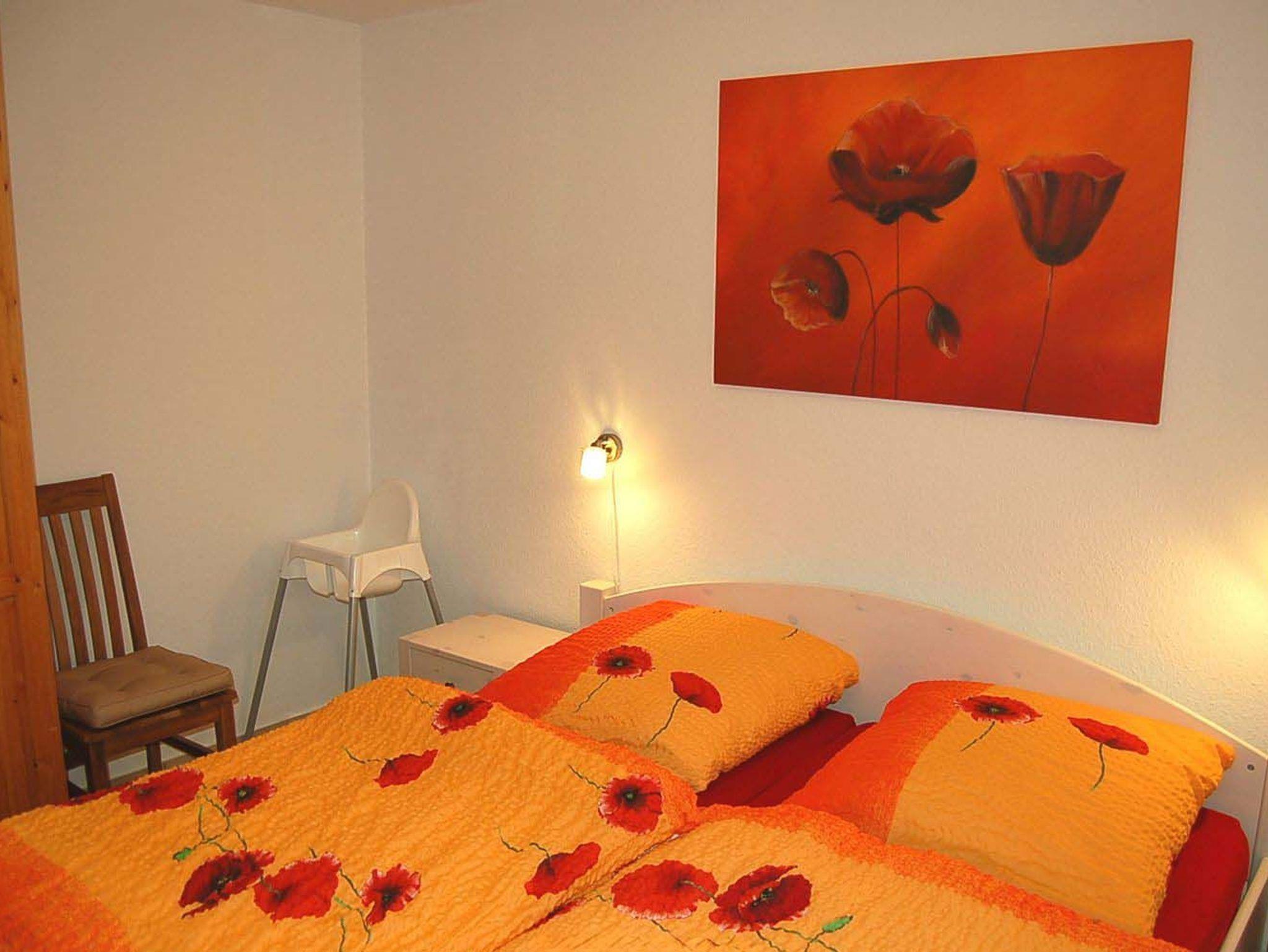 Schlafzimmer 1: 2 Nachttische, Doppelbett 2,00 x 1,80 m, E-Heizung, Kinderhochstuhl, Kleiderschrank, Radiowecker, Spiegel, Stuhl