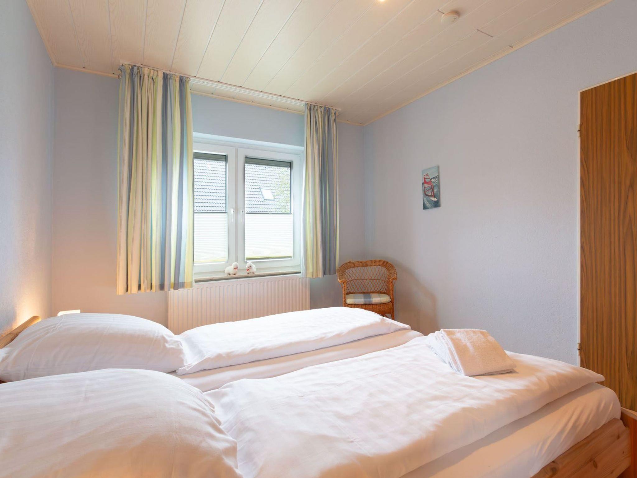 2. Schlafzimmer mit Doppelbett (2x 90x200cm), Kleiderschrank und Sessel.