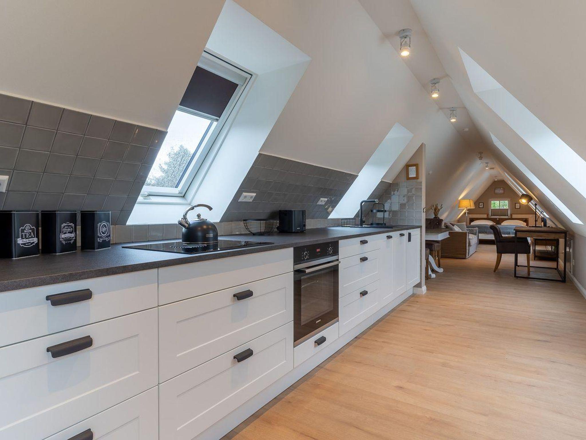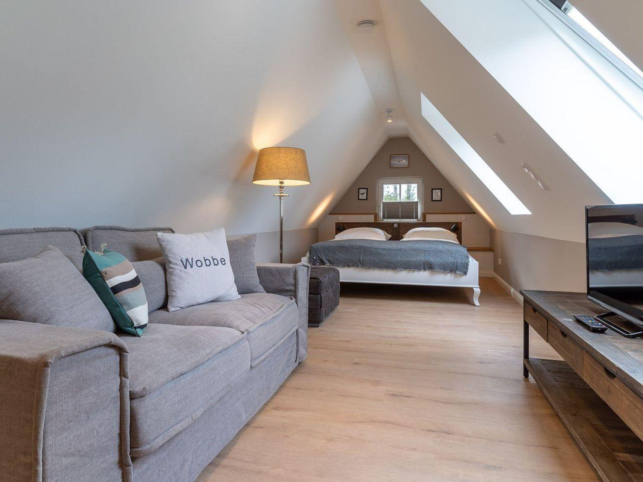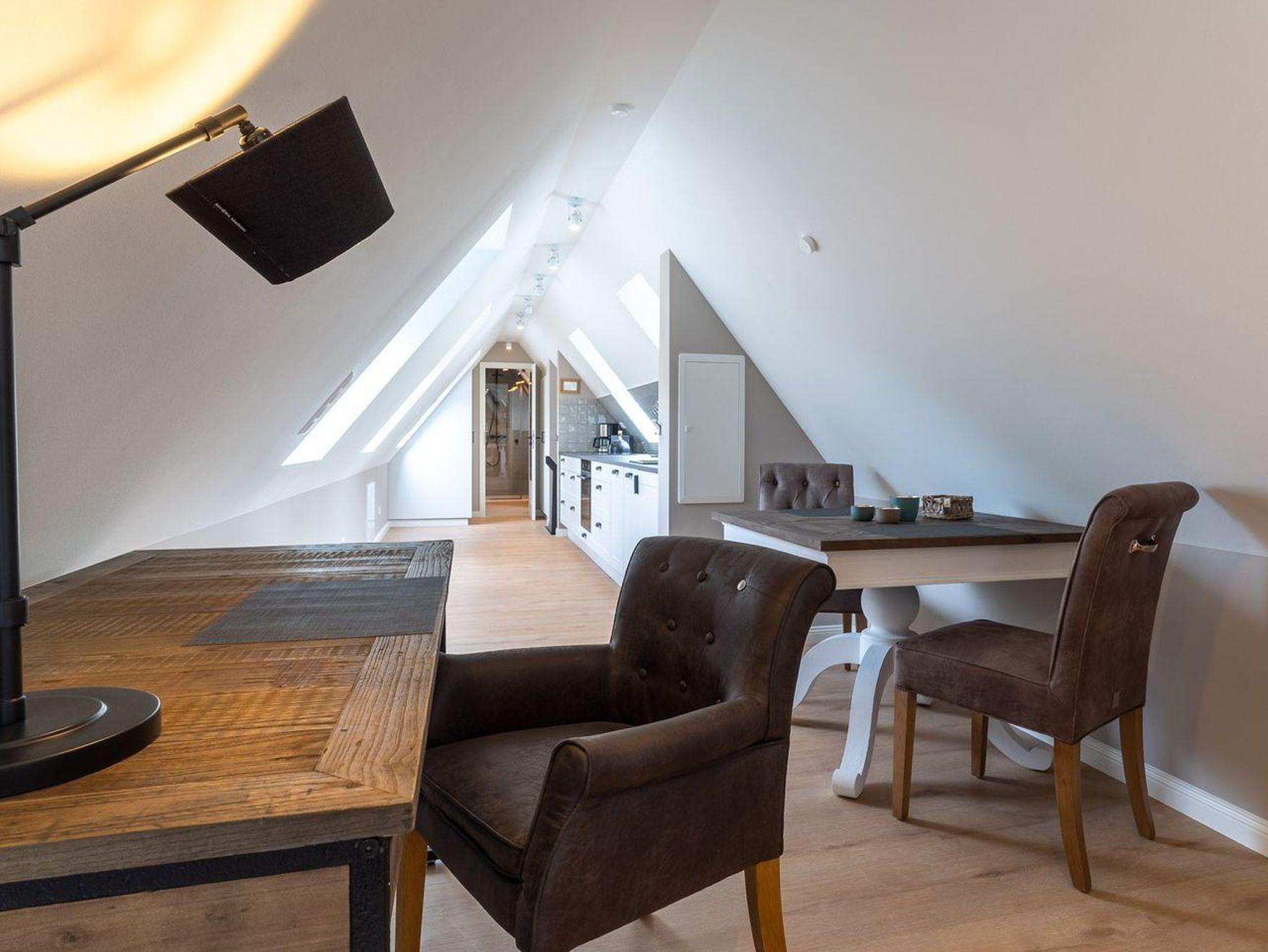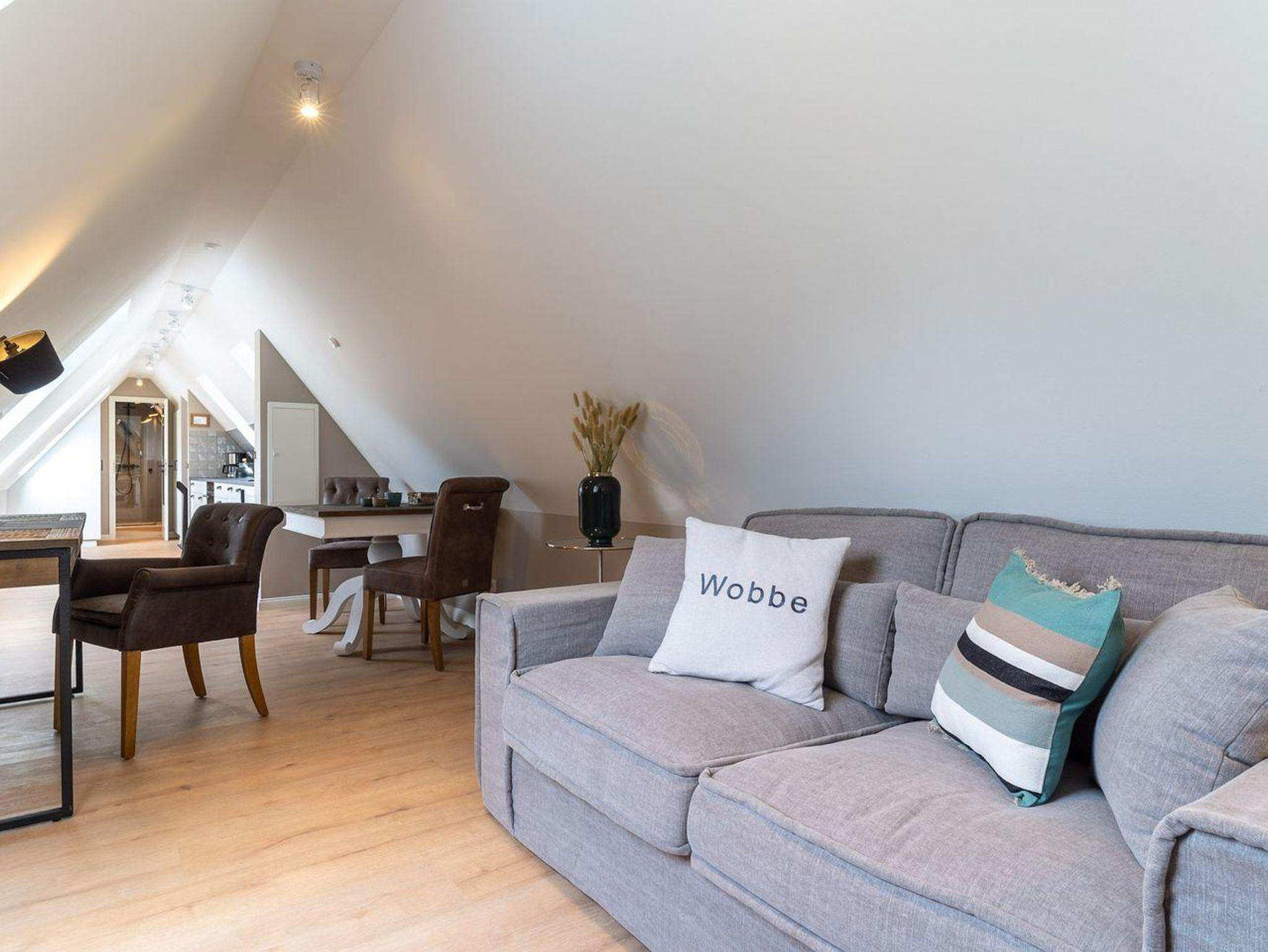 Das luxuriöse Loft Appartement Wobbe in dem Haus Böhl liegt im Dachgeschoss und verfügt über ca. 40m² Wohnfläche. Es bietet Platz für 1-2 Personen.