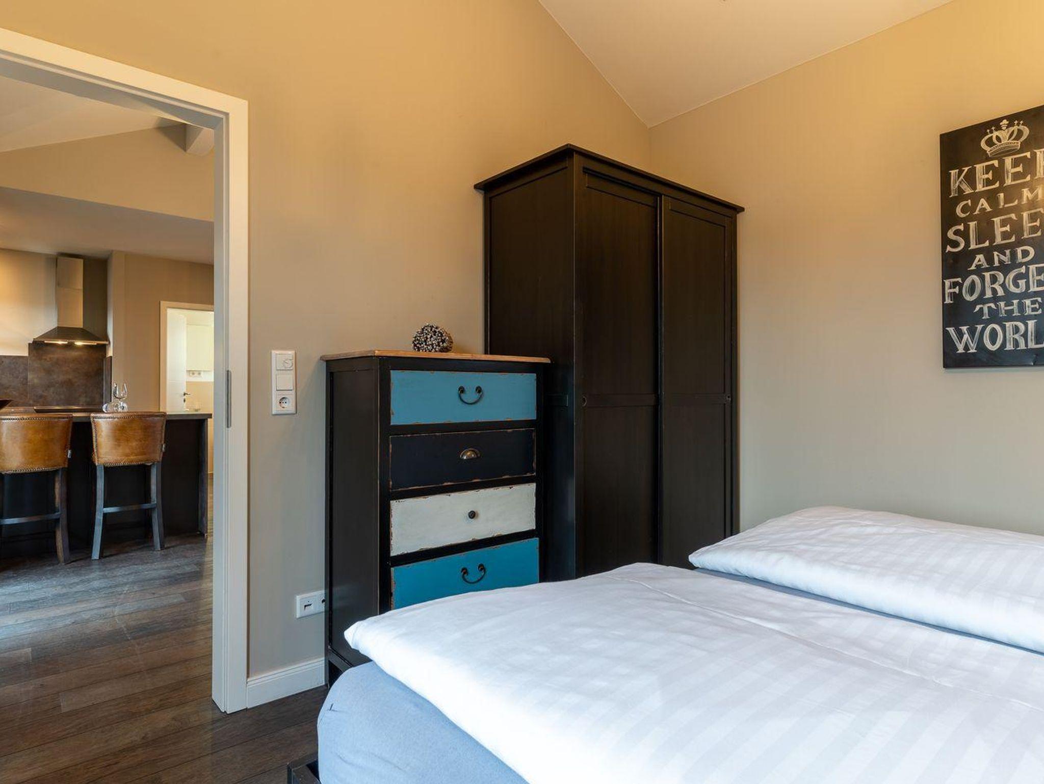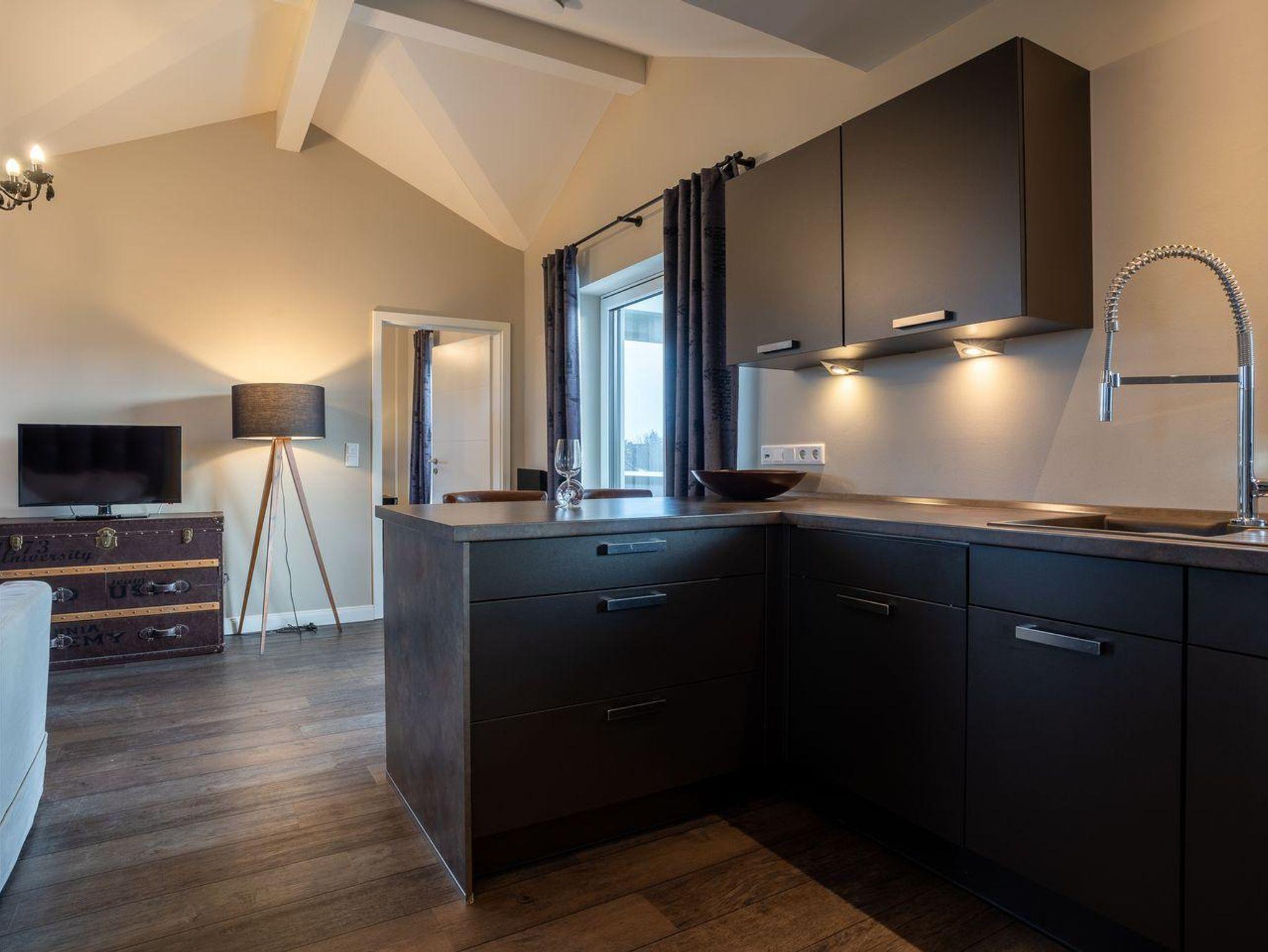Das Penthouse verfügt über ca. 50 m² Wohnfläche und ist sehr lichtdurchflutet. Ein gemütliches Wohnzimmer mit TV und offener Wohnküche laden zum Chillen ein. Die Küche ist mit hochwertigen Geräten voll ausgestattet. Das Duschbad ist großzügig gestaltet und bieten genügend Platz für Ihre Utensilien. Ein Schlafzimmer mit Doppelbett und offenem Fußende sorgt für ruhevolle Erholung.