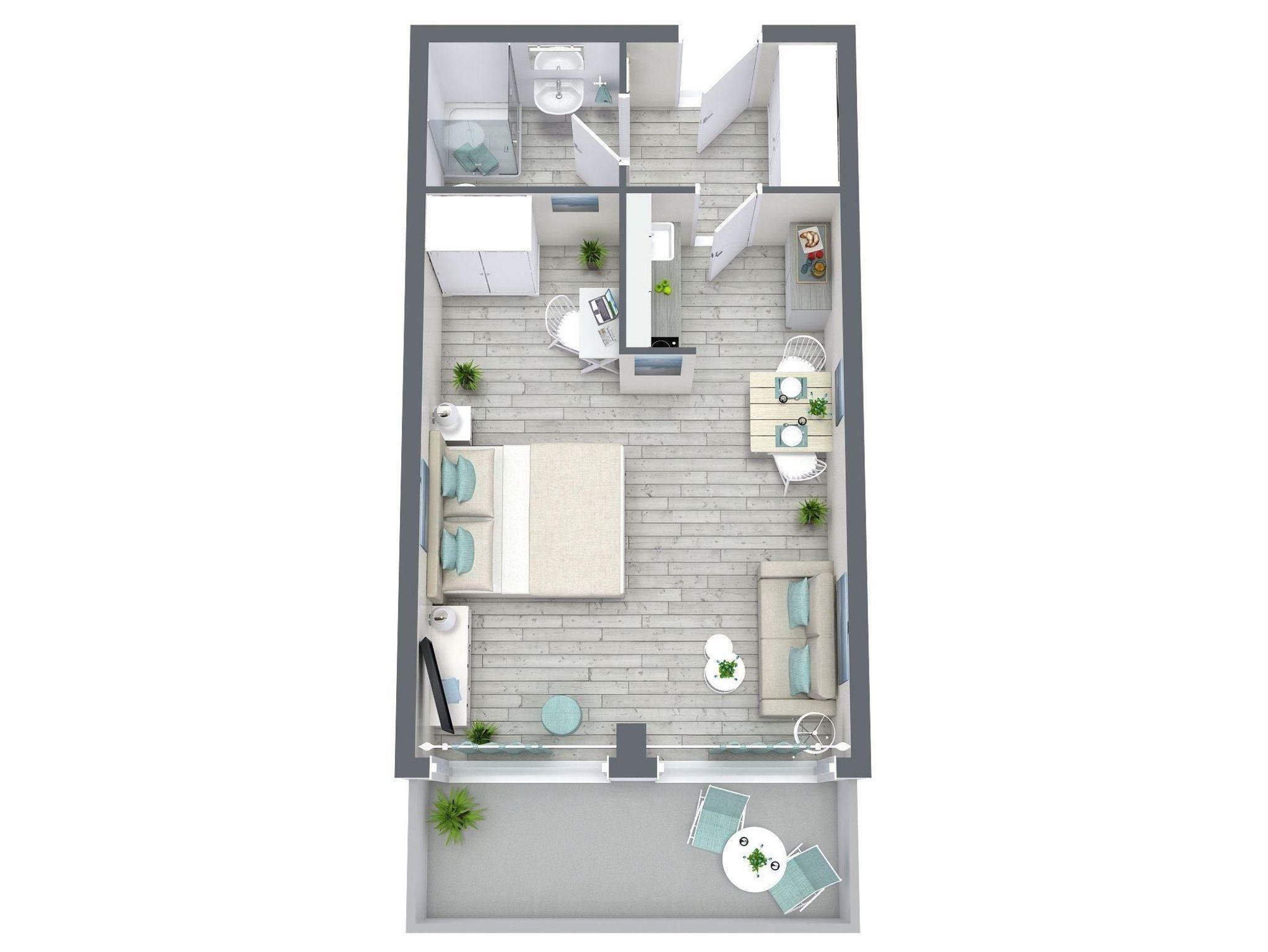 (1 Wohnzimmer, 1 Badezimmer)