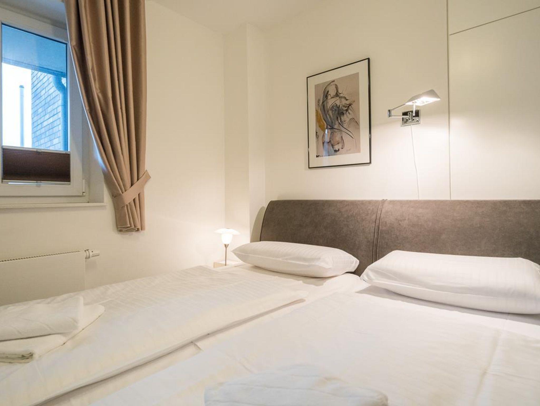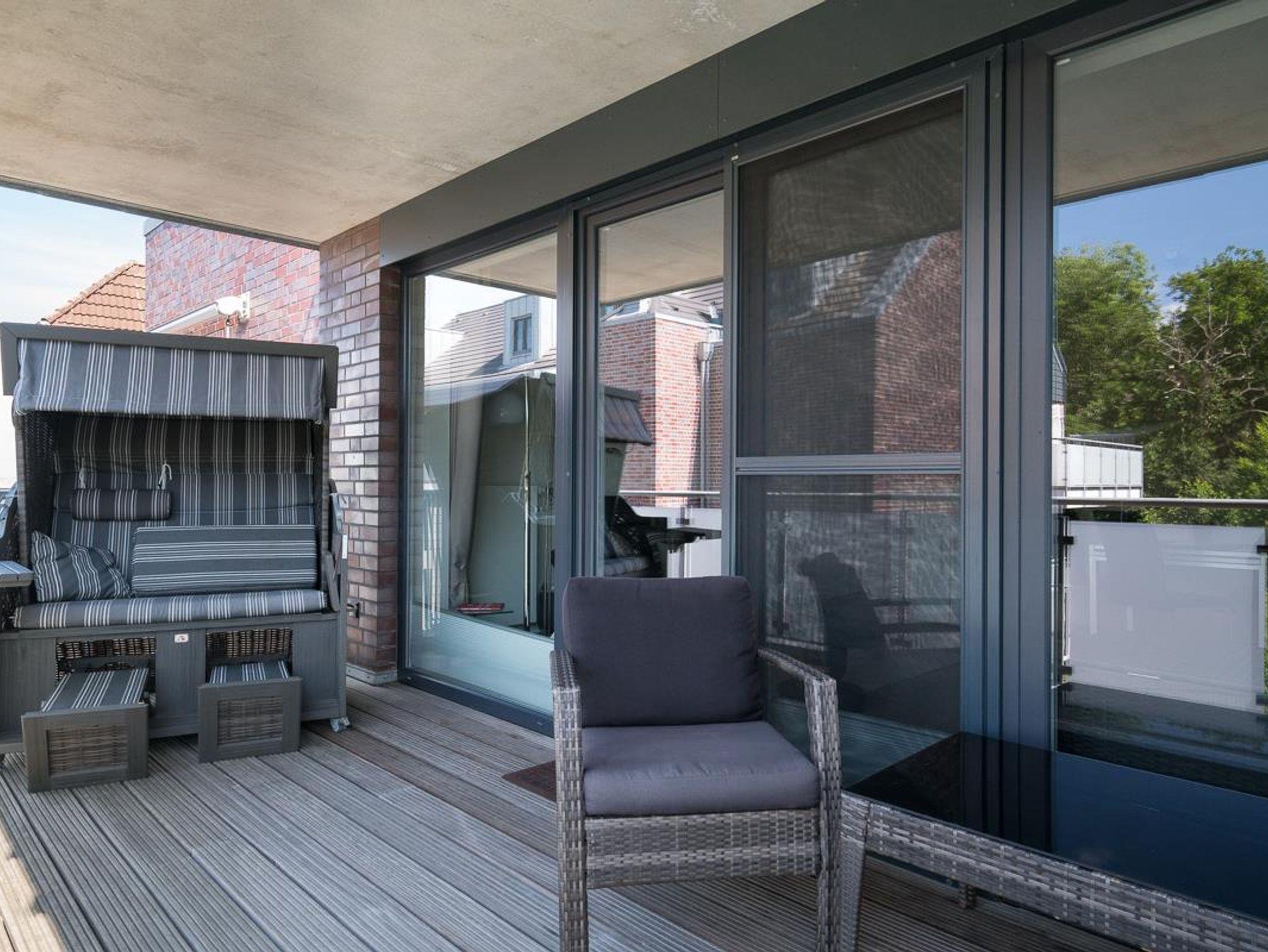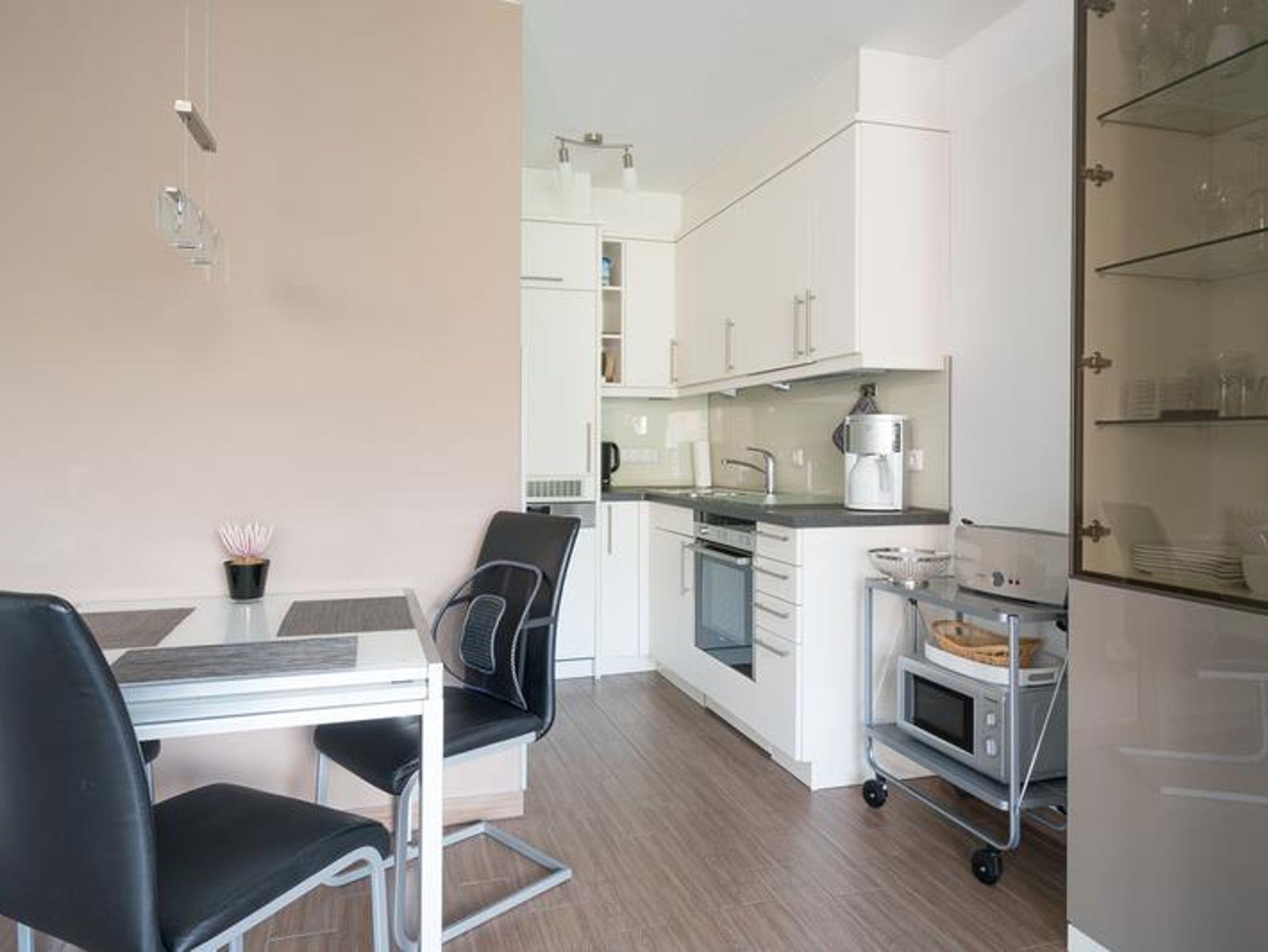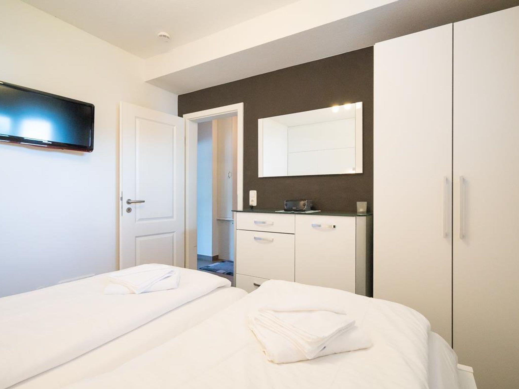 Attraktiver Neubau direkt am Waldrand in bester Lage. 2-Zimmer-Appartement,1. Etage (auch Aufzug vorh.). Exclusive Ausstattung. Flur. Duschbad/WC mit Fön. Wohnraum mit einem Stressless-Sessel u. Sofa., Essecke, LCD-TV, Radio mit CD Player und DVD Player. Möbl. Südwestloggia. Küchenzeile mit 4-Platten-Herd (Ceran), Backofen, Mikrowelle, Geschirrspüler. Schlafraum mit Boxspringbett und TV. Wäschepakete inklusive ( Betten sind bezogen, 1 Handtuch und 1 Duschhandtuch pro Person). Böden mit Fliesen. Insektenschutz. PKW-Platz sowie Fahrradabstellplatz. Gemeinschaftswaschraum (Münz- maschinen) im Keller. Möblierter Balkon mit Strandkorb, Tisch u. Stühlen NICHTRAUCHER. Kostenloses W-LAN. Keine Haustiere erlaubt.