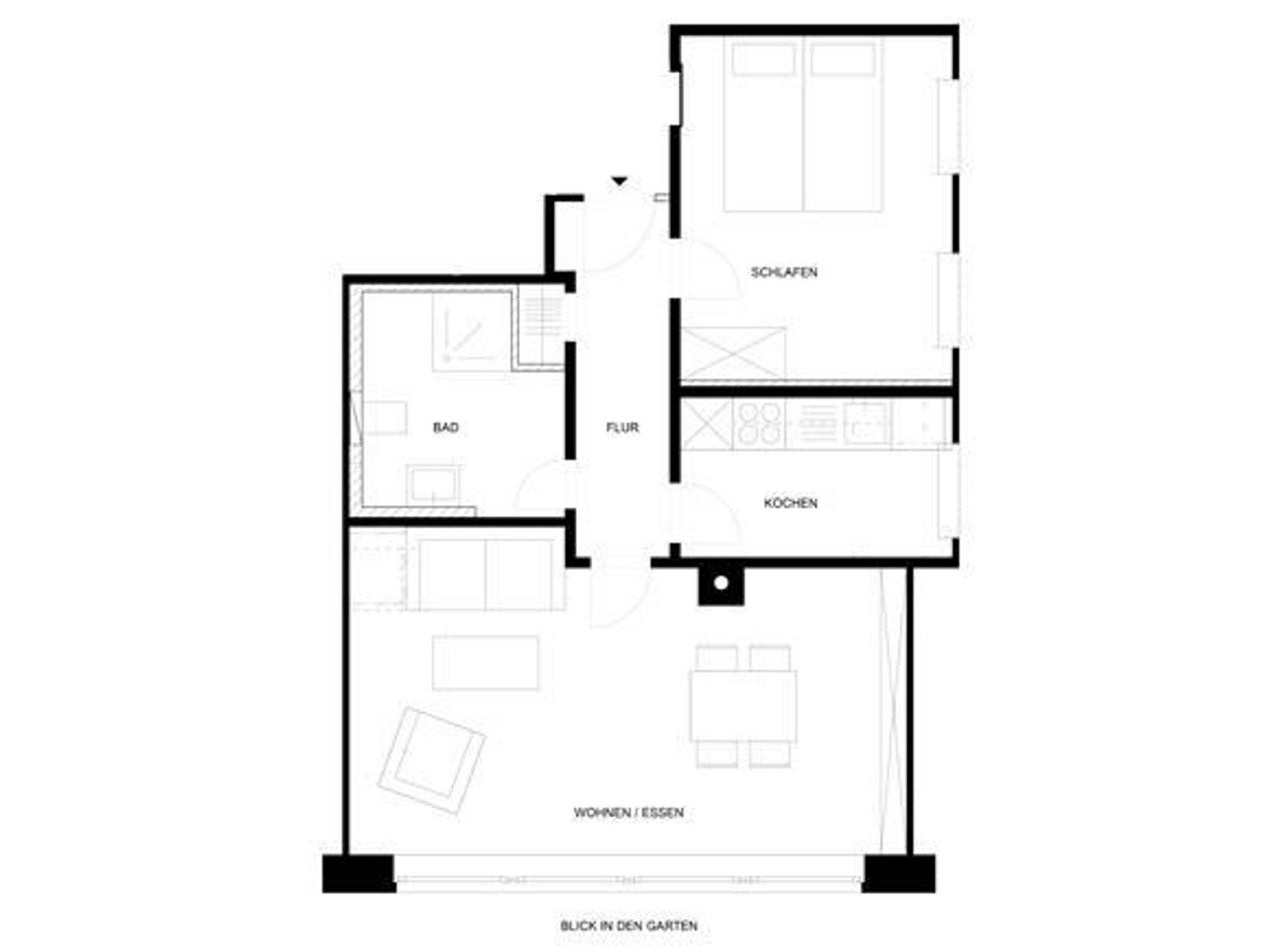 Grün vor der Tür erwartet Sie ein Gemeinschaftsgarten, wo Gartenmöbel zum Sonnen und Erholen bereit stehen. Sogar eine Boulebahn im hinteren Garten lädt zu einer spannenden Partie ein.