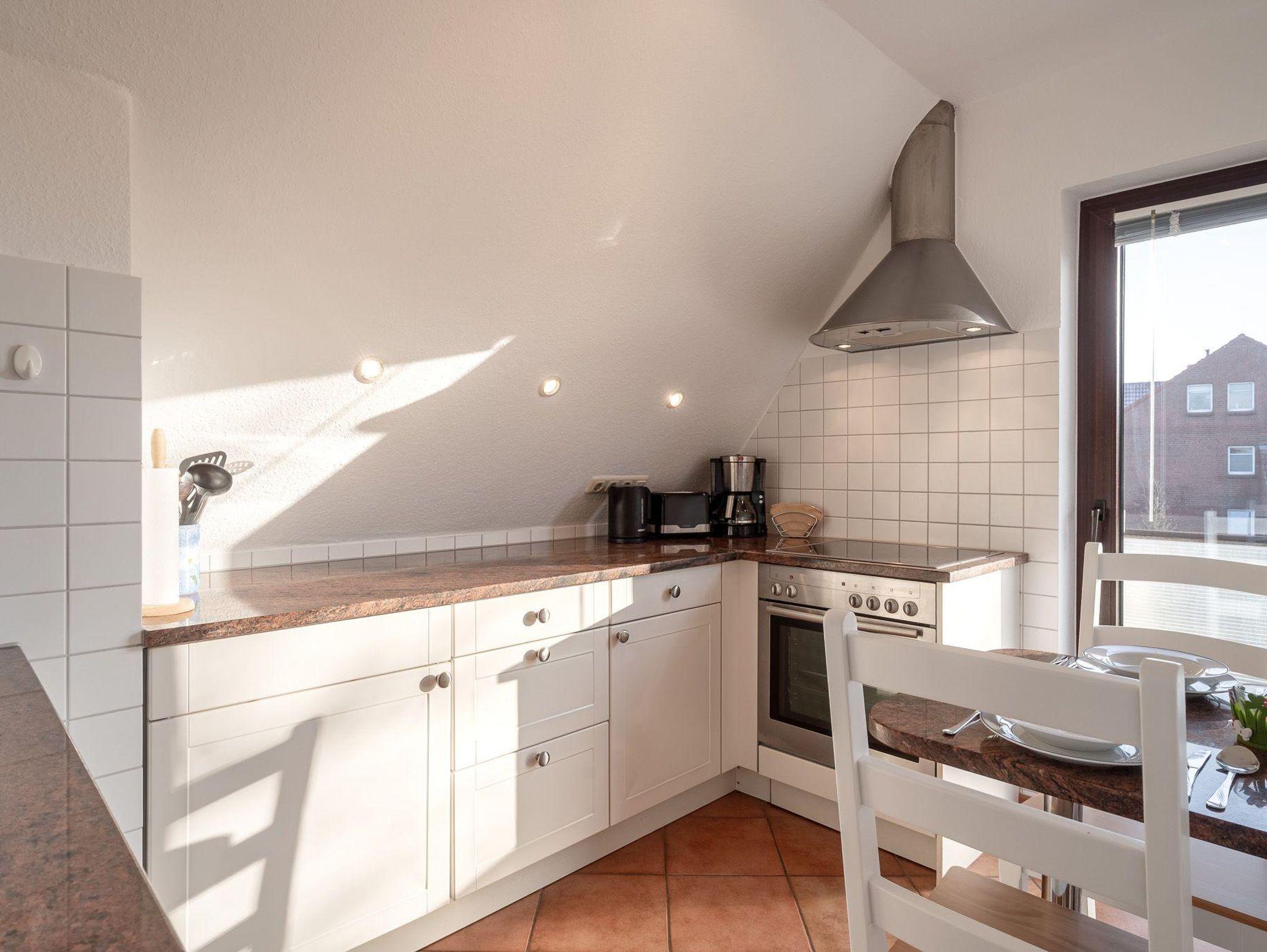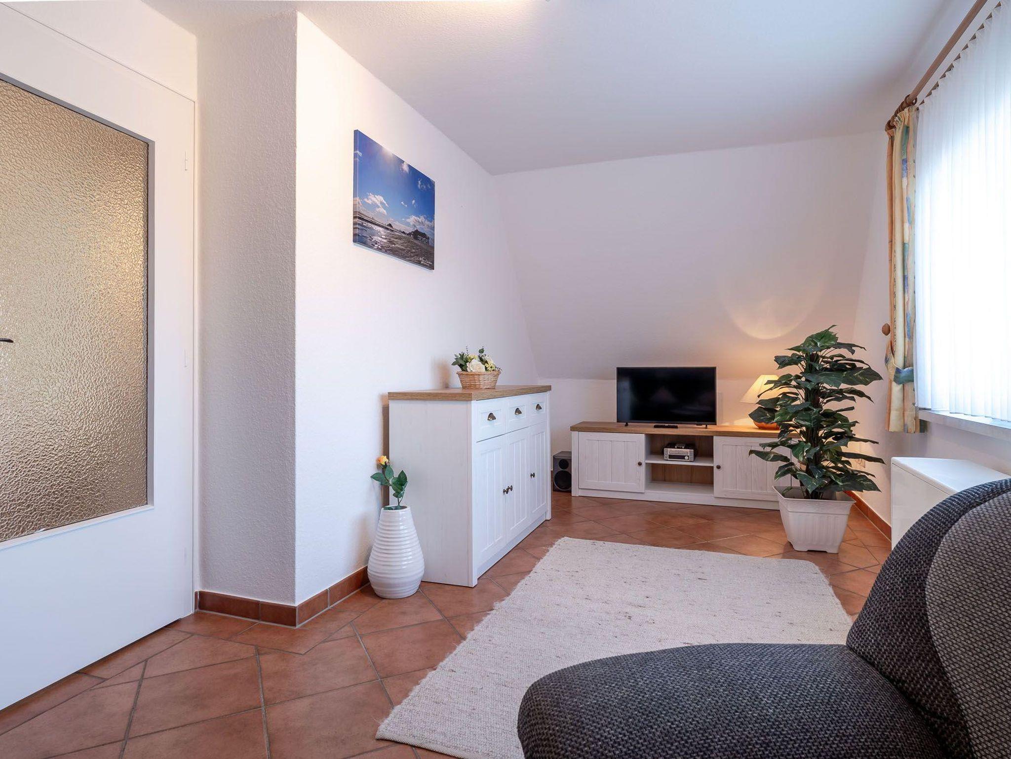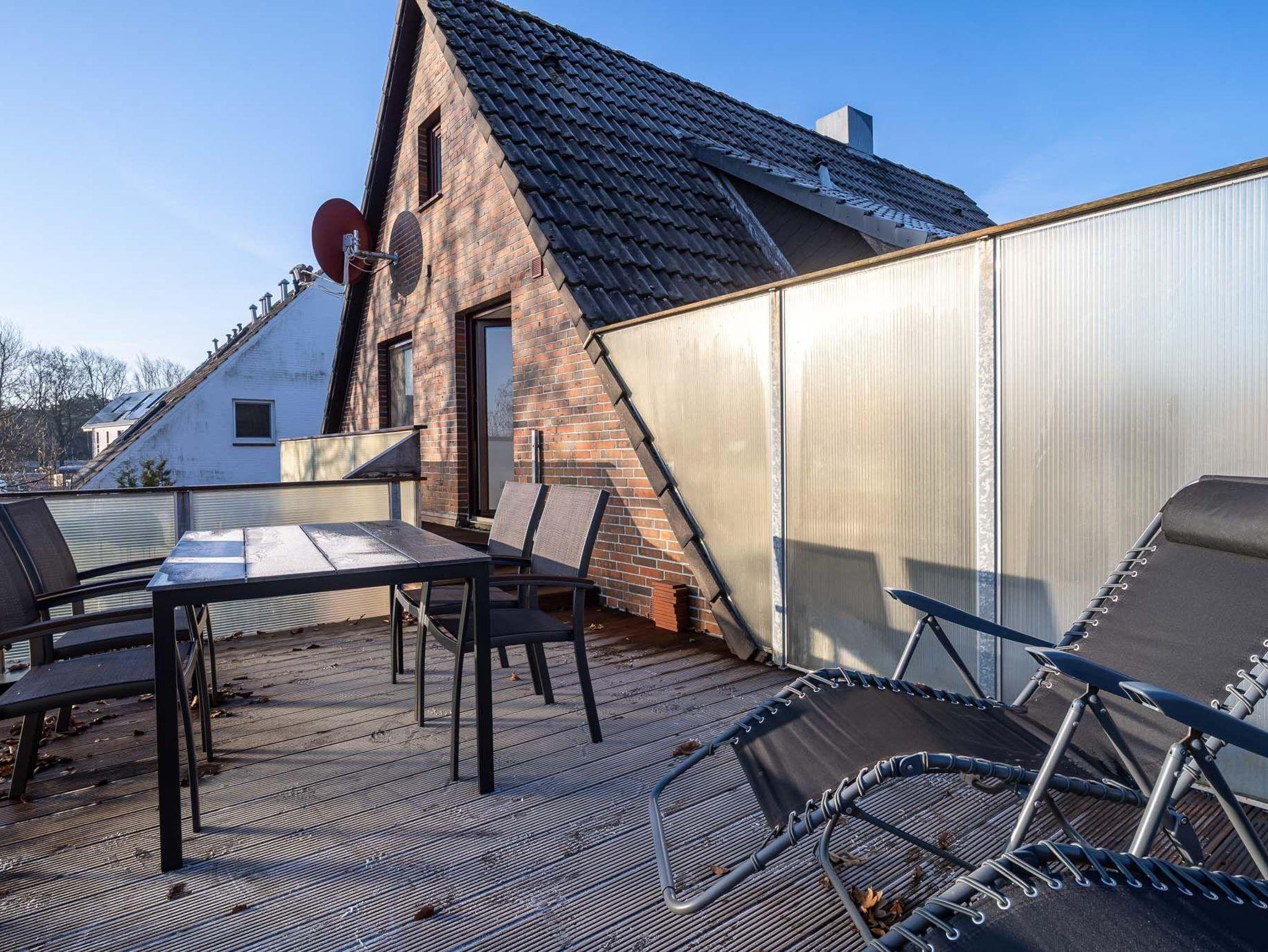 Der Balkon der Unterkunft ist möbliert und eröffnet einen angenehmen Gartenblick, was besonders an sonnigen Tagen zum Entspannen an der frischen Nordseeluft einlädt. Mit dem bereitstehenden WLAN und einem TV stehen Ihnen zusätzliche Unterhaltungsmöglichkeiten zur Verfügung. Auch ein Radio sorgt für musikalische Untermalung Ihrer Urlaubstage.