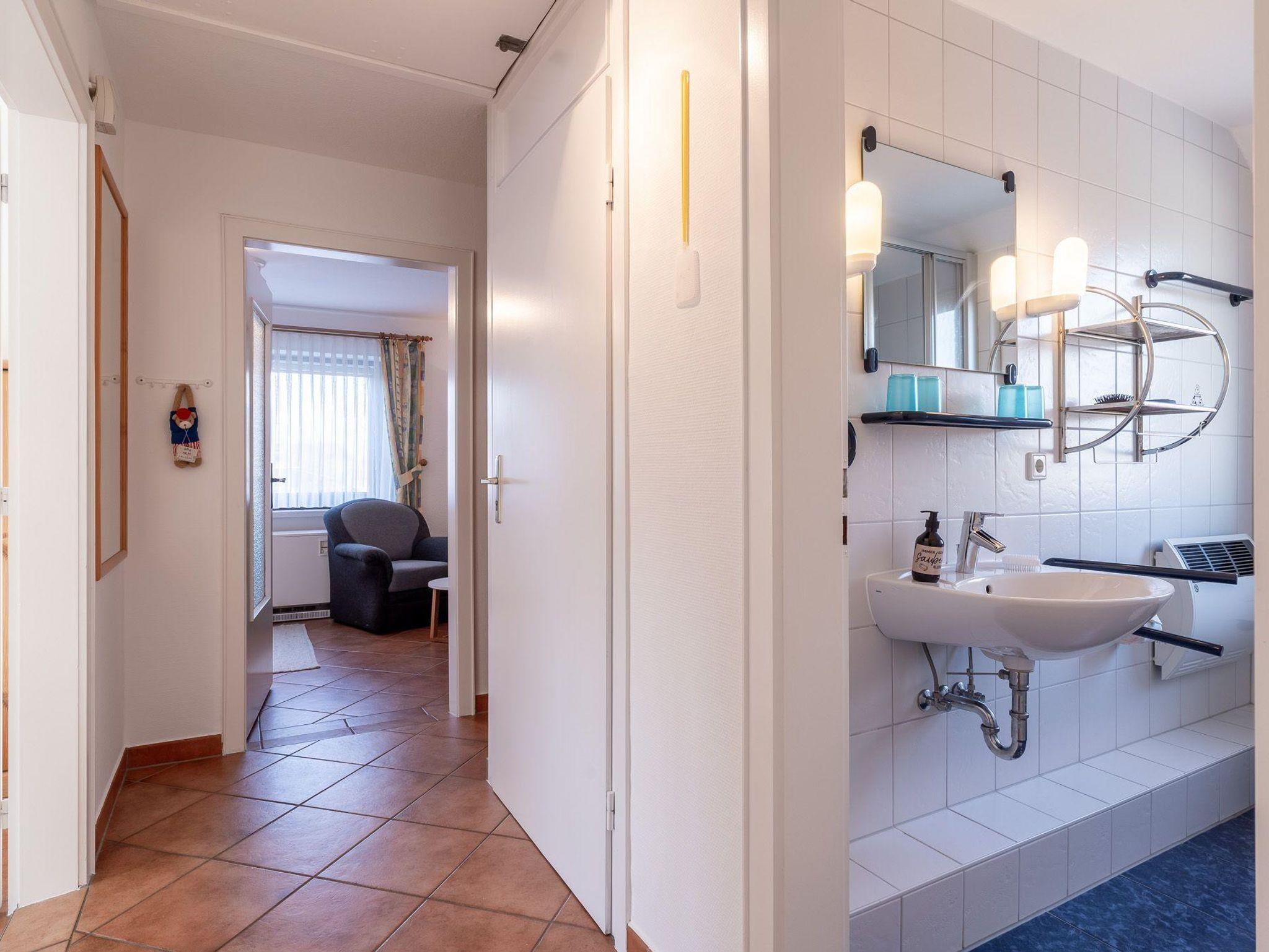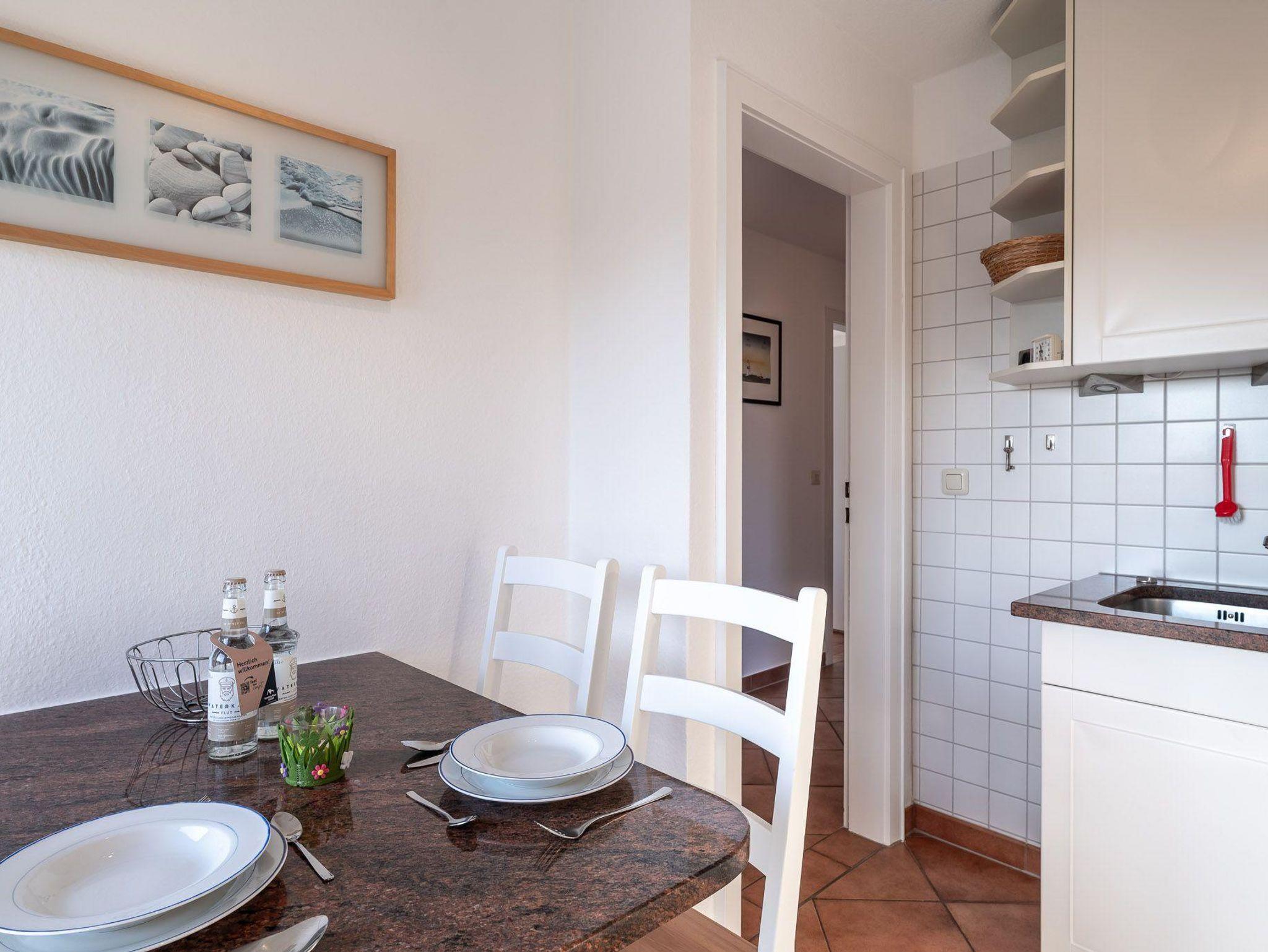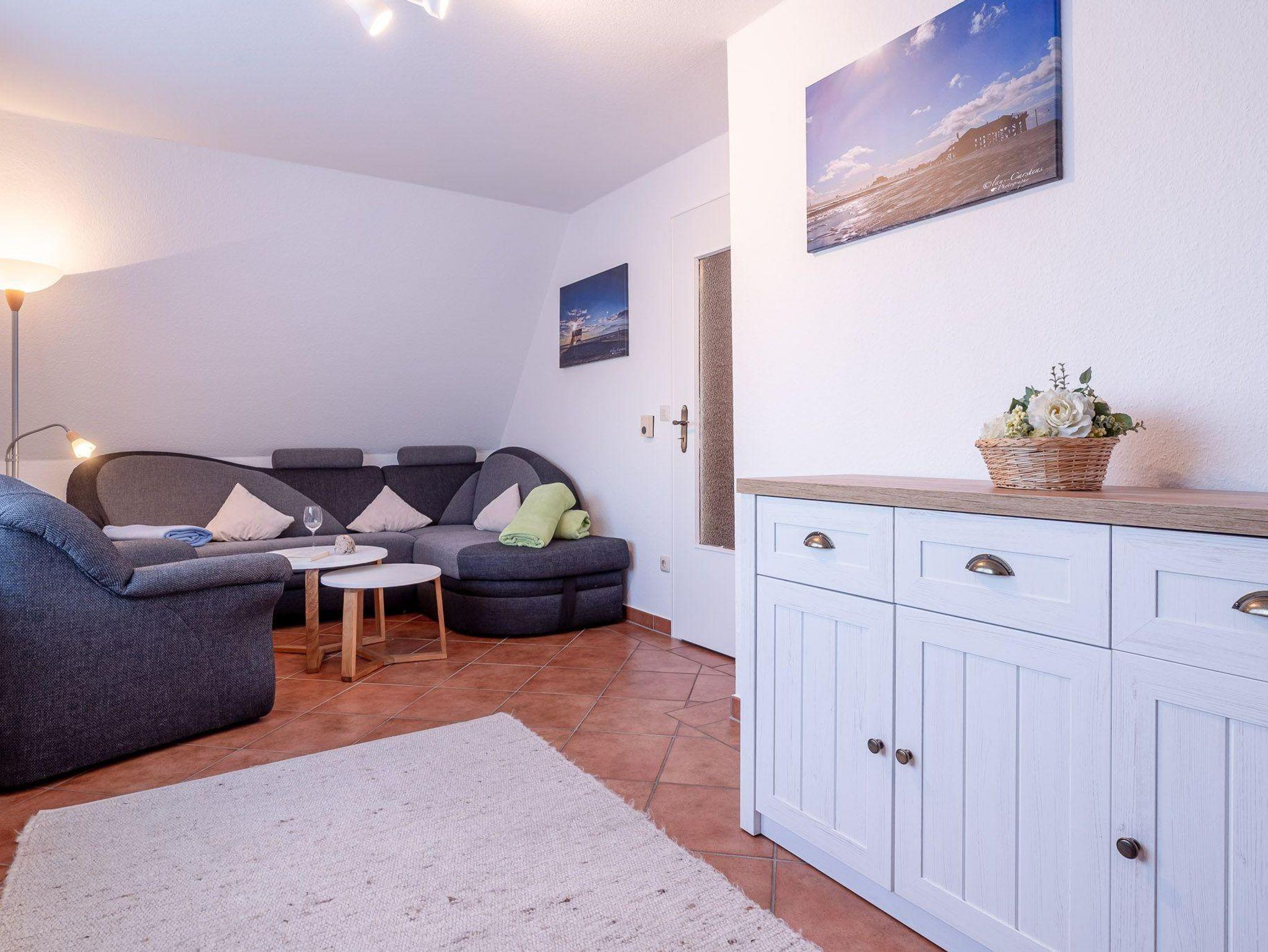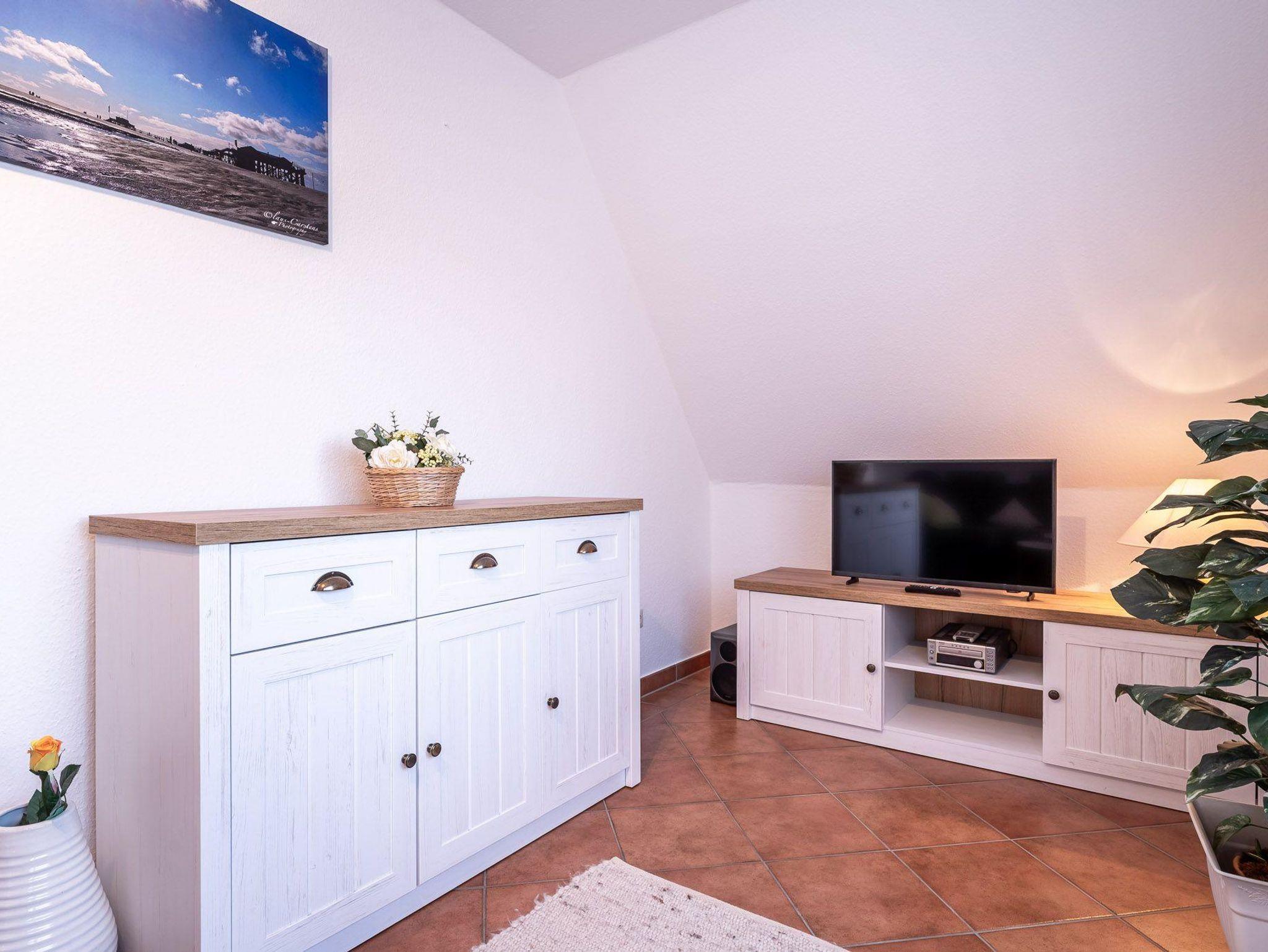 Der Balkon der Unterkunft ist möbliert und eröffnet einen angenehmen Gartenblick, was besonders an sonnigen Tagen zum Entspannen an der frischen Nordseeluft einlädt. Mit dem bereitstehenden WLAN und einem TV stehen Ihnen zusätzliche Unterhaltungsmöglichkeiten zur Verfügung. Auch ein Radio sorgt für musikalische Untermalung Ihrer Urlaubstage.