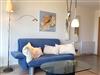 Wohnzimmer: Schlafcouch, Couchtisch, Sessel, Beistelltisch, Stehlampe, Regalschrankwand, Kabel-TV, Stereoanlage mit CD-Player, Nachtspeicherofen, Meerblick, Esstisch, 4 Stühle, Küchenzeile, 2 Plattenherd, Dunstabzugshaube, Kühlschrank, Spülmaschine, Mikrowelle, Kaffeemaschine, Wasserkocher, Toaster, Geschirr, Kochtöpfe