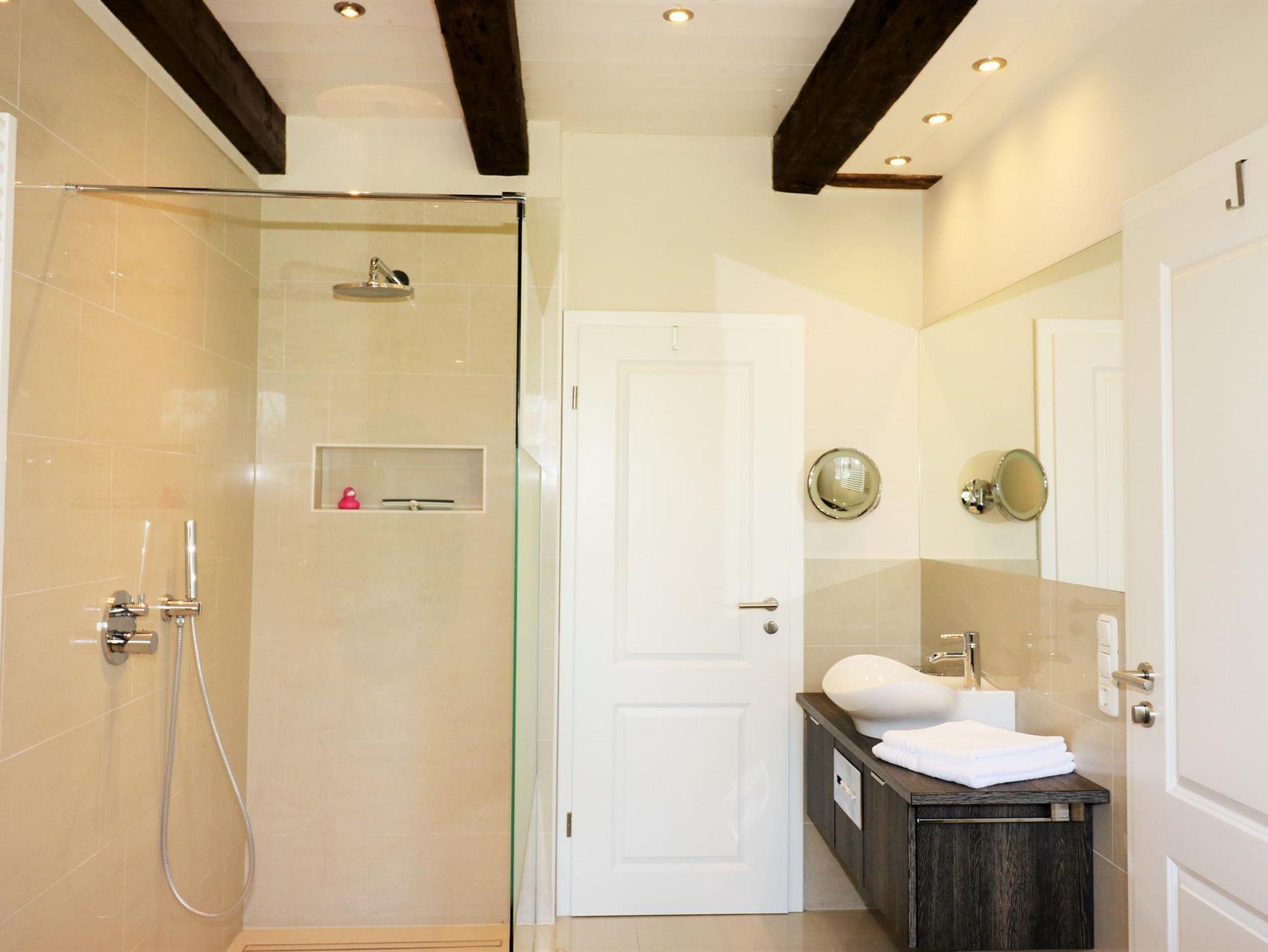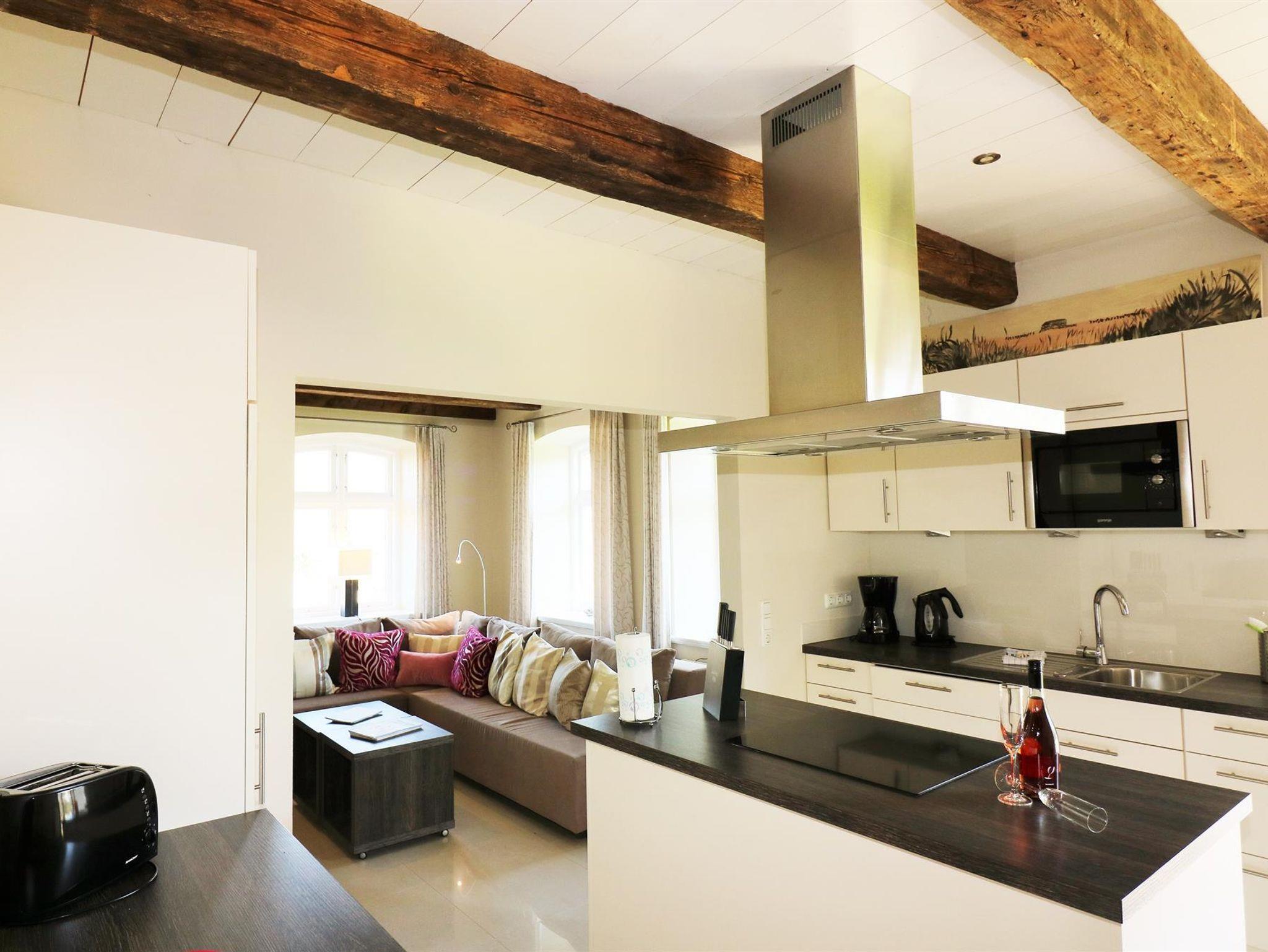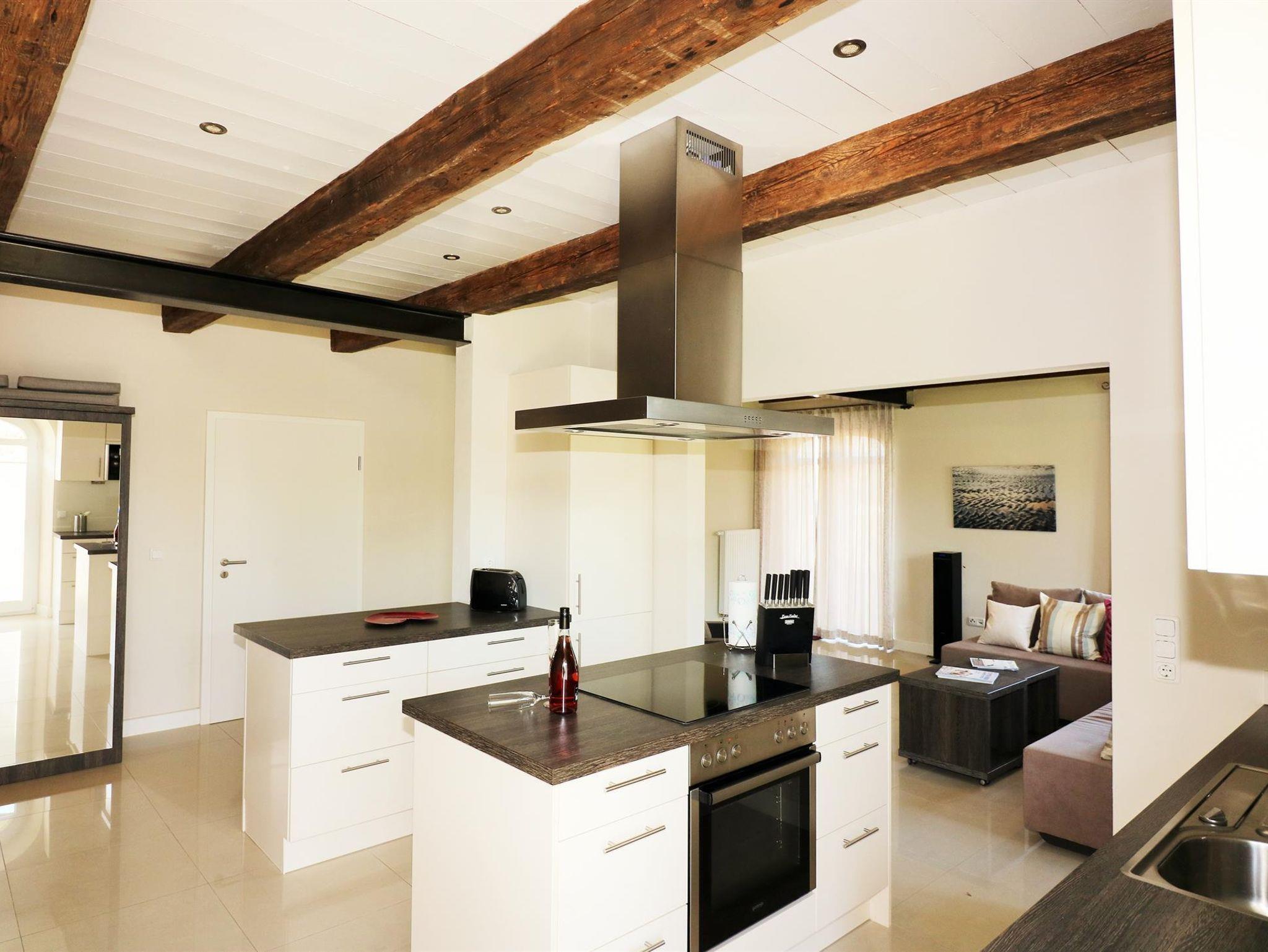 3-Zimmer Nichtraucher-Ferienwohnung für bis zu 4 Personen. Wohnzimmer mit SAT-TV und Blu-Ray/DVD-Player, Musikanlage mit CD-Player, Radio und Dockingstation für iPod, iPad oder iPhone. Badezimmer mit Regendusche, 2 Waschtische, Fön und beleuchtetem Schminkspiegel. Gäste-WC mit Waschmaschine und Trockner. Offene Küche mit Kochinsel, Carenfeld mit Backofen, komplette Küchenausstattung (Kaffeemaschine, Wasserkocher, Toaster, Geschirrspüler, Mikrowelle, Kühlschrank mit Gefrierfach) 1 Schlafzimmer mit Doppelbett, 1 Schlafzimmer mit 2 Einzelbetten und Schreibtisch, Bügelstation und Laptop-Safe. Terrasse mit Gartenmöbeln und Liegen Baby-Bett und Hochstuhl auf Anfrage. PKW-Stellplatz vorhanden. W-LAN kostenfrei verfügbar