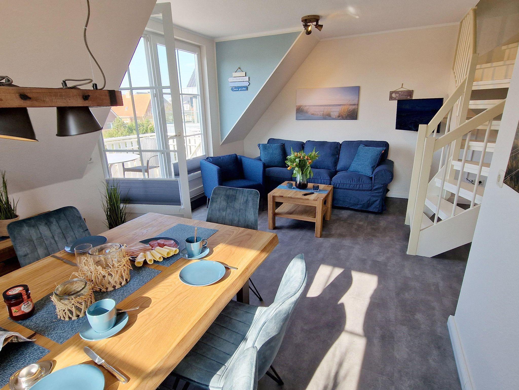 Diese schöne, im ersten Stock gelegene Maisonettewohnung bietet genügend Platz für bis zu 4 Personen und liegt in einer ruhigen Anliegerstrasse. Auf dem Balkon in Westlage geniessen Sie die wundervollen Sonnenuntergänge. Die Küchenzeile ist im Wohn-Eßbereich integriert und Sie haben einem direktem Zugang zum sonnigen Balkon. Die beiden Schlafzimmer sind jeweils mit Doppelbetten ausgestattet. Ein Stellplatz für Ihren PKW befindet sich auf dem Grundstück. Nichtraucherdomizil.