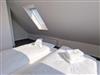 Schlafzimmer 2: 1 Doppelbett im Dachgeschoß, Nachtspeicherofen