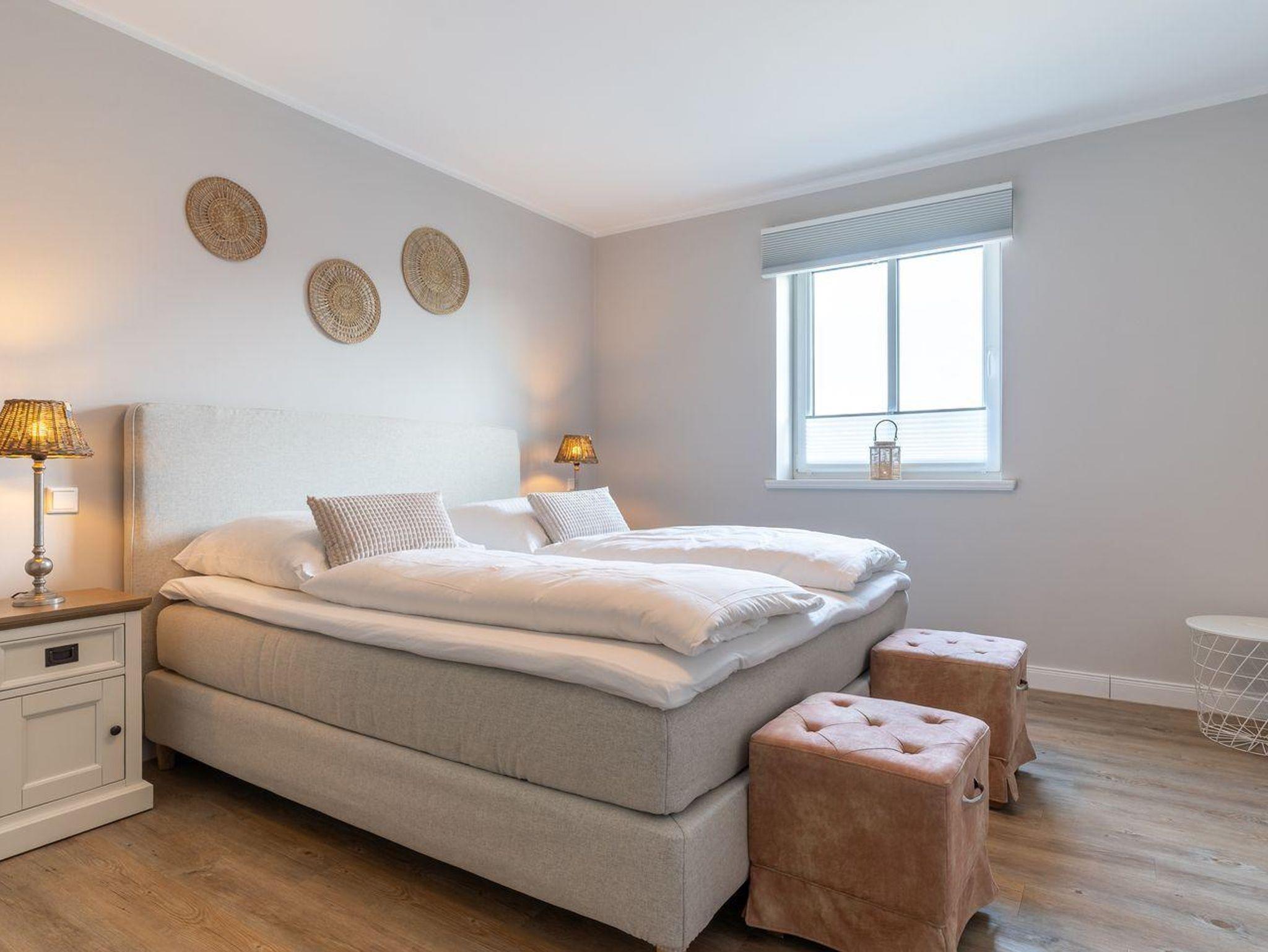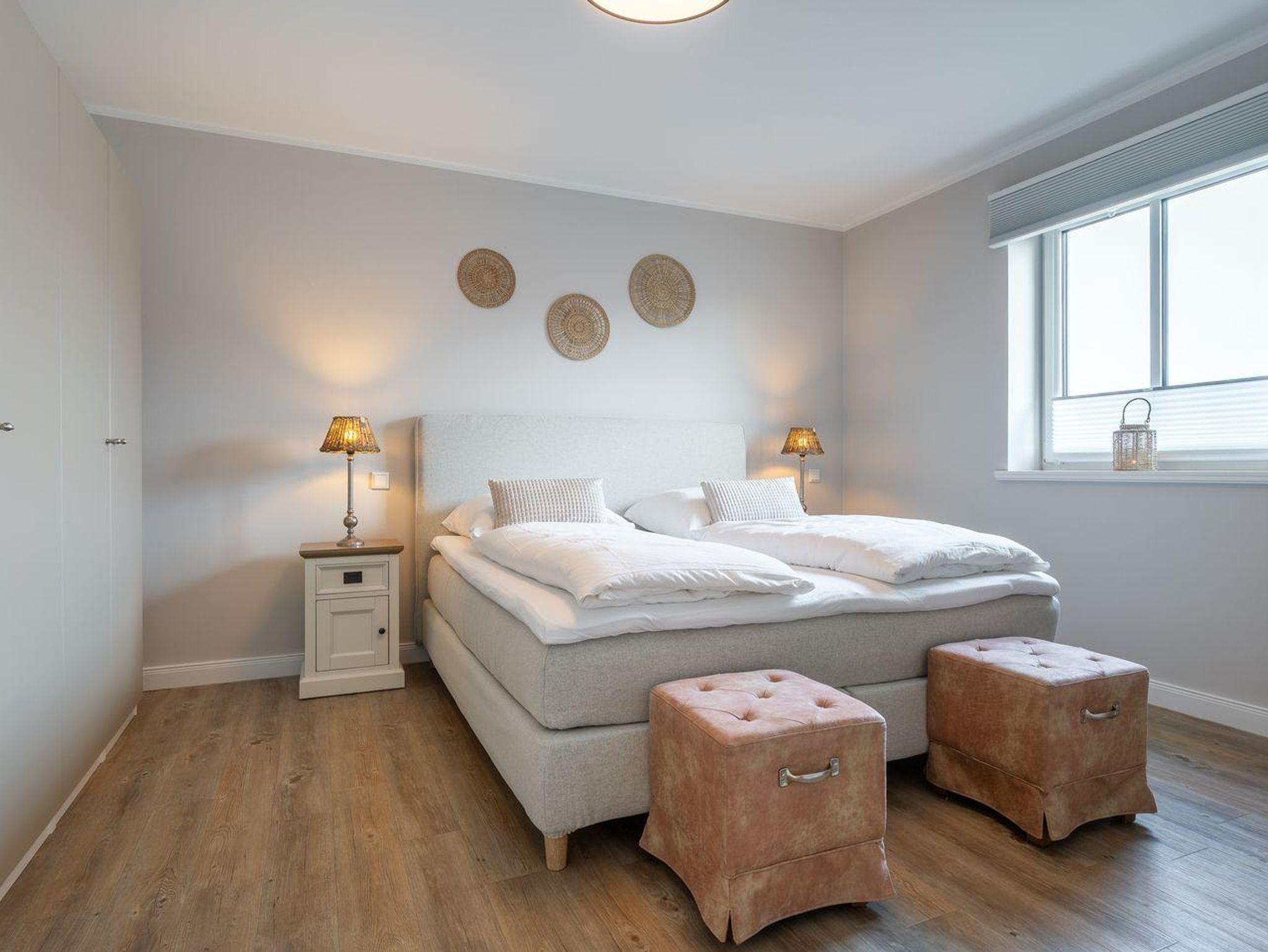 Das großzügig geschnittene Schlafzimmer mit ausreichend Stauraum verspricht erholsame Nächte. Zusätzlich gibt es im Wohnzimmer ein gemütliches Schlafsofa für eine Personen.