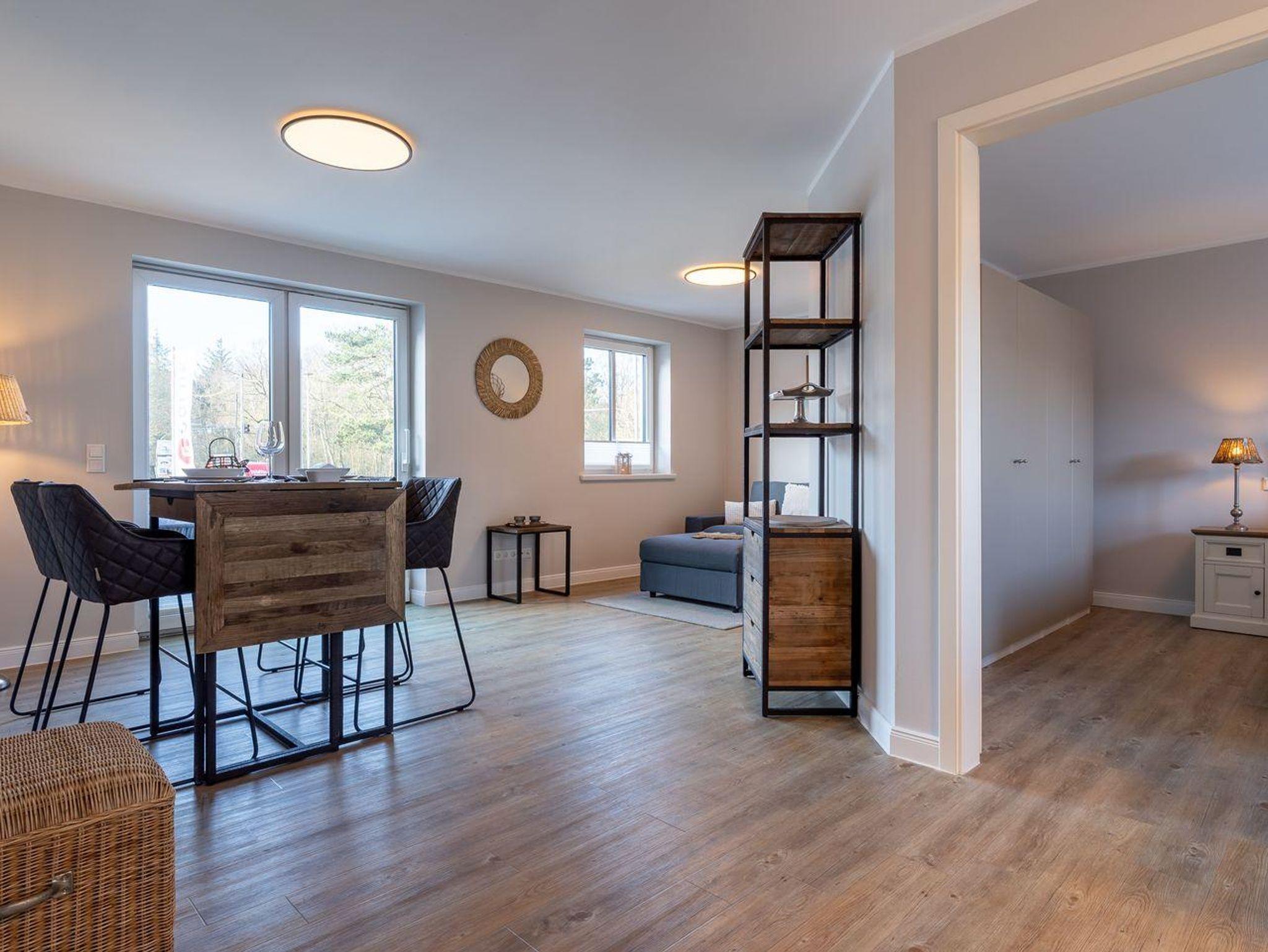 Diese moderne und stilvoll eingerichtete Wohnung bietet auf 60 m² genügend Platz für bis zu drei Personen. Der offene Wohnbereich verbindet Küche und Wohnzimmer harmonisch und ist der perfekte Ort, um sich nach einem erlebnisreichen Tag zu entspannen.