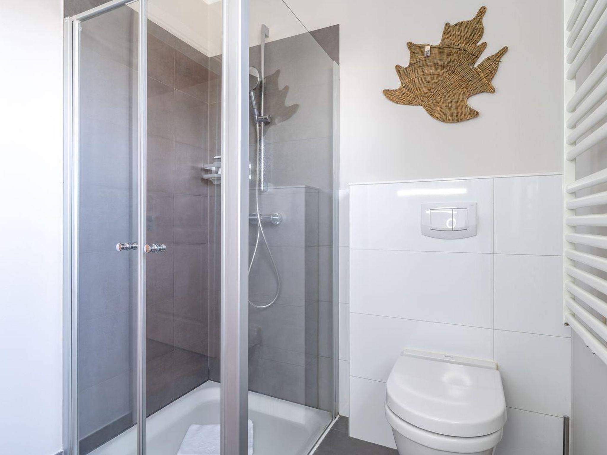 Das Badezimmer ist mit einer modernen Dusche ausgestattet und bietet alles, was Sie für Ihr persönliches Wohlbefinden benötigen. Zusätzlich stehen Ihnen Waschmaschine und Trockner zur Verfügung.