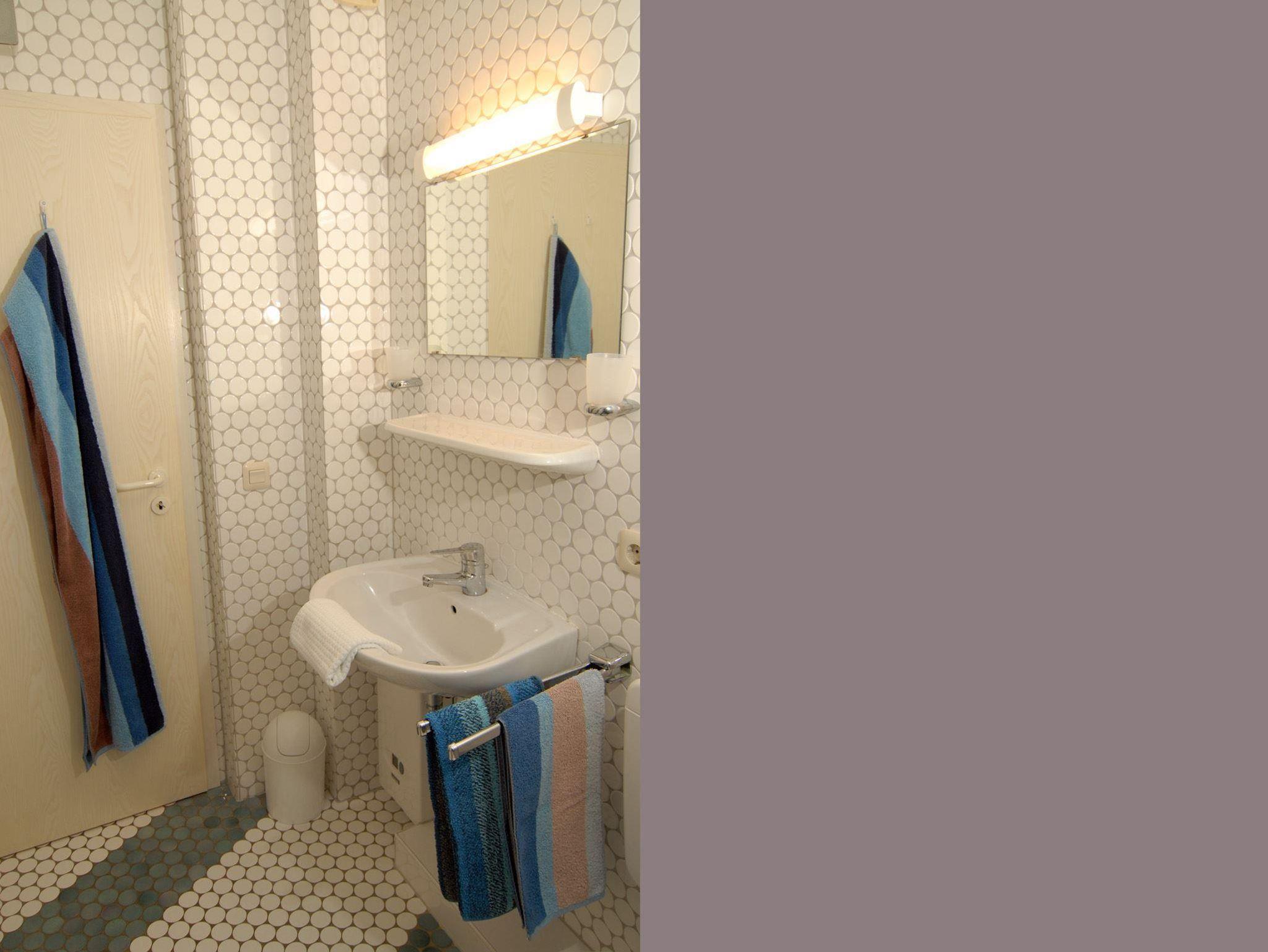 Bad:Dusche, Waschbecken, WC, Ablage, Duschkabine