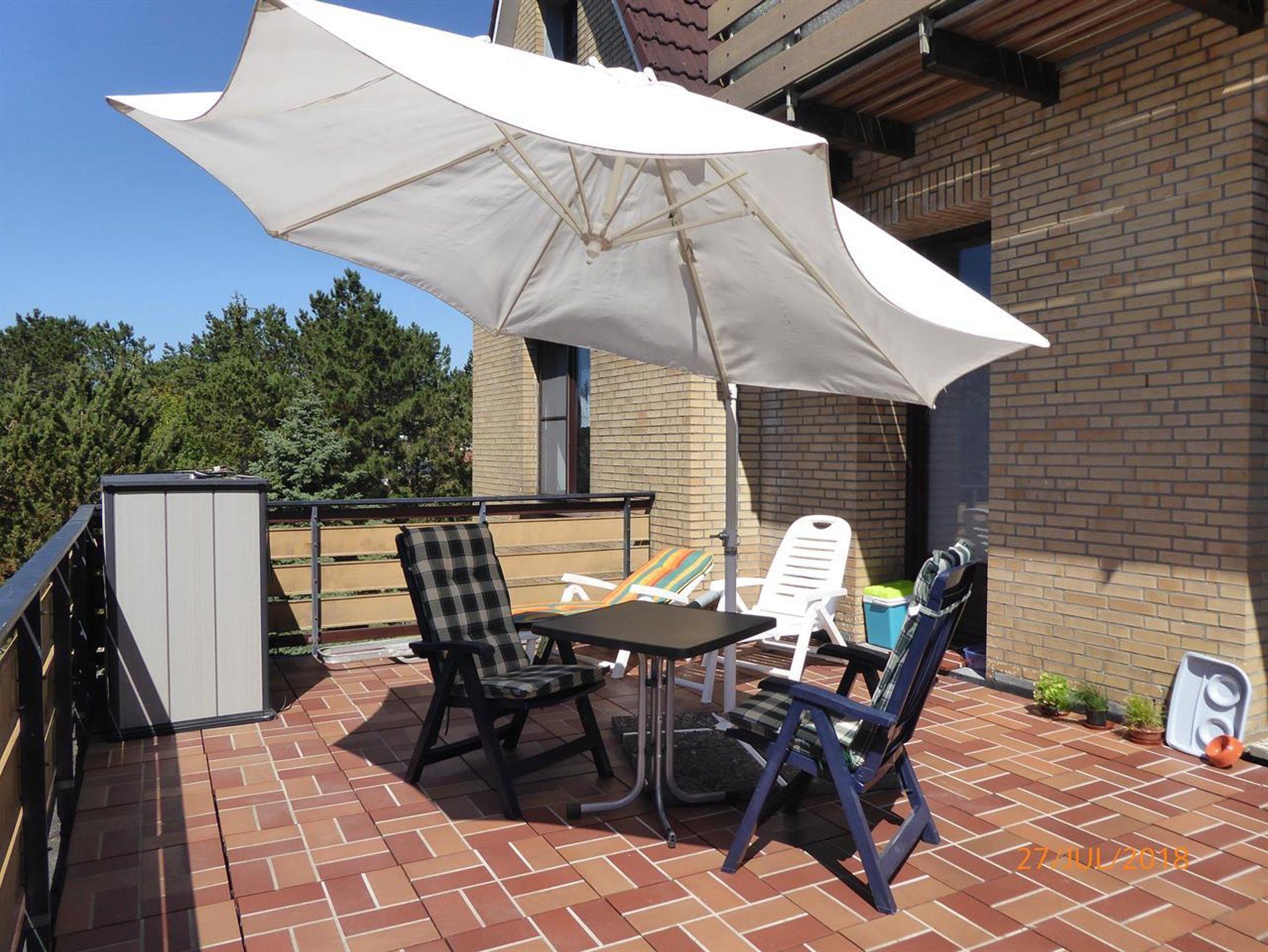 Einfache und zweckmäßige Ferienwohnung im Obergeschoss mit großer Dachterrasse.