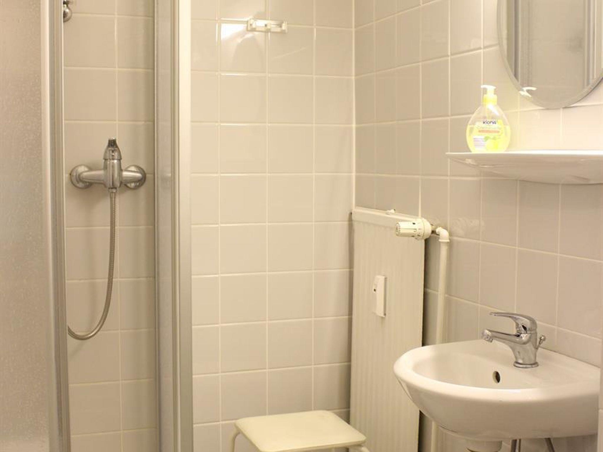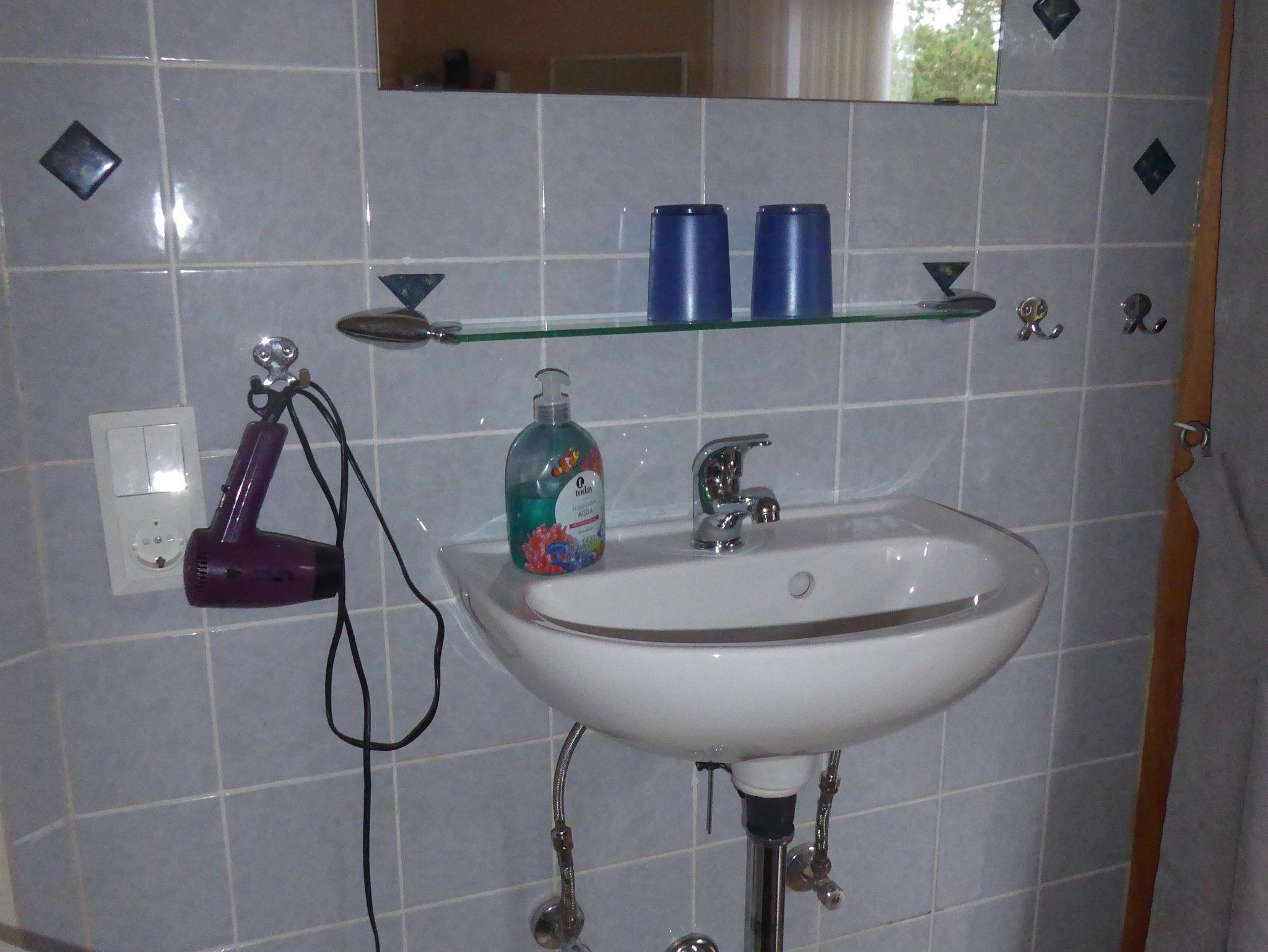 Duschbad mit WC. Das Duschbad für diese Ferienwohnung befindet außerhalb der Wohnung im Flur.