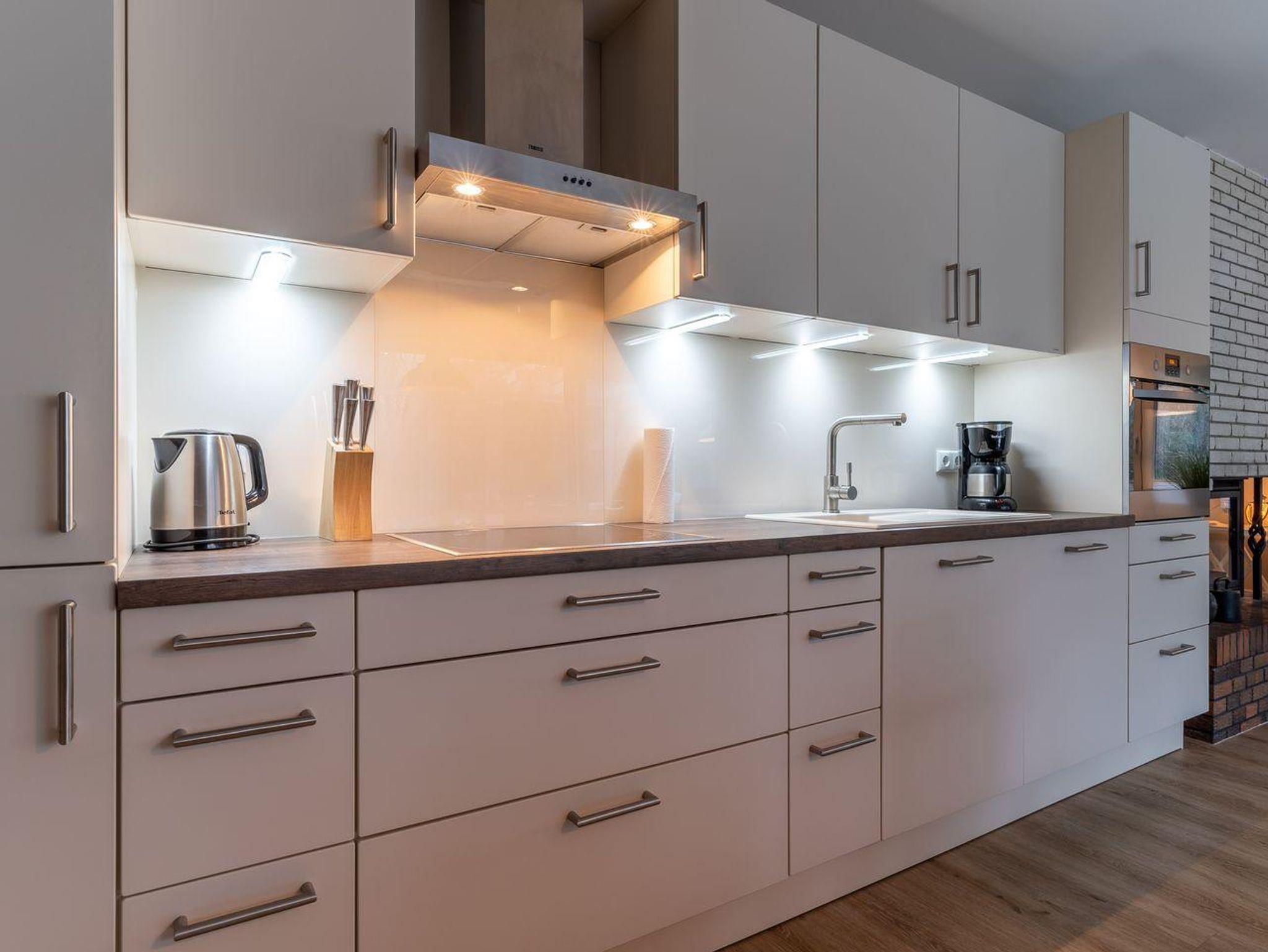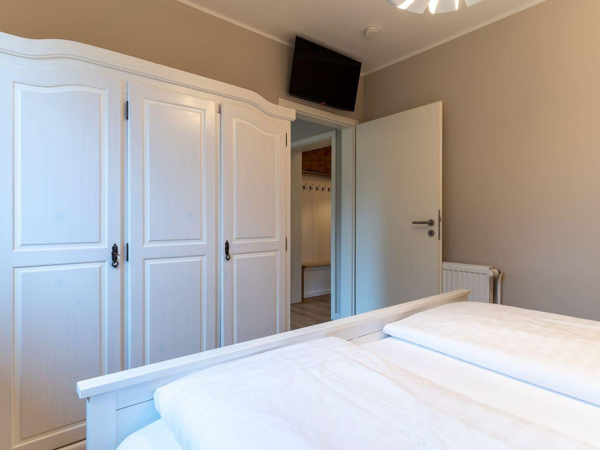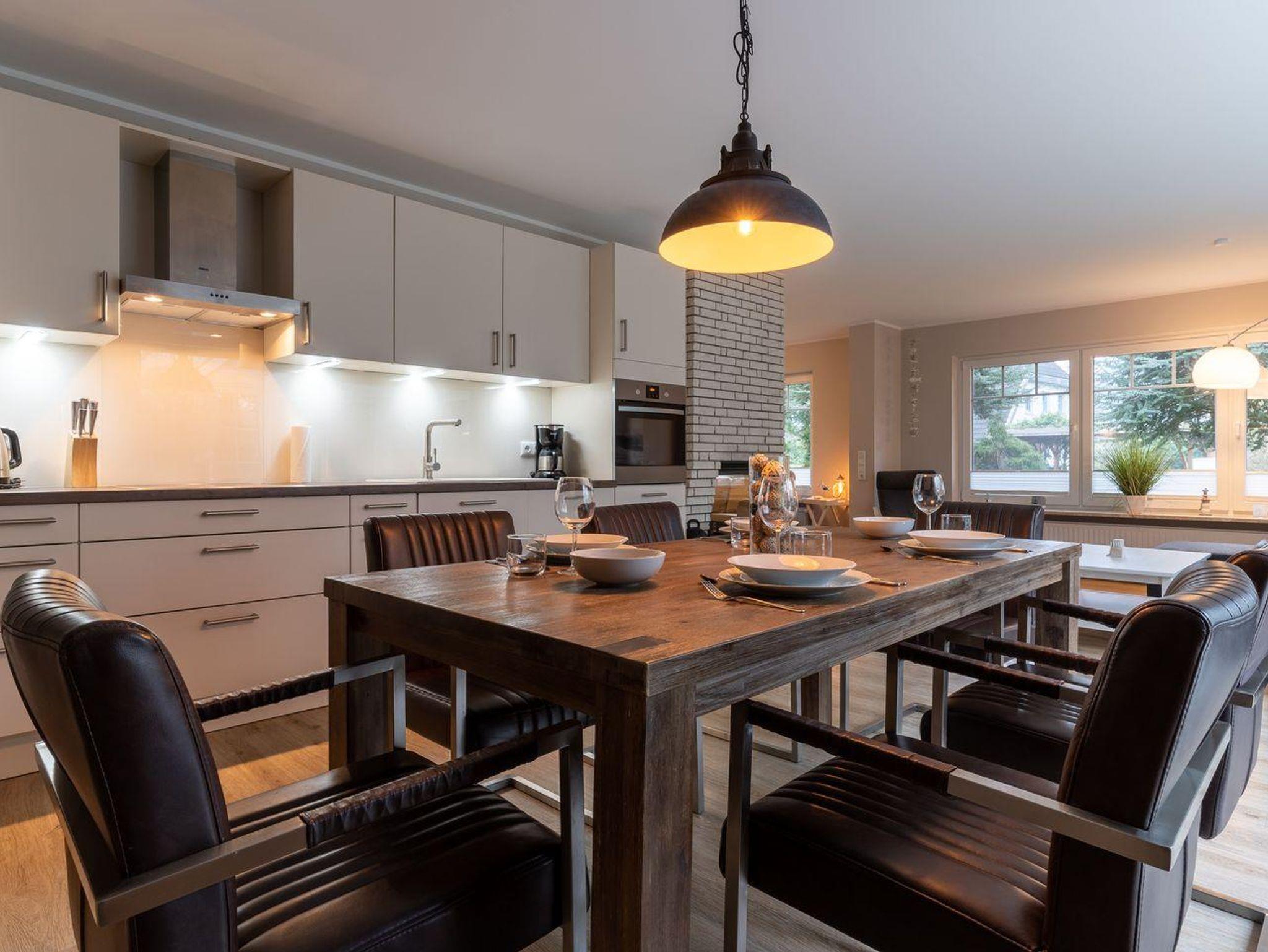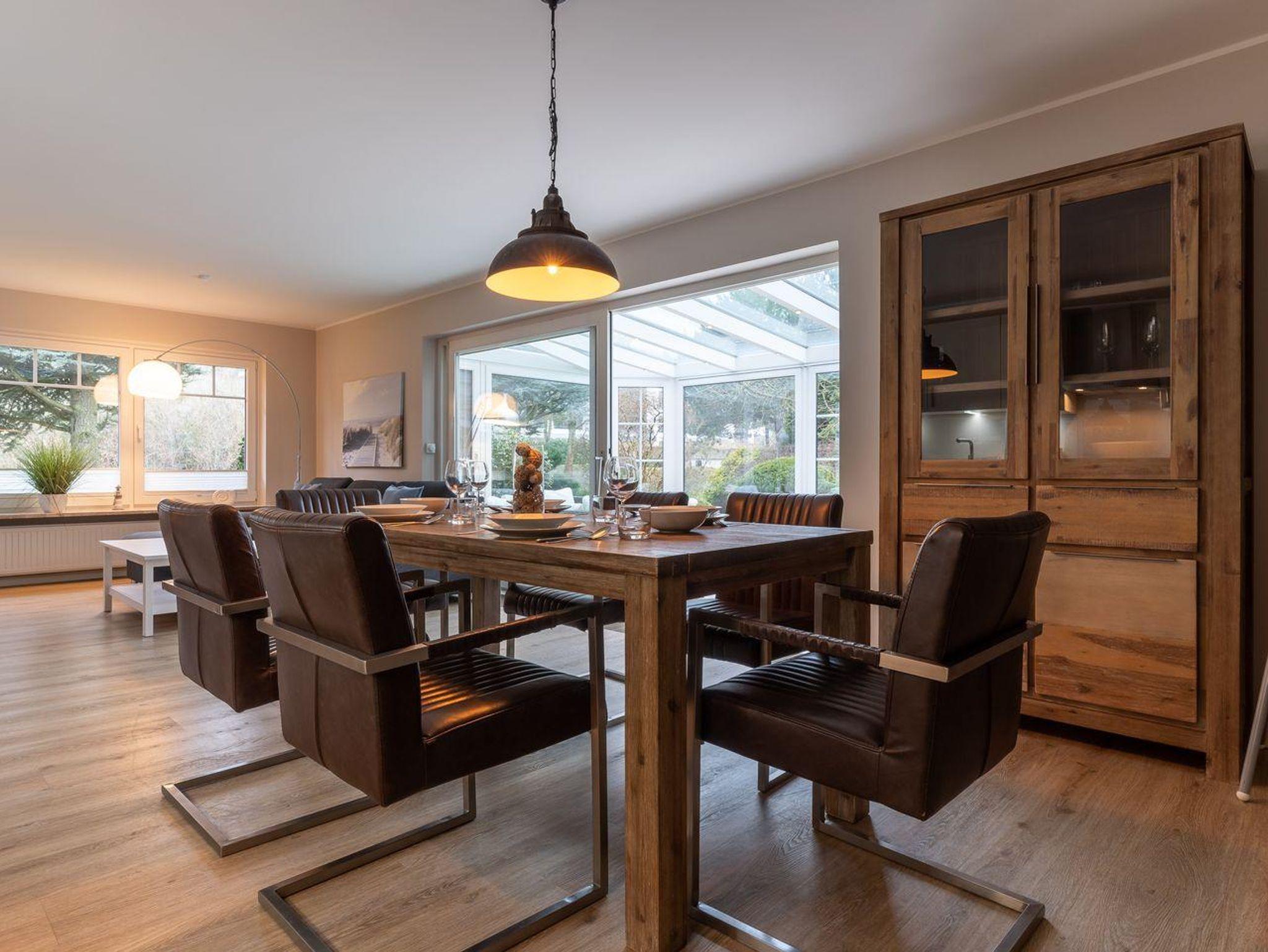 Die Wohnung befindet sich im Erdgeschoss und hier befindet sich der lichtdurchflutete und sehr großzügige Wohnraum mit TV, Kamin und einem stilvollen Essbereich, sowie einer modernen Wohnküche. Die Wohnräume sind mit neuen und modernen Möbeln ausgestattet. An den Wohnbereich schließen sich ein Flur mit Garderobe, und ein Duschbad, sowie ein Gäste WC an.Die beiden Schlafzimmer sind jeweils mit einem Doppelbett ausgestattet (1,80 x 2,00 und 1,40 x 2,00 m) und die Kleiderschränke gewähren Ihnen hinreichend Ablageflächen. Zusätzlich gibt es im Wohnzimmer ein gemütliches Schlafsofa für 2 Personen. Darüber hinaus befindet sich am Wohnzimmer ein großer Wintergarten und bringt Sie sofort in Urlaubsstimmung.Das Grundstück mit Stellplatz, Rasenfläche und einer geschützten Terrasse ist mit heimischen Pflanzen angelegt.