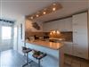 Wohnraum mit offener Küche, Induktionskochfeld, Backofen, Geschirrspülmaschine, Mikrowelle, großes Gefrierfach