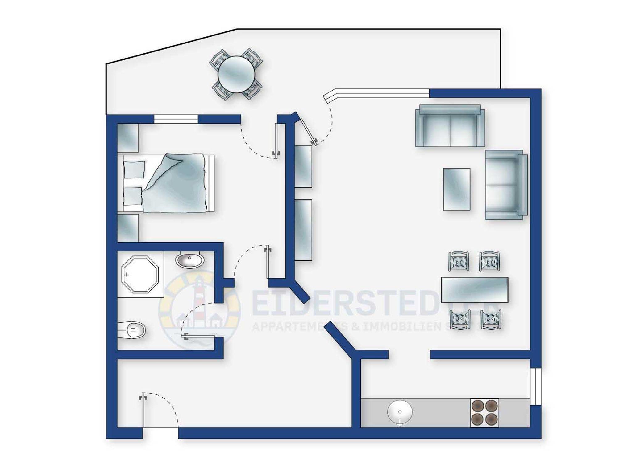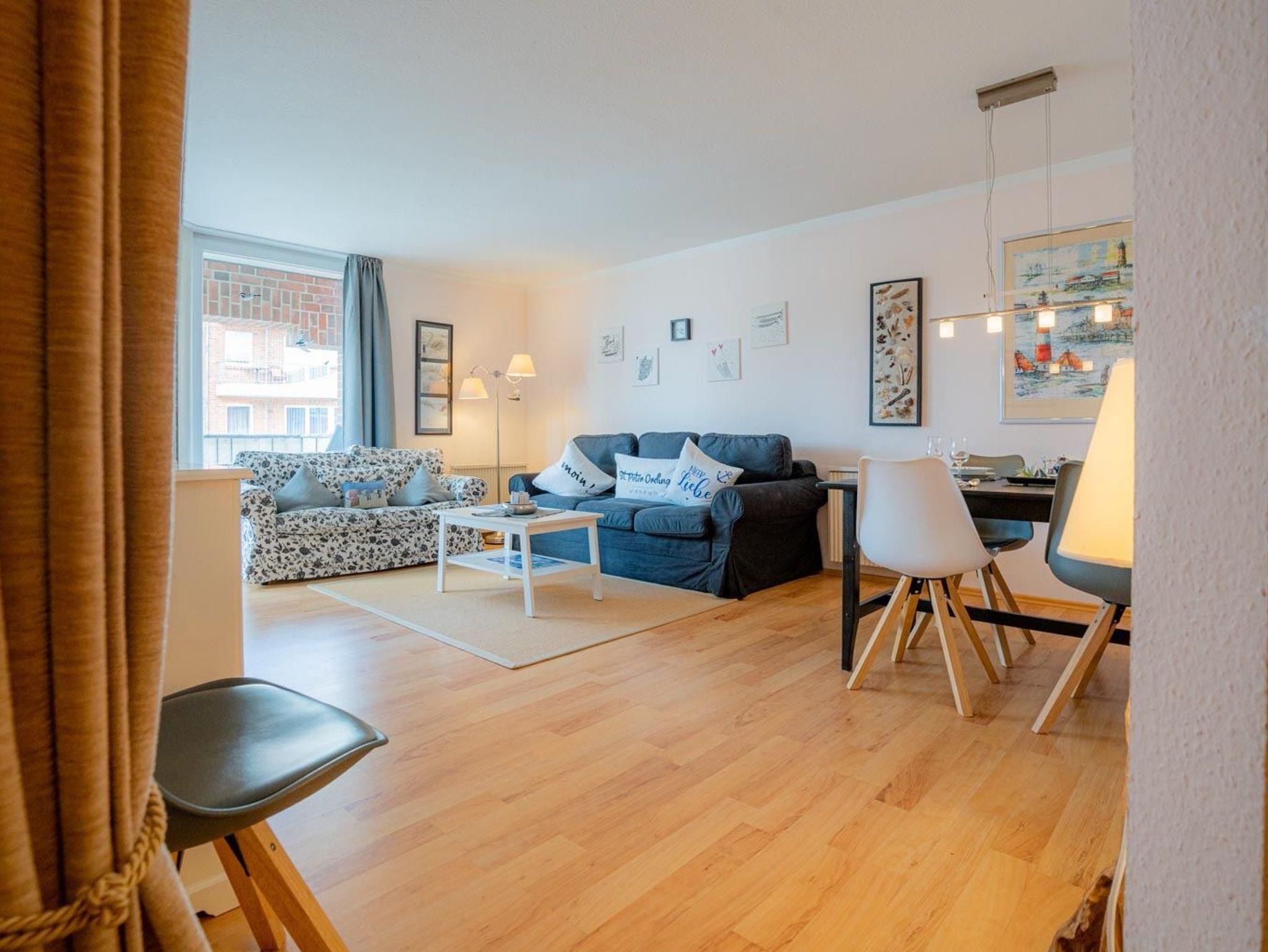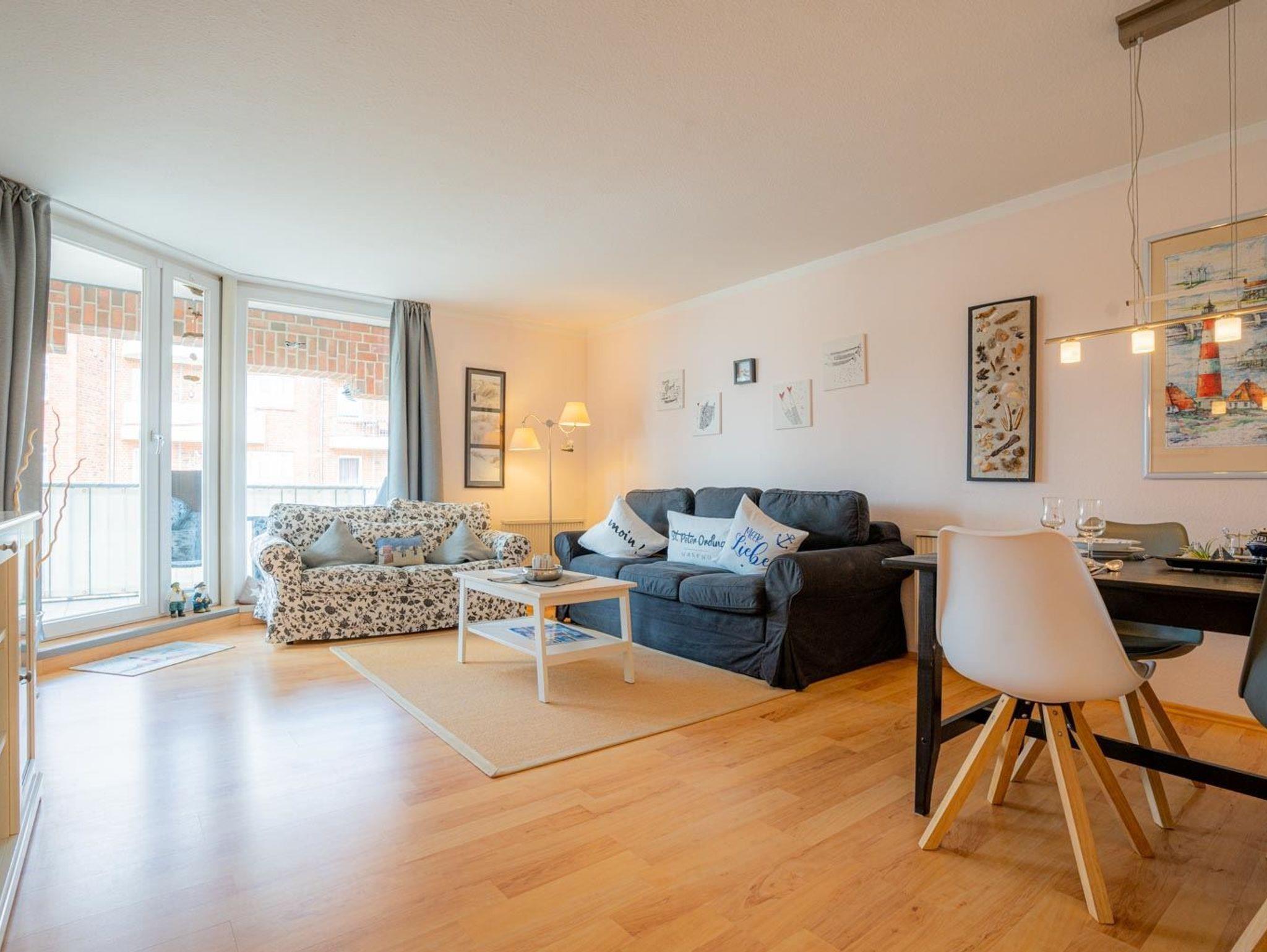 Strandnahe 2-Zimmer-Ferienwohnung mit ca. 45 qm auf 1 Ebene (2. OG) für bis 2 Personen. Zentrale Lage im Ortsteil Bad in St. Peter-Ording. Zur Promenade, dem Strand, der Dünentherme und allen Restaurants und Geschäften des Kurzentrums sind es nur wenige Gehminuten. Mit großem Balkon.