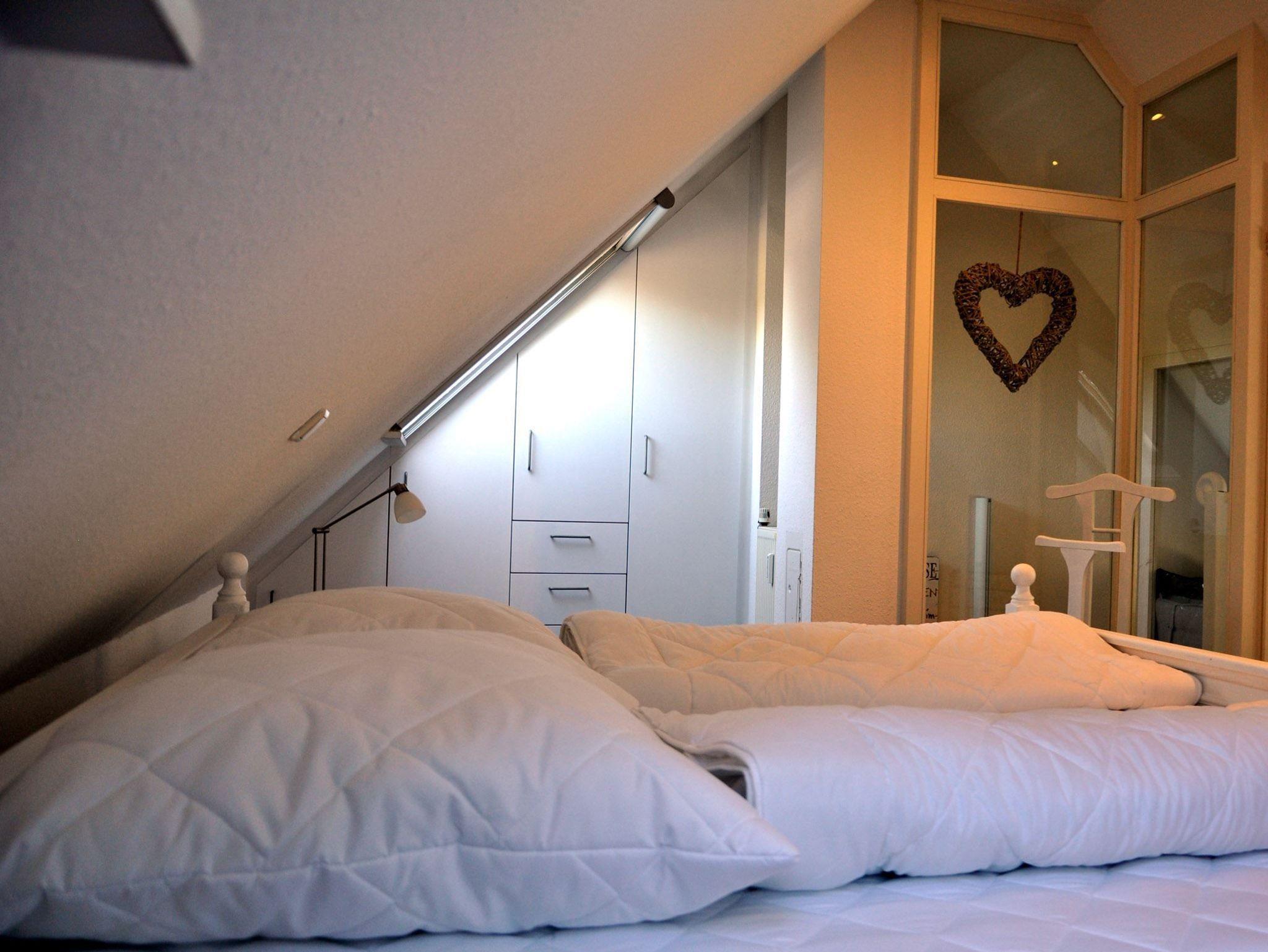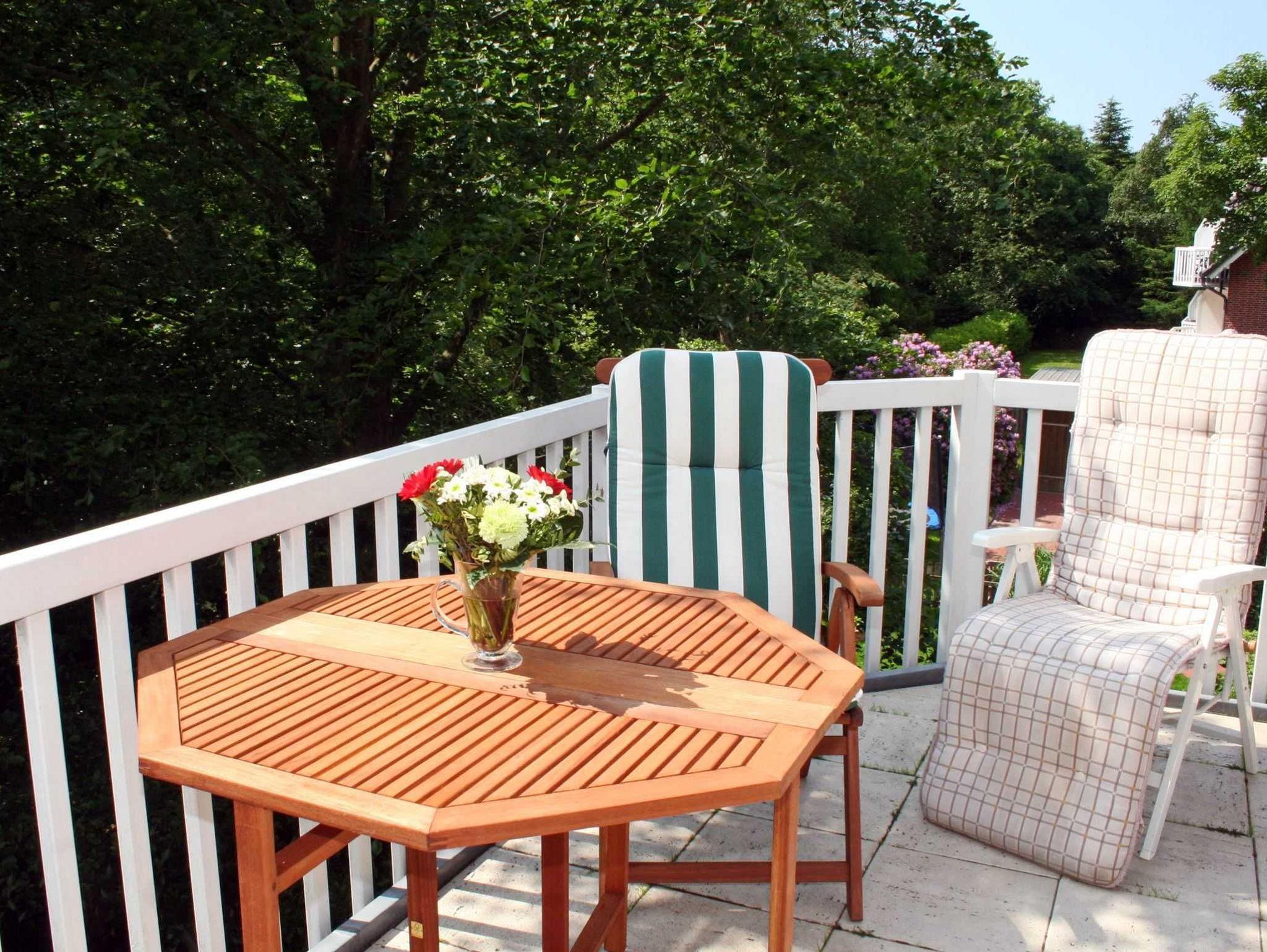 Ein 3-Zimmer-Ferienwohnung - ein Urlaubstraum über 2 Ebenen für Ihren Urlaub in St. Peter Bad Die 69 stilvoll eingerichteten Quadratmeter dieser außergewöhnlich schönen Ferienwohnung teilen sich auf in 2 romantische Schlafräume, eines davon unterm Dach, ein schickes Badezimmer, sowie einen großzügigen Wohnraum mit integrierter, offener Küche, die keinen Wunsch offen läßt. Der traumhfte SW-Balkon mit Blick auf den direkt angrenzenden Kurwald lädt ein, dem Rauschen des Meeres zu lauschen und entspannen. Pkw-Stellplatz auf dem Grundstück, Nr. 5