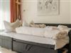 Schlafzimmer mit 2 Einzelbetten (je 80x200cm) und Kleiderschrank.