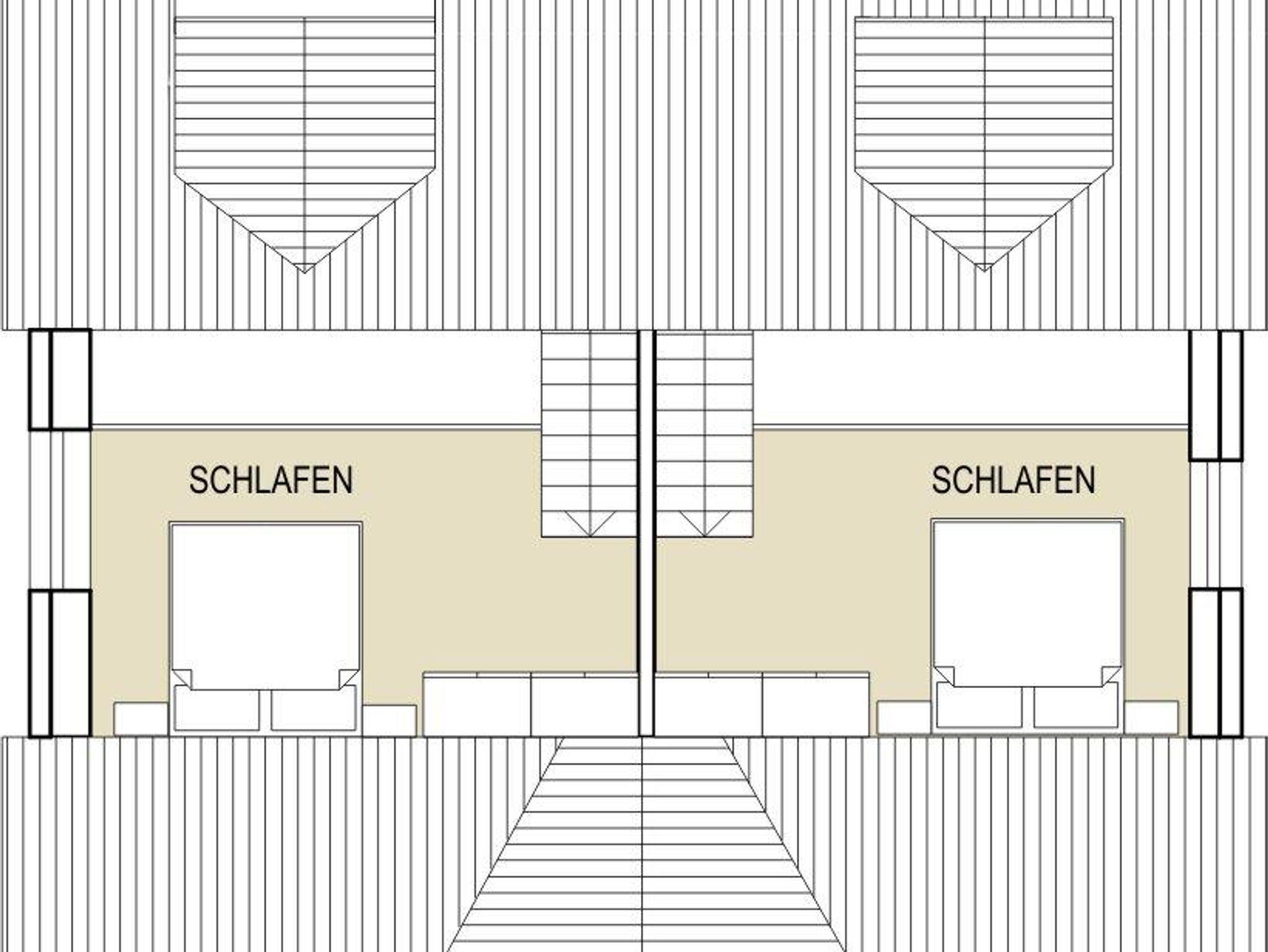 Die Wohnungen Düne und Deich haben den gleichen Grundriss, nur spiegelverkehrt und sind ca. 55 m² groß. Es sind Maisonettewohnungen. Sie erreichen sie über die Außentreppe durch einen gemeinsamen Flur.