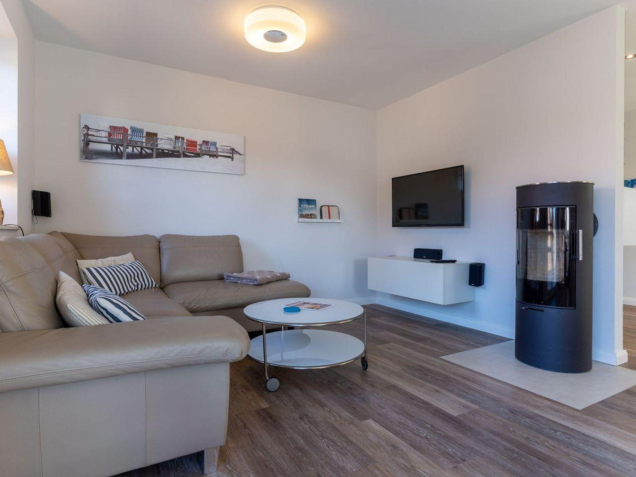 Das großzügige 70m² Appartement ist mit sehr exclusiven Möbeln eingerichtet. Ein gemütliches Wohnzimmer mit Ecksofa und Kamin laden zum Chillen ein. Die offene Wohnküche ist mit hochwertigen Geräten voll ausgestattet. Das Duschbad ist großzügig gestaltet und bietet genügend Platz für Ihre Utensilien. Außerdem ist noch ein weiteres Gäste WC vorhanden. Das Schlafzimmer mit 180er Boxspringbett und Flatscreen TV sorgen für ruhevolle Erholung. Ein weiteres Doppelzimmer mit 2 Einzelbetten bietet Platz für 2 Personen. Die Wohnung ist mit sehr viel Liebe zum Detail ausgestattet und traumhaft lichtdurchflutet. Sie erreichen das Appartement im 1 OG über einen Treppenaufgang am Haus. Kostenlose W-LAN, Waschmaschinen- und Trocknernutzung sind möglich. Zwei PKW Stellplätze sind am Haus vorhanden.