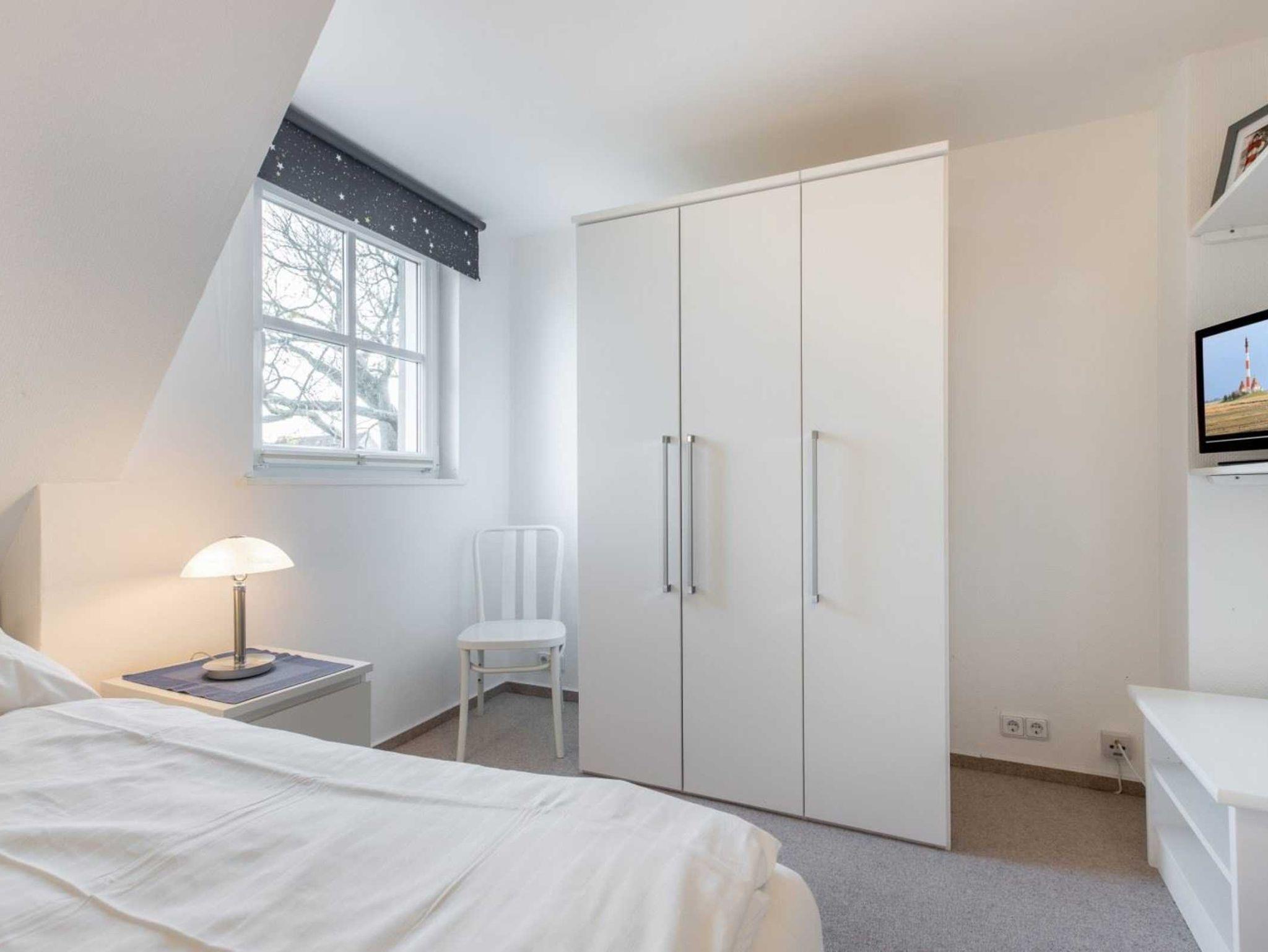 1. Schlafzimmer mit Doppelbett (2x 90x200cm), Kleiderschrank, Stuhl und TV.