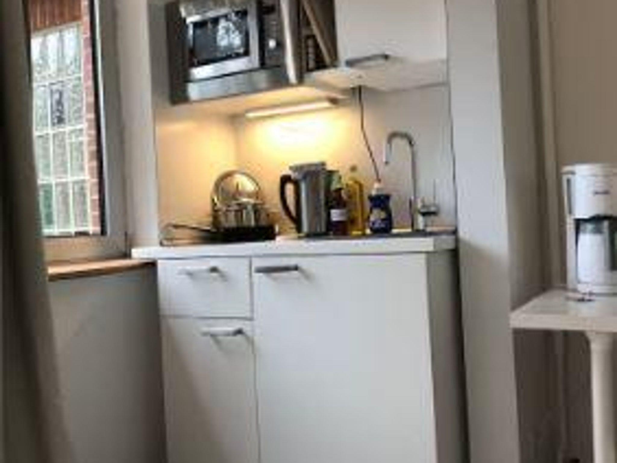 Die Wohnung hat ein kleines Duschbad, eine Kitchenette im Eingangsbereich mit 2 flammigem Ceranfeld, Mikrowelle und kleinem Kühlschrank. Selbstverständlich gibt es W-Lan.
