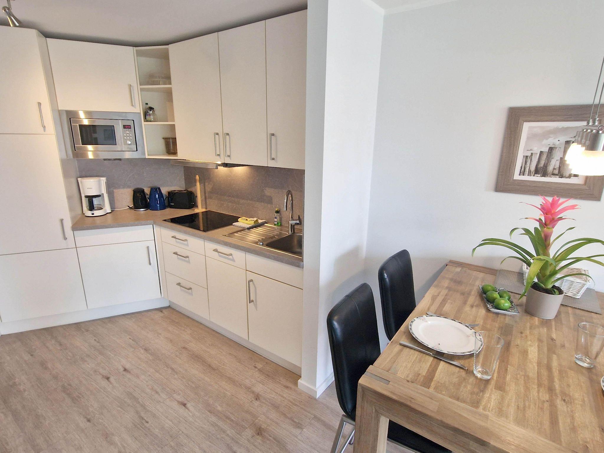In der freundlich eingerichteten 2-Zimmer-Wohnung Pole Poppenspäler Nr. 07 im 2. Obergeschoss haben Sie ausreichend Platz für schöne Ferien zu zweit. Das Appartement wurde gerade komplett renoviert. Eine charmante, kleine Treppe führt Sie vom Wohn-Essbereich nach oben zum Schlafzimmer und dem modernisierten Bad. Auf den beiden West-Balkons fällt das Entspannen leicht.