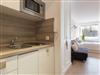 Separate Küche im Eingangsbereich mit Ceran-Herd mit 2 Kochstellen, Mikrowelle, Geschirrspüler und Kühlschrank (kein Gefrierfach).
